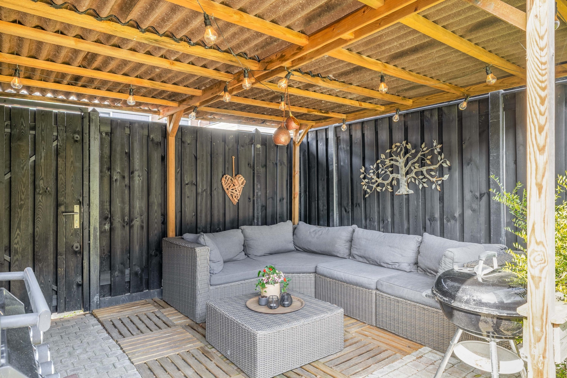 De serre aan het huis is een echte eyecatcher. Deze is recent geplaatst (2025) en zorgt ervoor dat je veel langer buiten kunt zitten. Achterin de tuin vind je daarnaast een overkapping en een vrijstaande stenen berging met elektra – ideaal voor opslag of hobbyruimte.