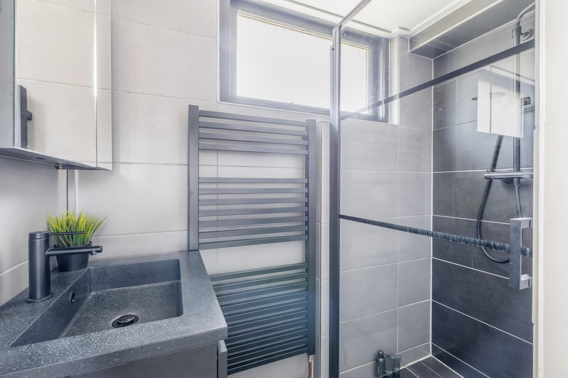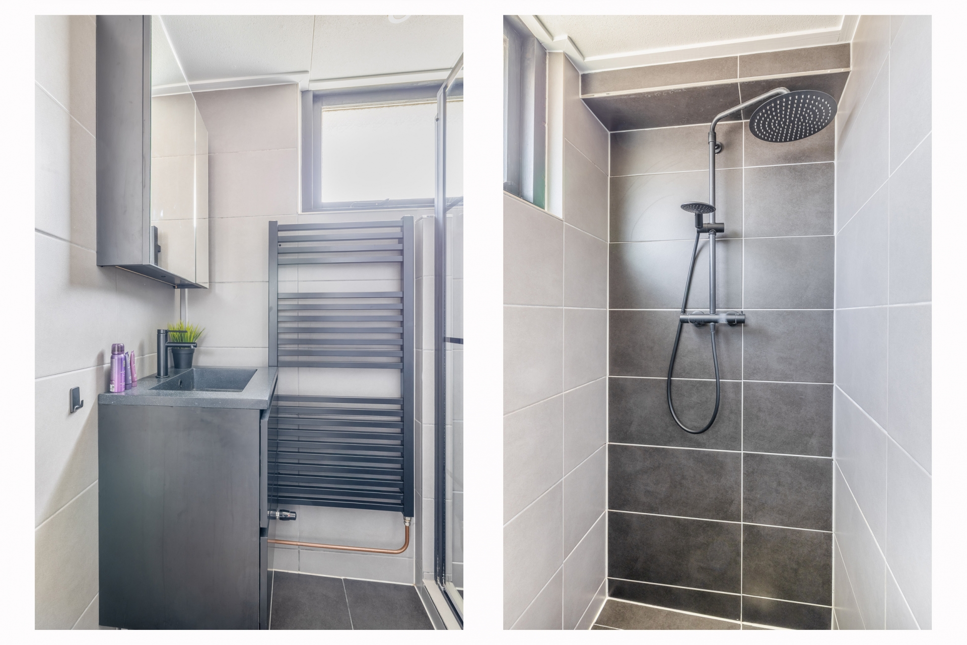 De badkamer is modern uitgevoerd (ca. 4 jaar oud) en voorzien van een inloopdouche en wastafelmeubel. Alles is netjes afgewerkt in een eigentijdse stijl.