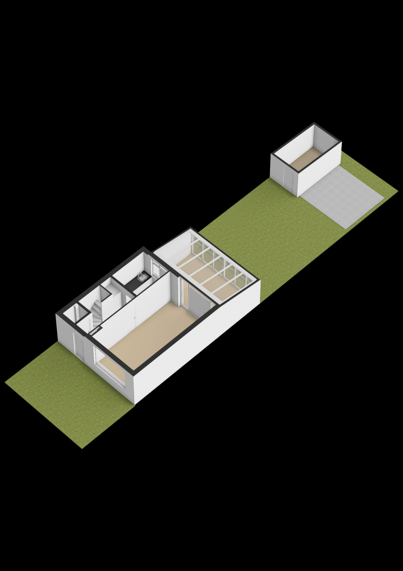ZONNIGE TUIN MET AANGEBOUWDE SERRE EN OVERKAPPING