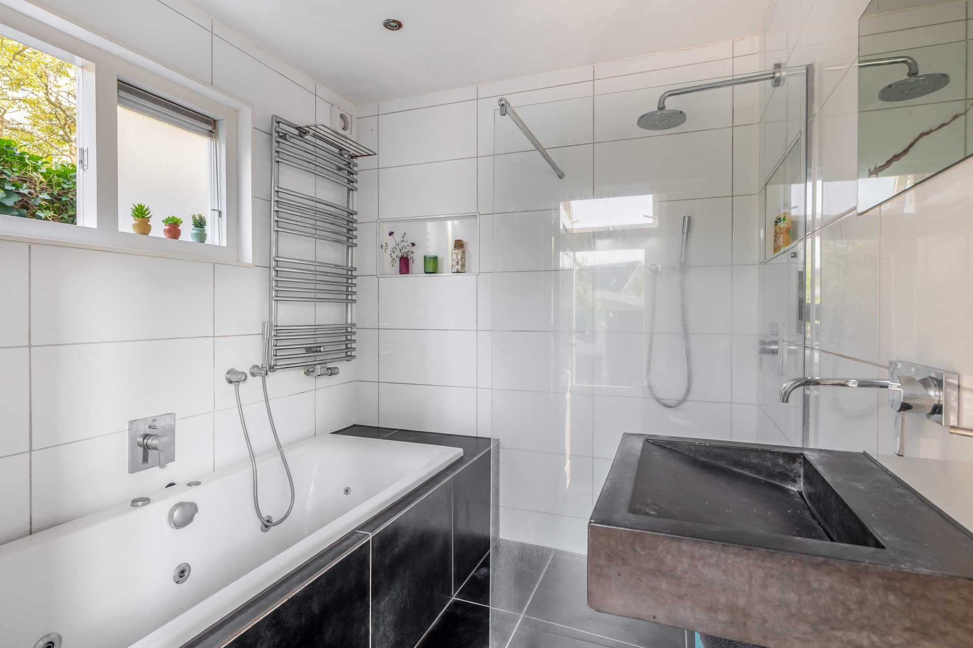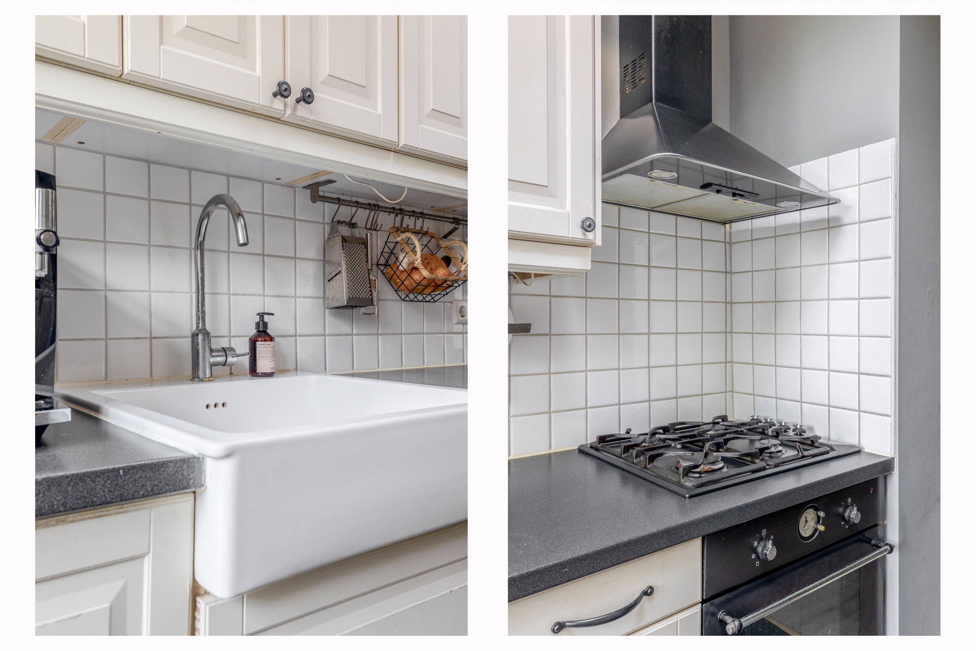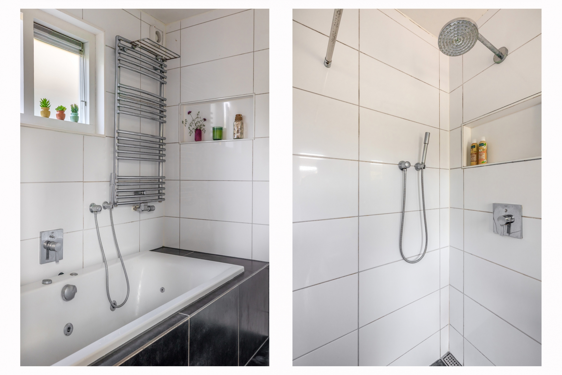Zodra je de woonkamer binnenstapt, valt het vele daglicht op. De grote ramen zorgen voor een open gevoel, terwijl de originele details je herinneren aan de rijke geschiedenis van het huis. Hier is het ’s avonds heerlijk knus en overdag juist een lichte plek om te ontspannen of te werken. De open keuken sluit mooi aan op de leefruimte, waardoor je hier makkelijk contact houdt met gezelschap terwijl je staat te koken. De badkamer is compact maar praktisch ingedeeld, en uiteraard is er ook een separaat toilet aanwezig.