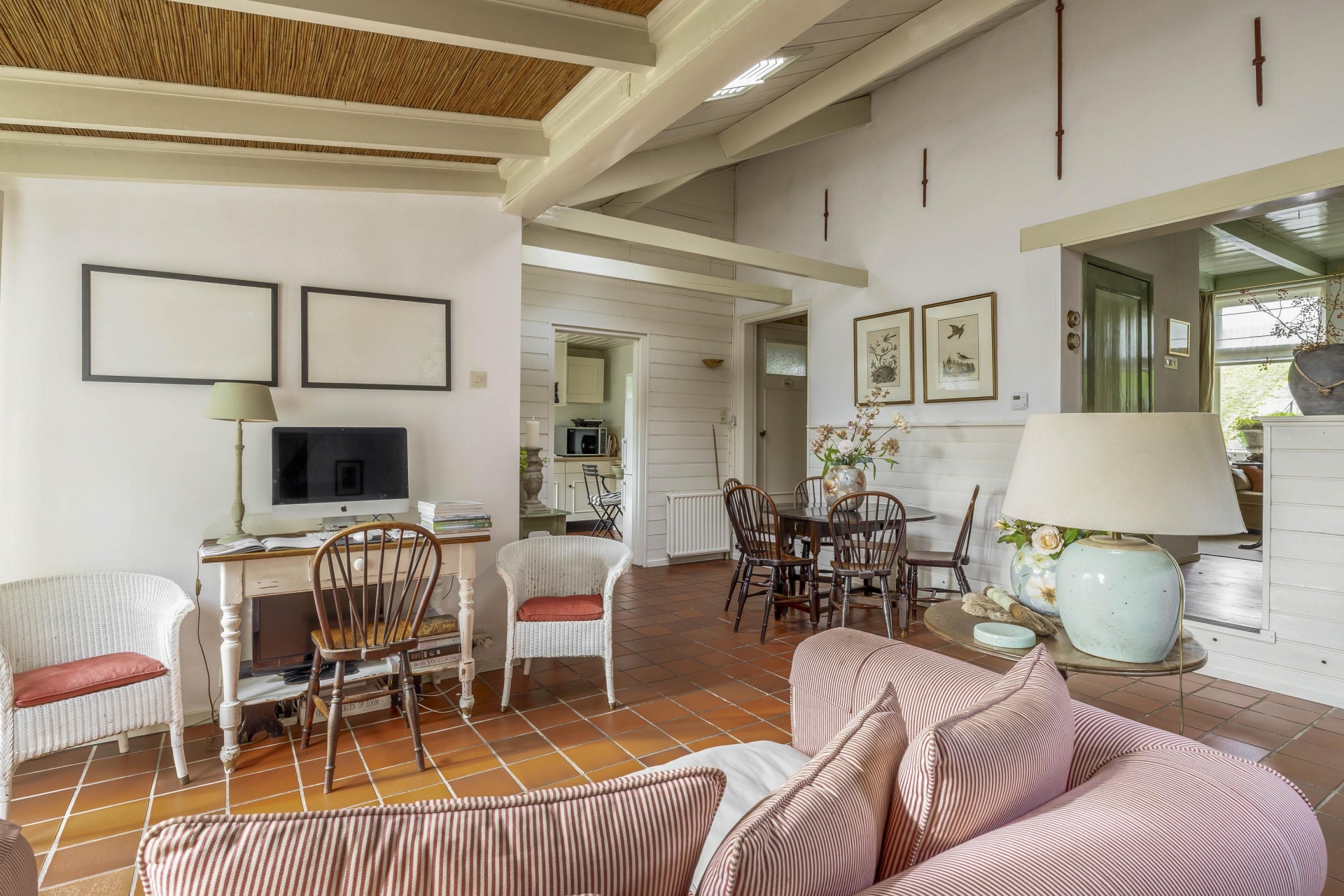 Achter het huis grenst het perceel aan een wetering, waardoor je ook vanuit de tuin volop waterbeleving hebt.