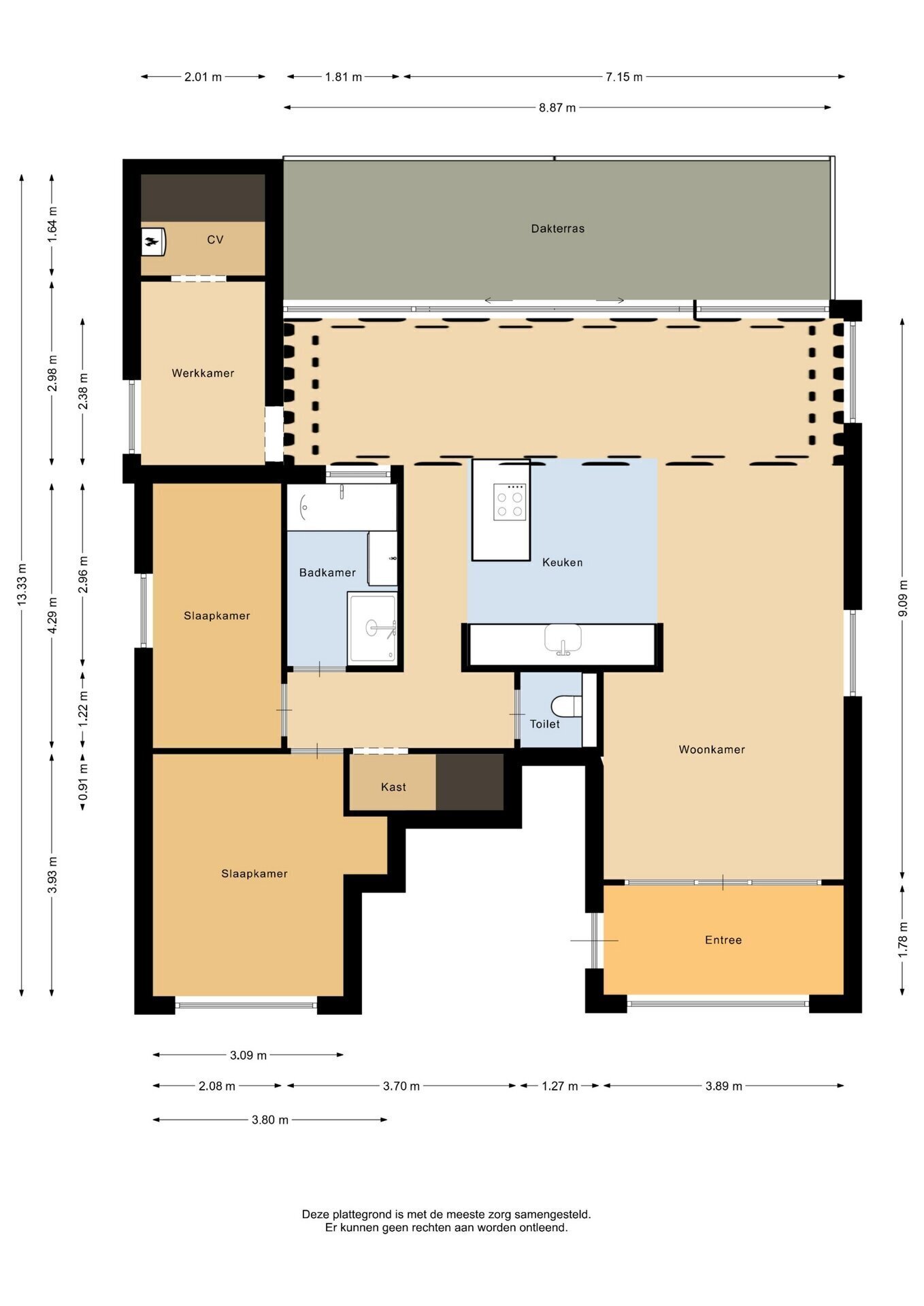 “Deze informatie is door ons met de nodige zorgvuldigheid samengesteld. Onzerzijds wordt echter geen enkele aansprakelijkheid aanvaard voor enige onvolledigheid, onjuistheid of anderszins, dan wel de gevolgen daarvan. Alle opgegeven maten en oppervlakten zijn indicatief.”