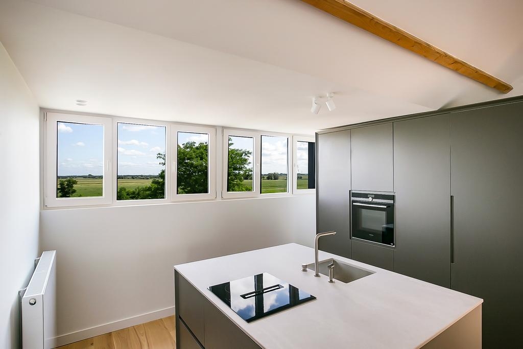 De woonkamer is strak afgewerkt met gestucte wanden en is op te delen in een zit- en eetgedeelte. Aan de voorzijde kijk je uit over de IJssel en aan de achterzijde heb je zicht op het polderlandschap.