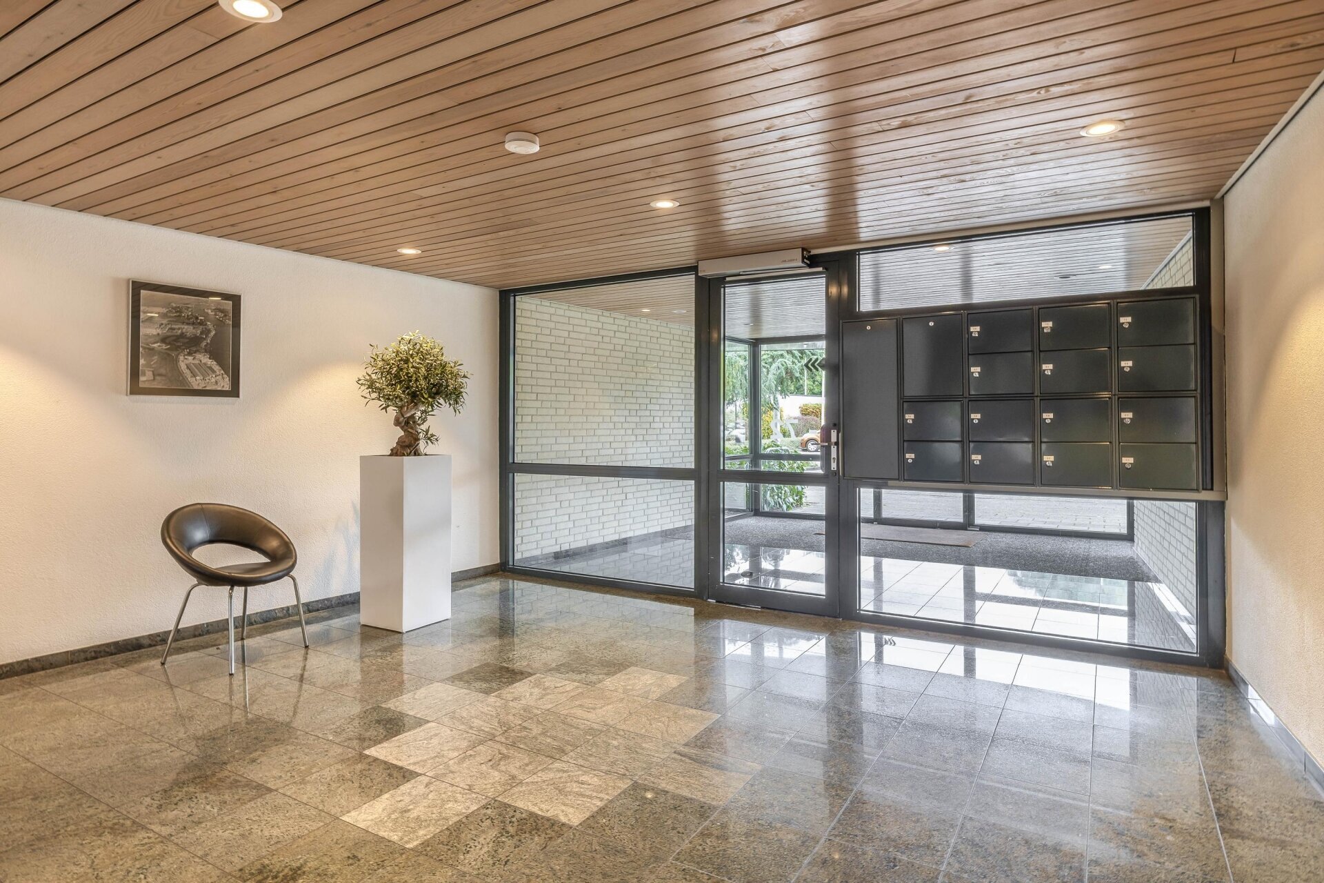 Bij binnenkomst in het prachtig verzorgde appartementencomplex wordt u verwelkomd door een stijlvolle centrale hal met brievenbussen, een modern bellentableau met videofoon en een tagscherm. Via een afgeschermde hal heeft u toegang tot uw eigen berging. Neem de lift of kies voor het trappenhuis om de diverse verdiepingen te bereiken.