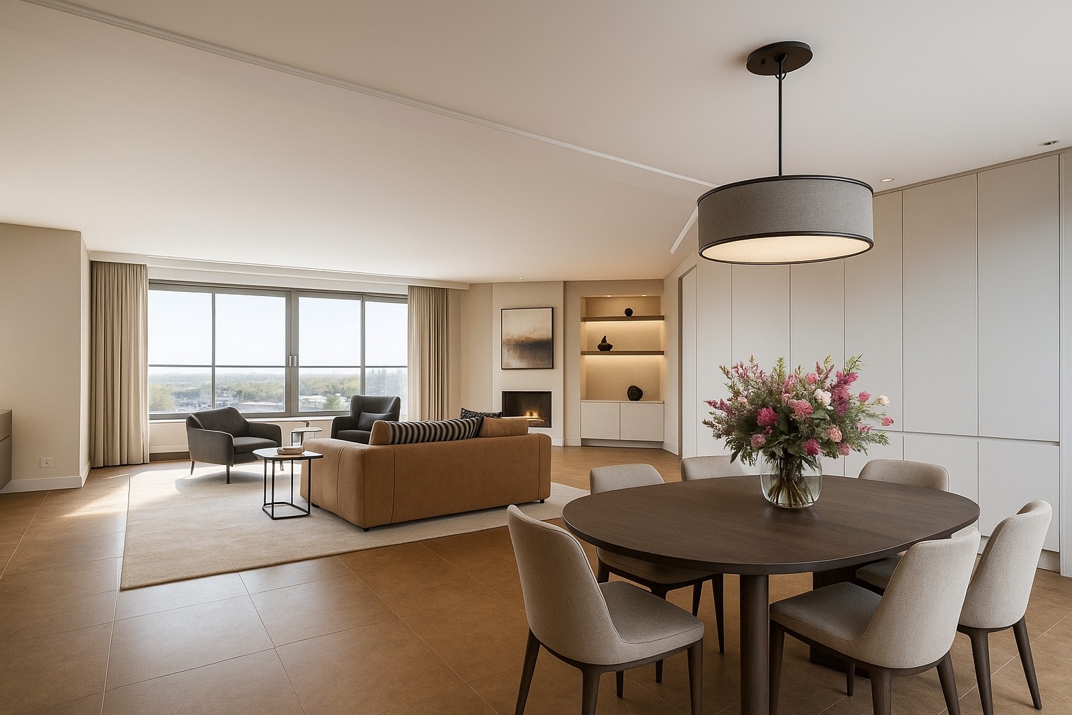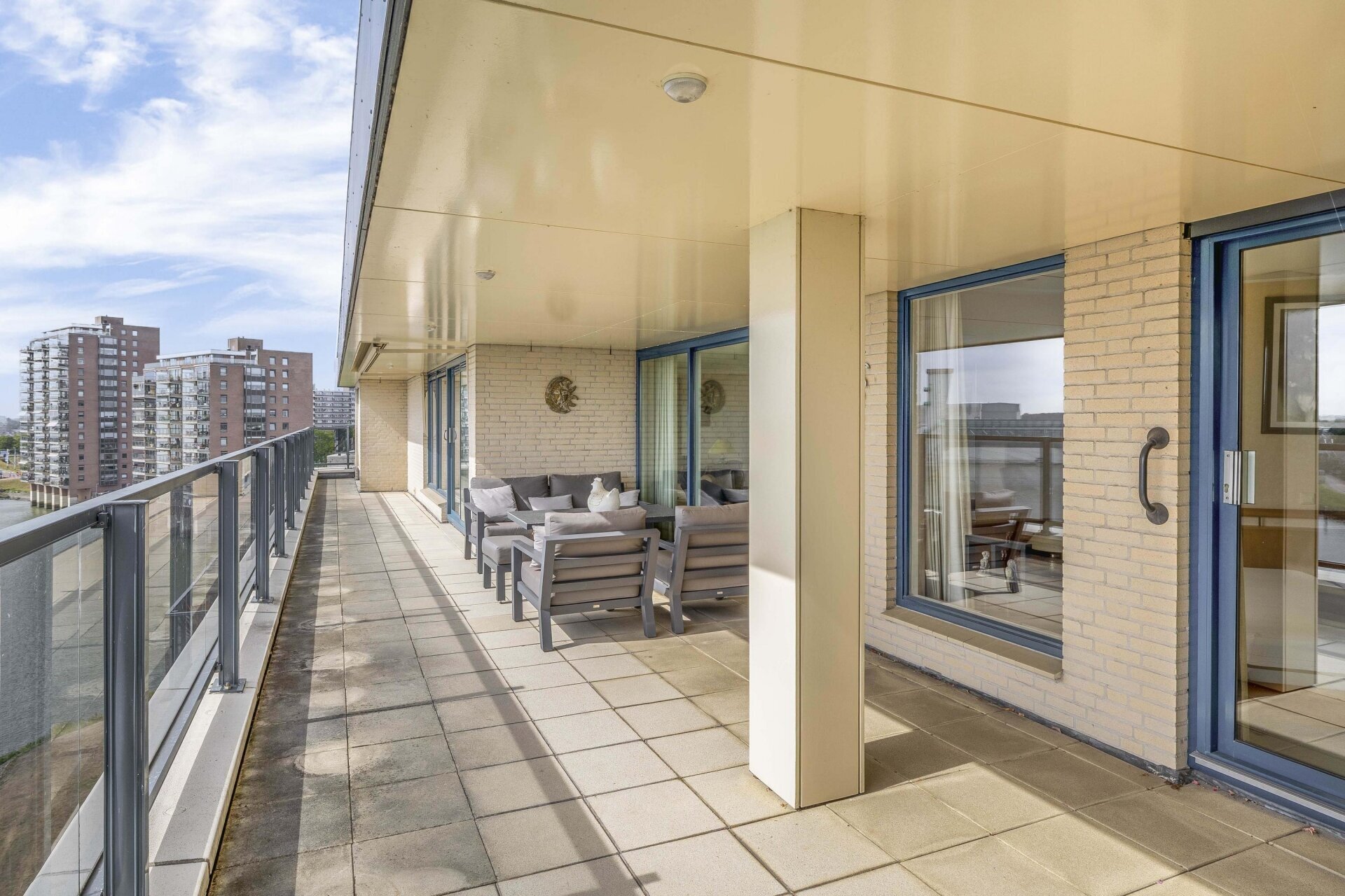 Het spectaculaire uitzicht vanaf de zevende verdieping is ongetwijfeld de eyecatcher van dit appartement. Het zonnige terras van maar liefst 78 m² biedt een panoramisch uitzicht over de majestueuze Hollandsche IJssel en de pittoreske achterliggende Krimpenerwaard. In de koudere maanden kunt u extra genieten met de sfeervolle buitenhaard. Ook aan de voorzijde van het complex is er een terras, dat bovendien een weids uitzicht biedt over het veelzijdige Capelle aan den IJssel. Door de ideale zonligging kunt u het hele jaar door volop genieten van de zon en beschutting vinden in de schaduw. Dit uitzicht zal uw verbeelding nooit vervelen!