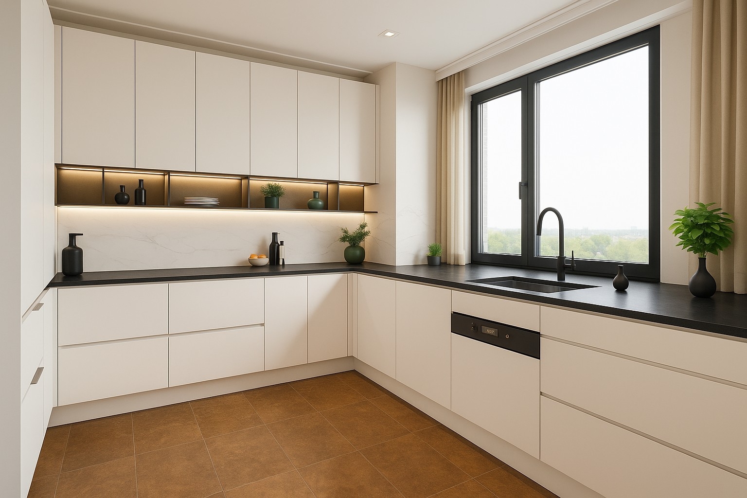 Wanneer u het penthouse betreedt, wordt u begroet door een ruime hal die toegang biedt tot een praktische vaste kast, een chic toilet, de royale woonkamer en de keuken. De keuken, uitgevoerd in een elegante U-opstelling, is uitgerust met hoogwaardige inbouwapparatuur en een praktische inpandige kast voor uw voorraad. De woonkamer vormt het kloppende hart van het appartement en is omringd door talloze raampartijen die zorgen voor een overvloed aan daglicht. Het gaat niet alleen om de ruimte, maar vooral om het sensationele uitzicht! Via verschillende schuifpuien heeft u toegang tot een prachtig dakterras, waar u optimaal kunt genieten van het buitenleven. De woonkamer biedt ook toegang tot twee sfeervolle slaapkamers, evenals een kantoorruimte die uiteraard ook als derde slaapkamer kan dienen. Beide slaapkamers zijn voorzien van een luxe badkamer ensuite, terwijl de master bedroom bovendien beschikt over een royale inloopkast en een aangrenzende wasruimte.