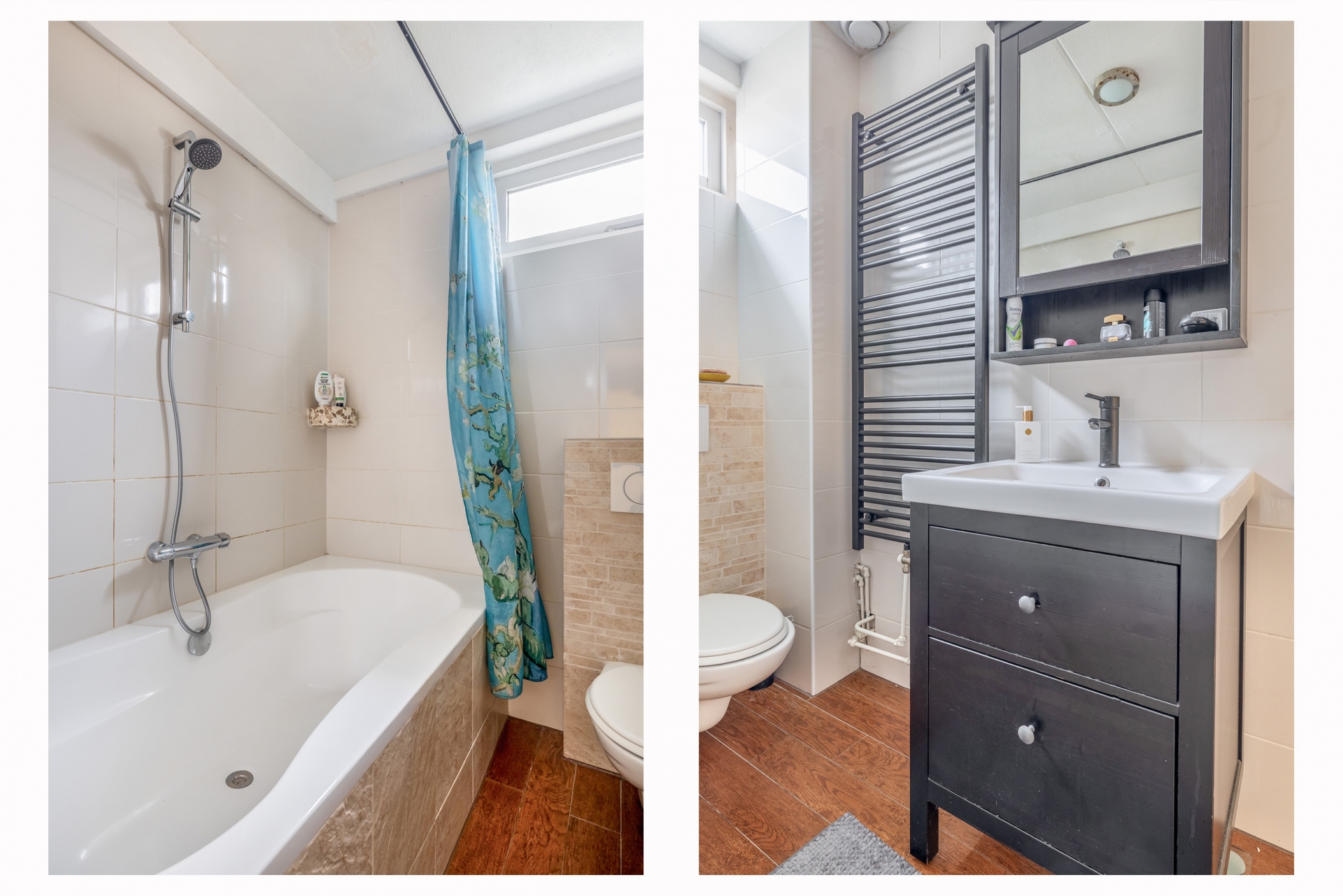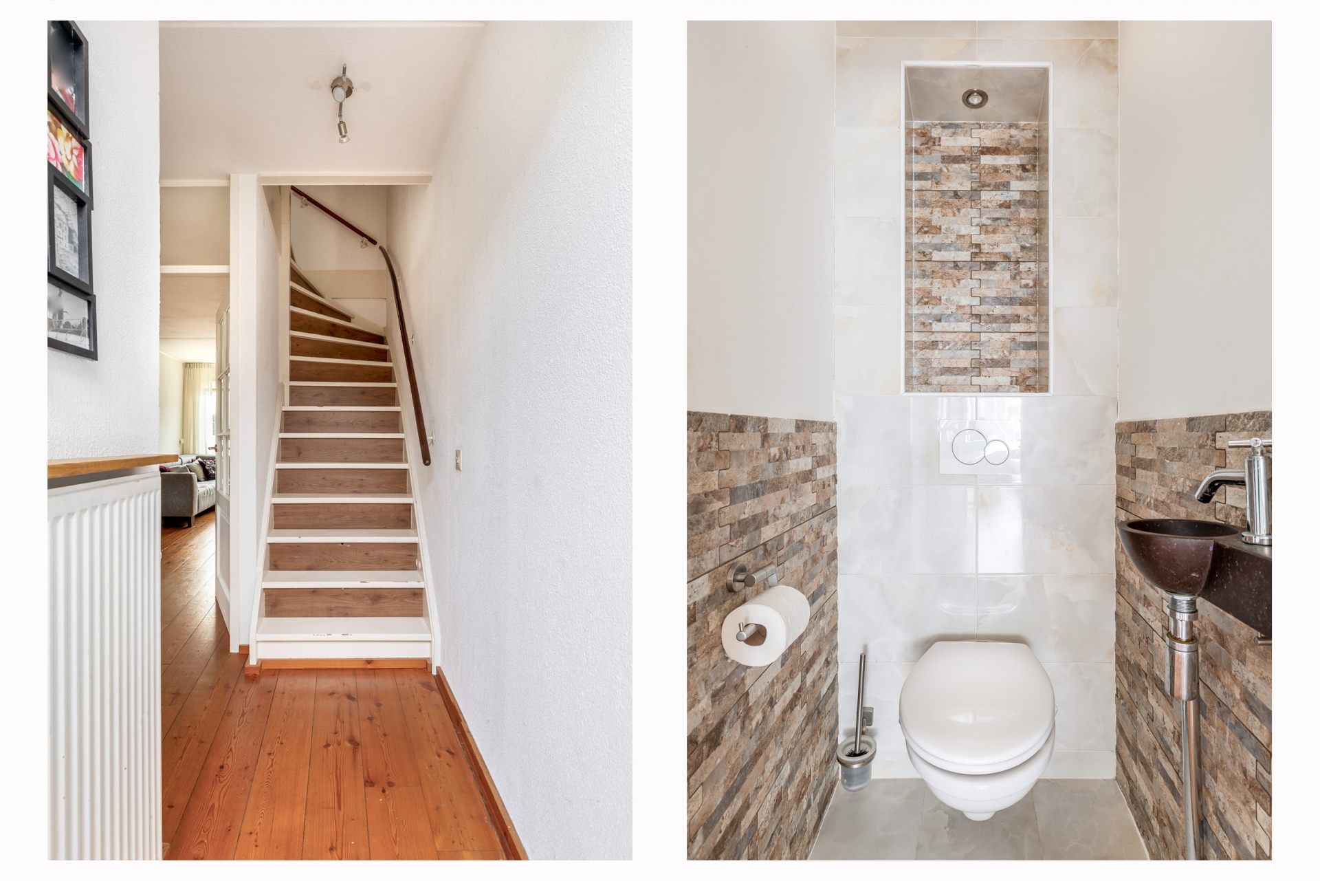 Op de eerste verdieping zijn drie slaapkamers te vinden. De grootste kamer ligt aan de achterzijde en heeft een fijne lichtinval. Aan de voorzijde vind je twee slaapkamers, ideaal voor kinderen of als thuiswerkplek. De badkamer is compact maar compleet, met een ligbad, toilet en wastafelmeubel.