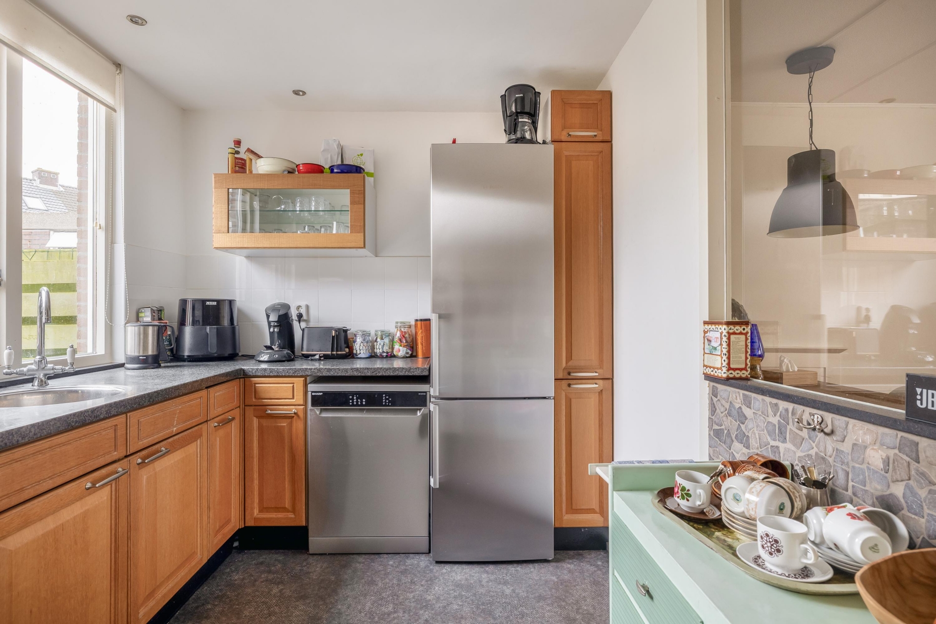 Deze fijne tussenwoning in Spijkenisse biedt precies wat je zoekt als starter of jonge doorstromer: ruimte, comfort en karakter. Met vier volwaardige slaapkamers verdeeld over drie woonlagen is dit een ideaal gezinshuis. De woonkamer is een gezellige leefruimte waar de houtkachel meteen in het oog springt – perfect voor knusse avonden. De keuken ligt aan de achterzijde en kijkt uit over de diepe tuin. Hier vind je een praktische indeling, met voldoende werk- en bergruimte om lekker te koken terwijl je contact houdt met de rest van het gezin. De koelkast en vaatwasser zijn recent nog vernieuwd.