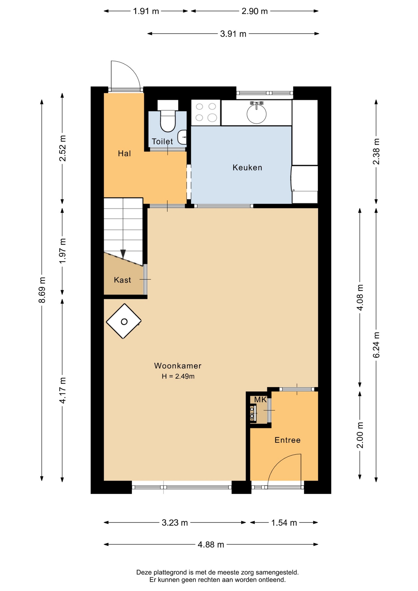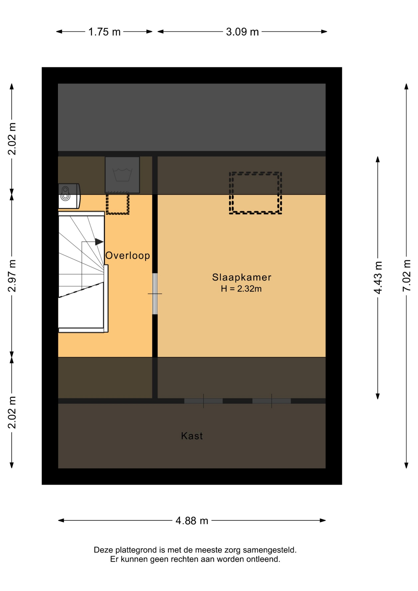 “Deze informatie is door ons met de nodige zorgvuldigheid samengesteld. Onzerzijds wordt echter geen enkele aansprakelijkheid aanvaard voor enige onvolledigheid, onjuistheid of anderszins, dan wel de gevolgen daarvan. Alle opgegeven maten en oppervlakten zijn indicatief.”