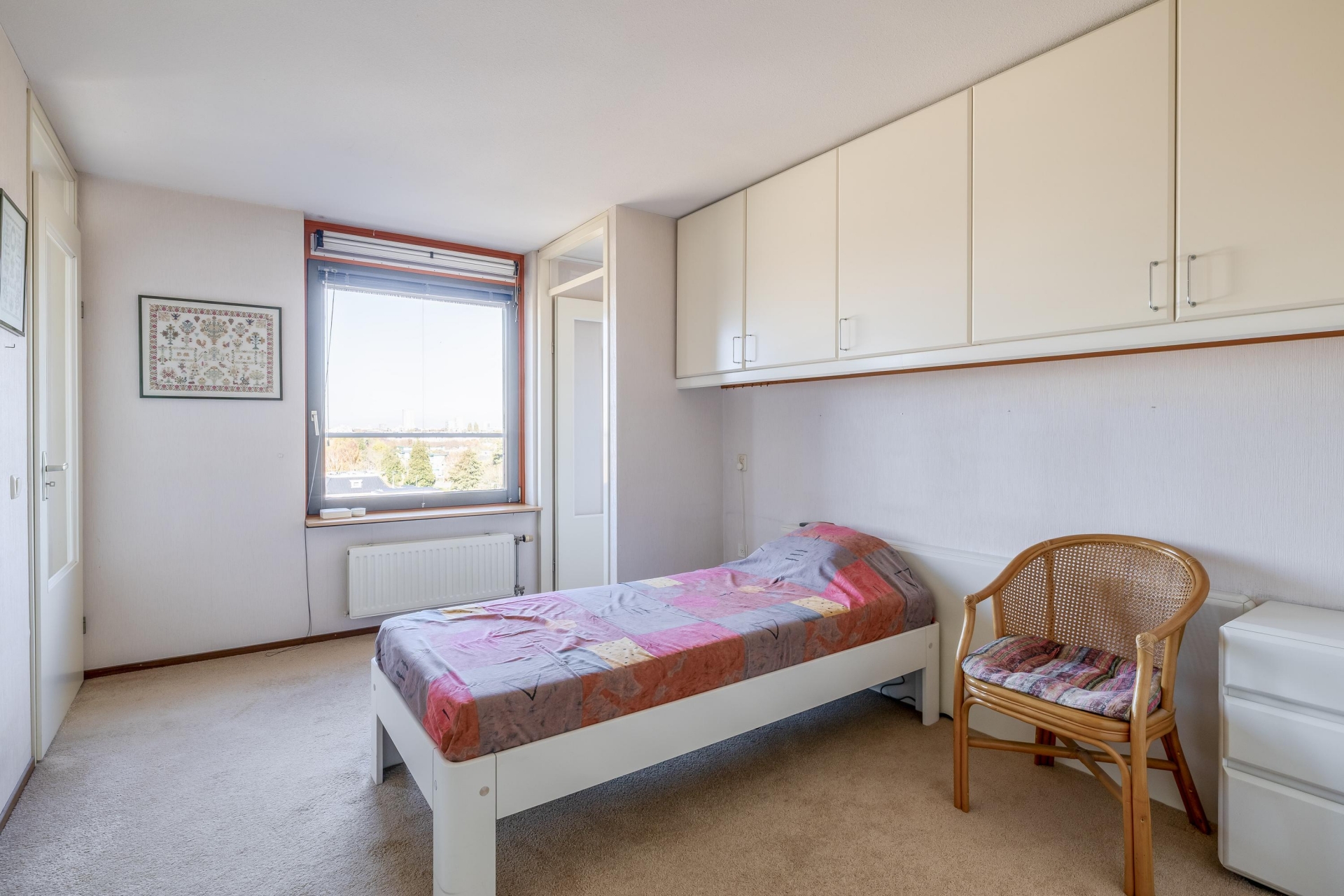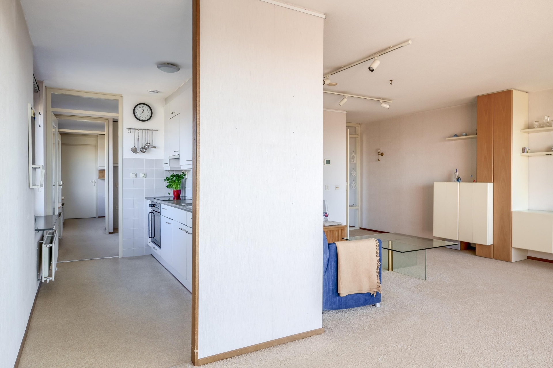 Via een brede schuifpui is hiervandaan toegang tot het brede balkon (10m²) op het noordwesten: een heerlijke plek om tot in de late uurtjes te genieten van zon en vrij uitzicht.