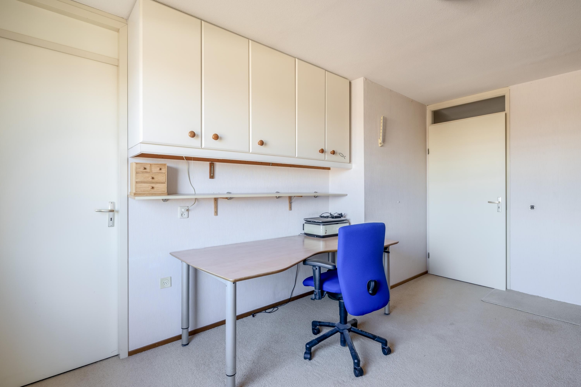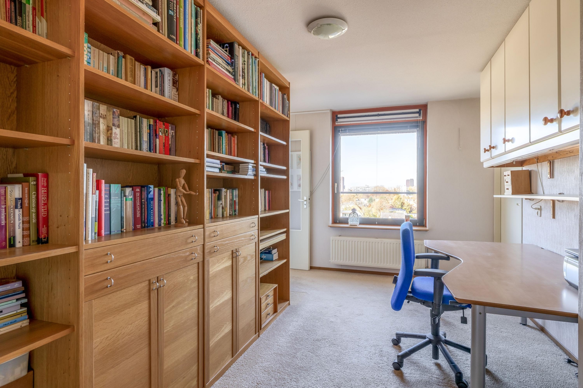 Deze kamer (12.5m²), nu ingericht als werk-/hobbykamer, biedt toegang tot de naastgelegen inpandige berging.