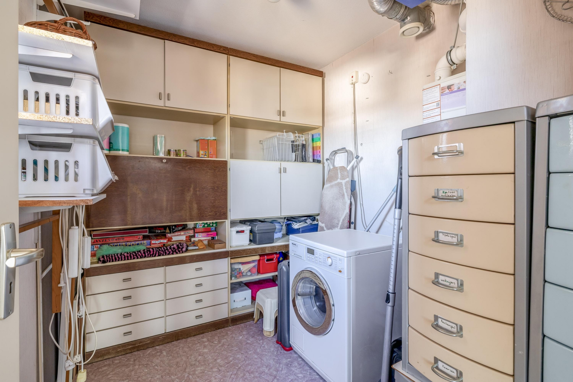 Deze berging (5.5m²) biedt ruimte aan de was-apparatuur, de mechanische ventilatie en de C.V. ketel.