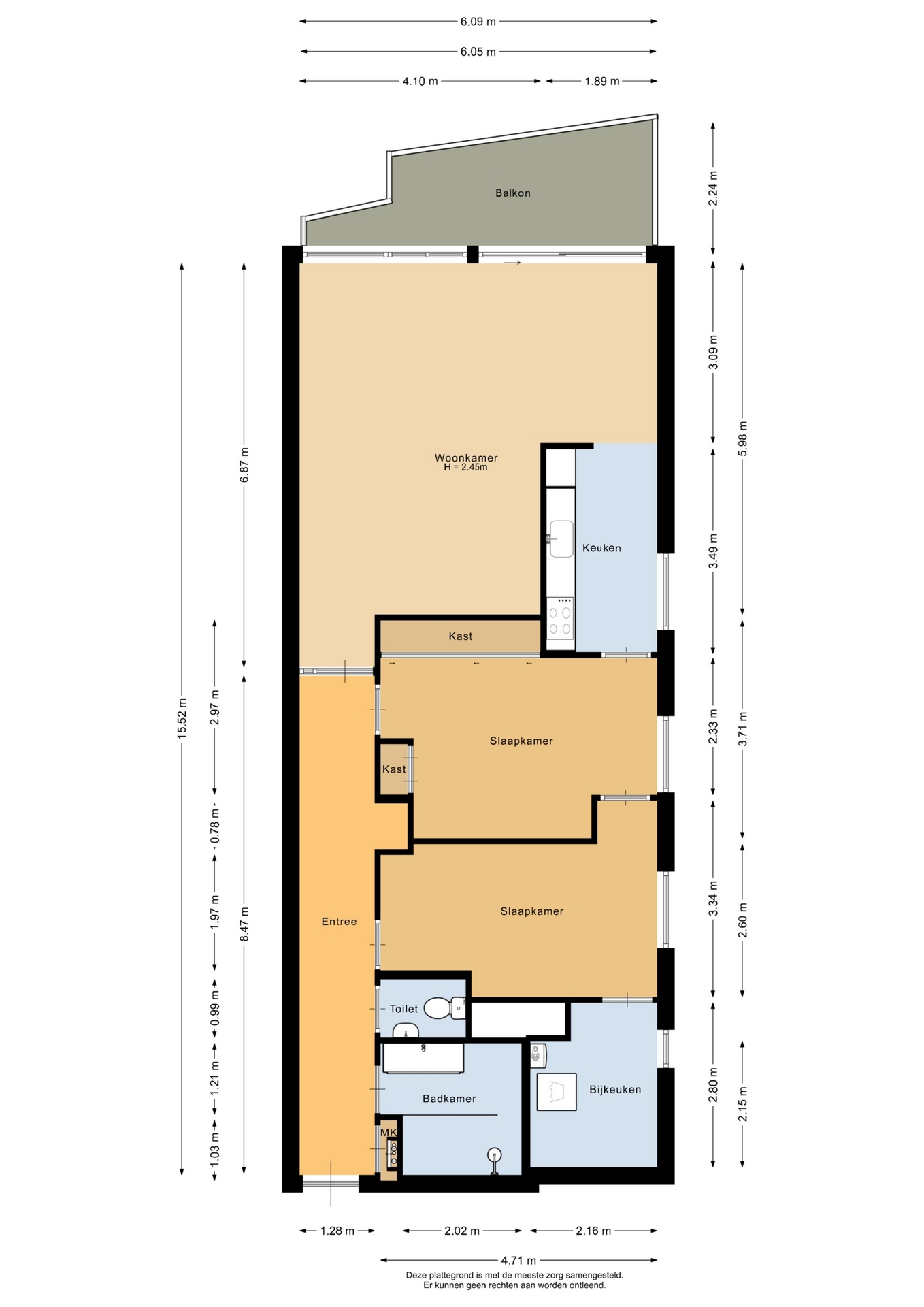 “Deze informatie is door ons met de nodige zorgvuldigheid samengesteld. Onzerzijds wordt echter geen enkele aansprakelijkheid aanvaard voor enige onvolledigheid, onjuistheid of anderszins, dan wel de gevolgen daarvan. Alle opgegeven maten en oppervlakten zijn indicatief.”