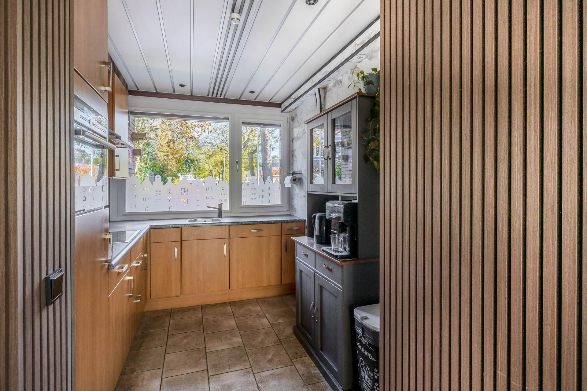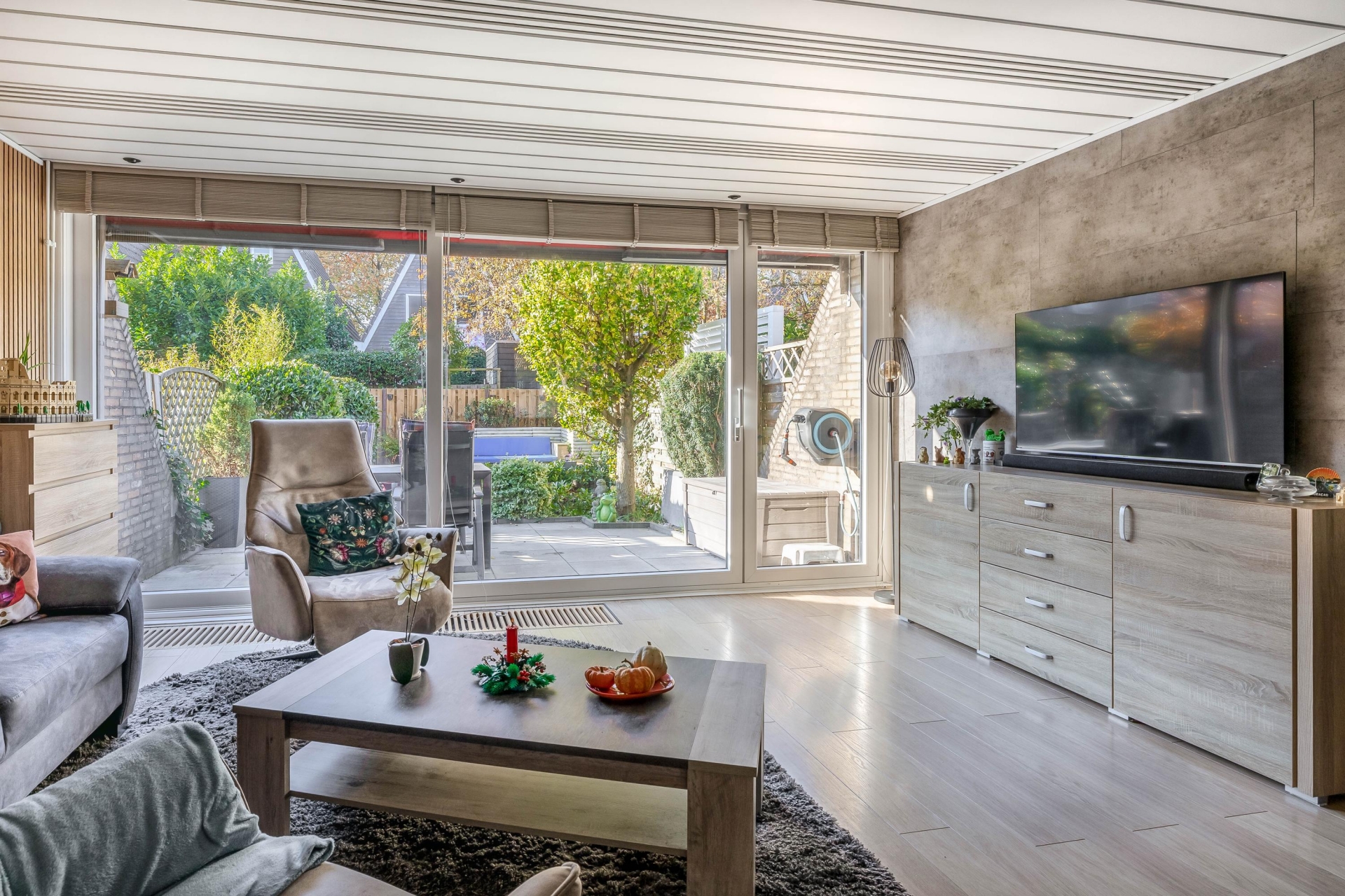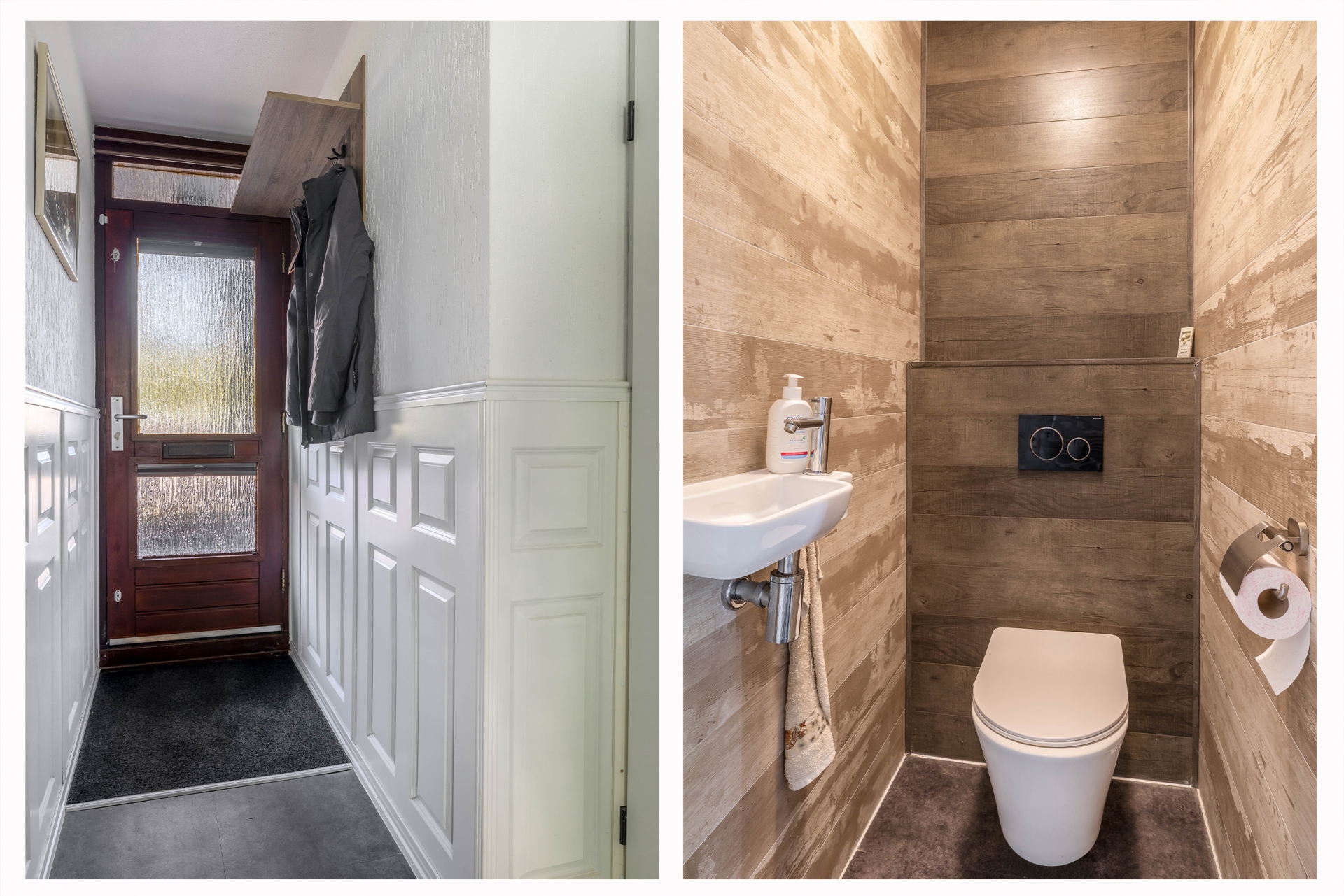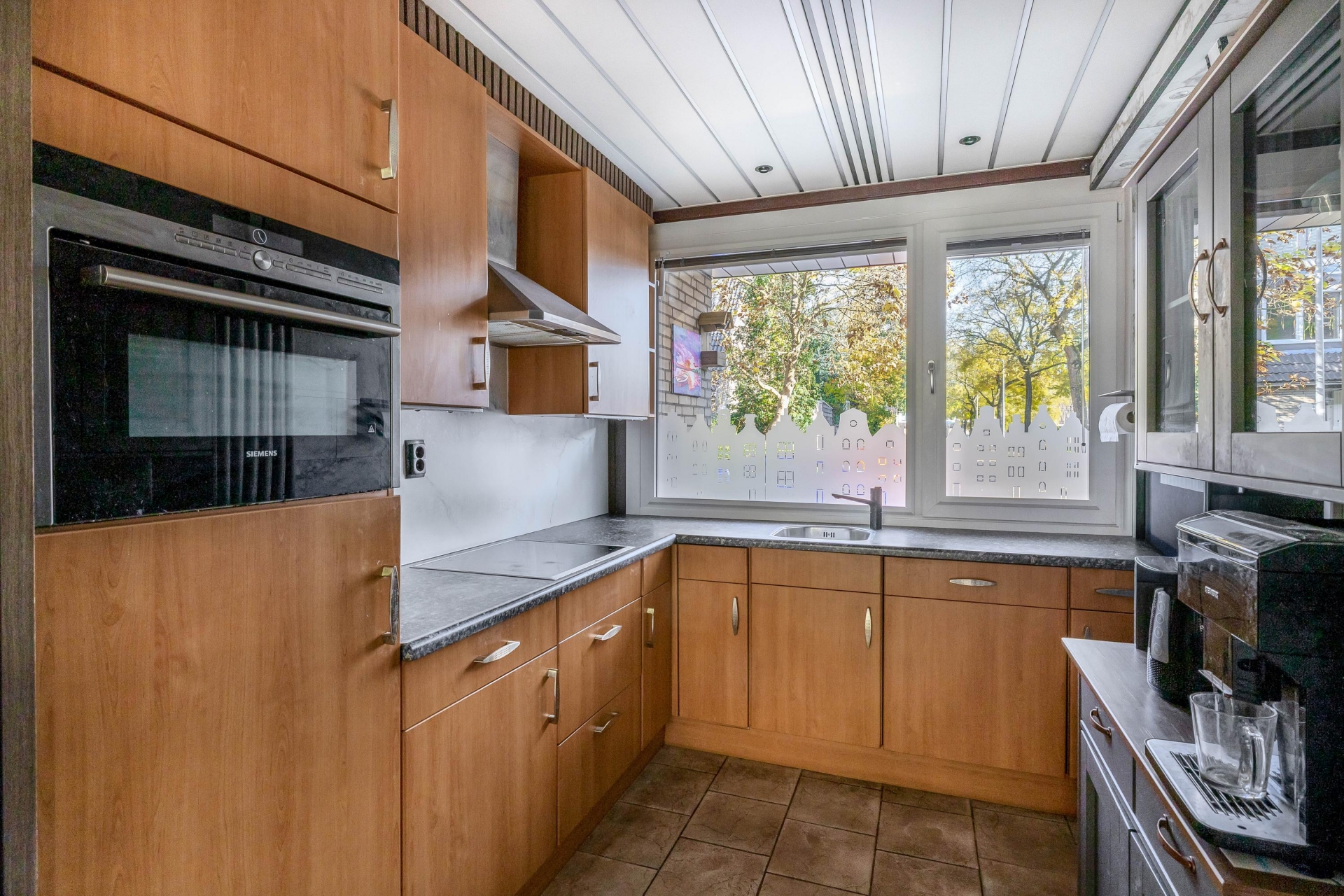 Via de fraai aangelegde voortuin bereik je zowel de woning als de aangebouwde berging. Vanuit de entree zijn alle vertrekken direct toegankelijk. Hier bevinden zich het toilet met fonteintje, de meterkast en de trapopgang. De entree leidt naar de woningbrede woonkamer, die naadloos overgaat in de ruime open keuken met diverse inbouwapparatuur. Dankzij de grote schuifpui sta je zo in de zonnige achtertuin op het zuidwesten. De tuin is speels ingericht met een combinatie van groen en een gezellig terras, en beschikt bovendien over een praktische achterom.