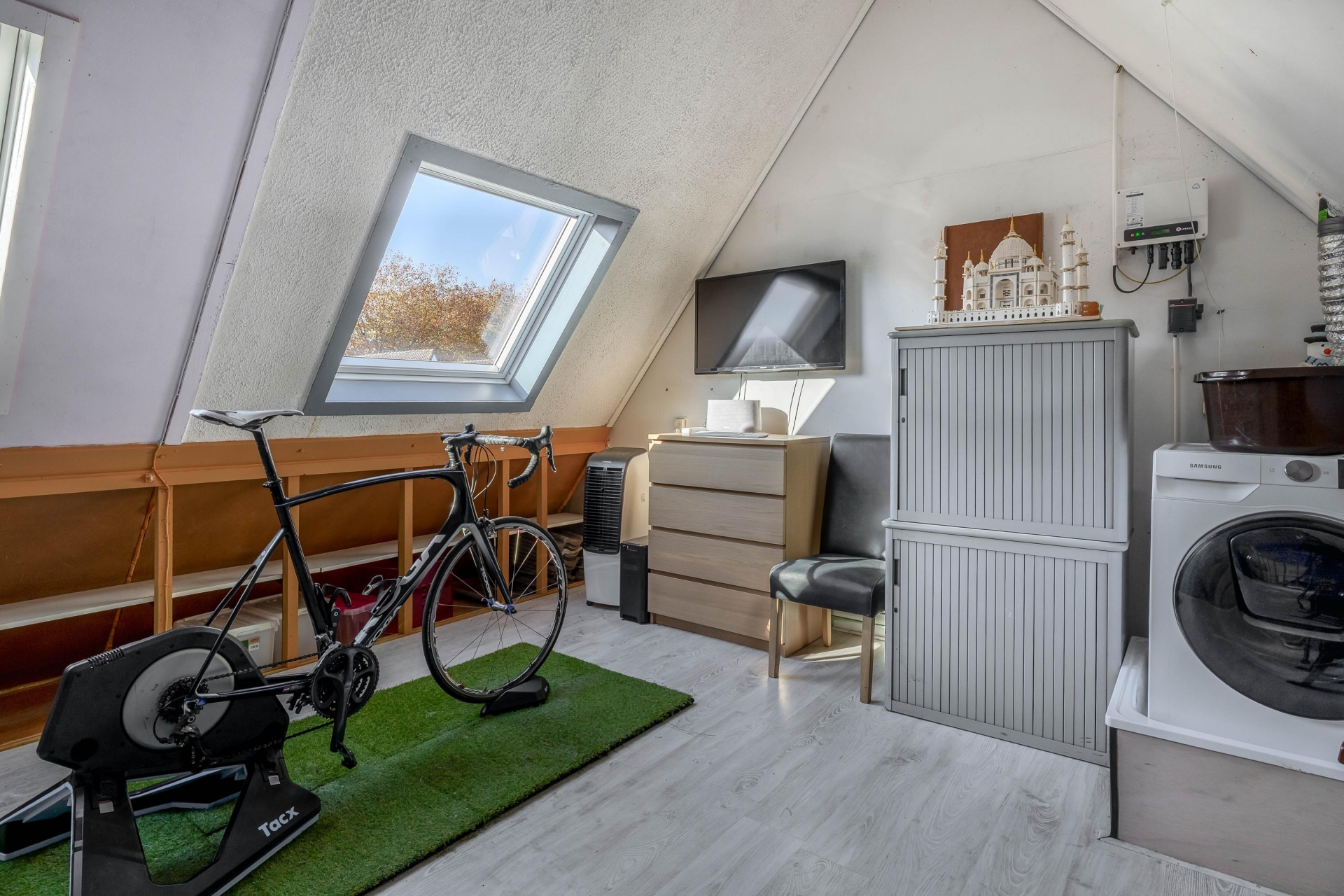 De ruime zolderverdieping biedt volop mogelijkheden en kan eenvoudig worden omgebouwd tot een extra slaapkamer. Op deze verdieping bevinden zich tevens de wasmachineaansluiting en de omvormer van de zonnepanelen.
