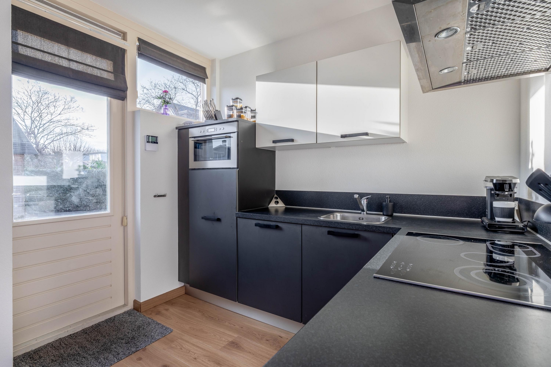 De keuken sluit prettig aan op de leefruimte en is functioneel ingericht. Alles is aanwezig voor dagelijks gebruik en de ruimte biedt een fijne basis, voldoende werk- en kastruimte en je kijkt uit richting de tuin. De indeling maakt koken overzichtelijk en praktisch, met alles binnen handbereik. Vanuit de keuken loop je zo de achtertuin in, ideaal op mooie dagen of wanneer je buiten wilt eten.