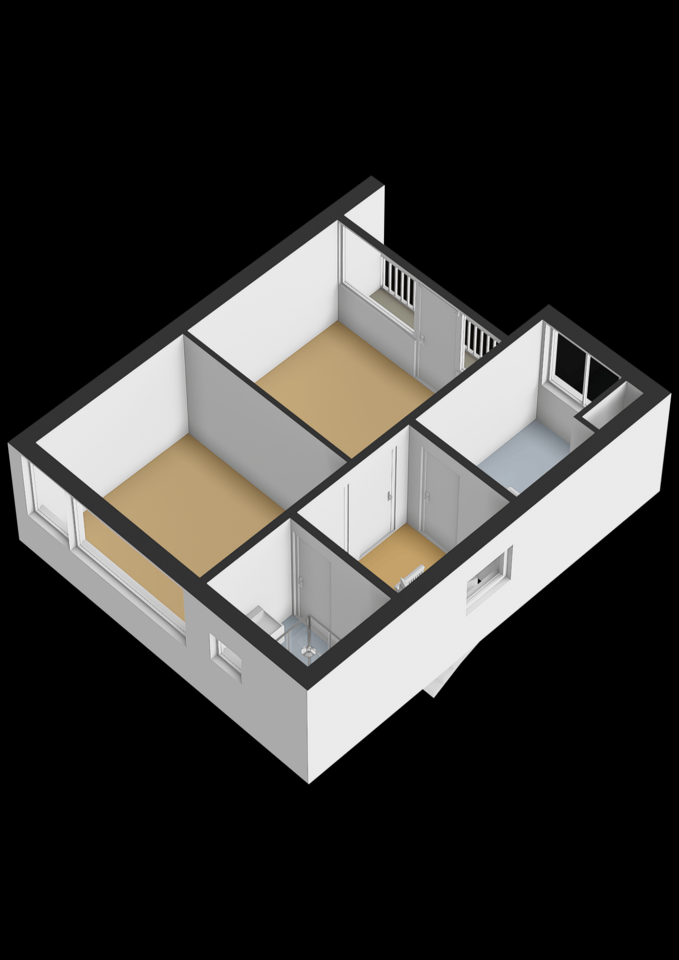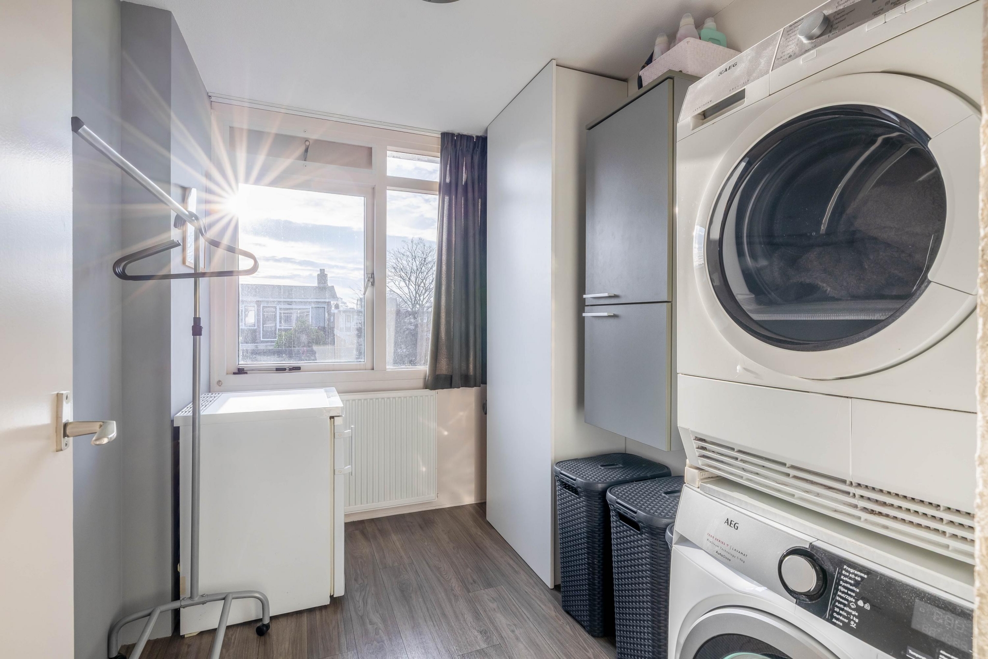 Op de eerste verdieping bevinden zich drie kamers. De grootste kamer is in gebruik als hoofdslaapkamer. Daarnaast is er een tweede slaapkamer die zich goed leent als kinder- of werkkamer. De derde kamer wordt momenteel gebruikt als praktische wasruimte, maar kan desgewenst ook weer als slaapkamer of werkruimte worden ingericht.
