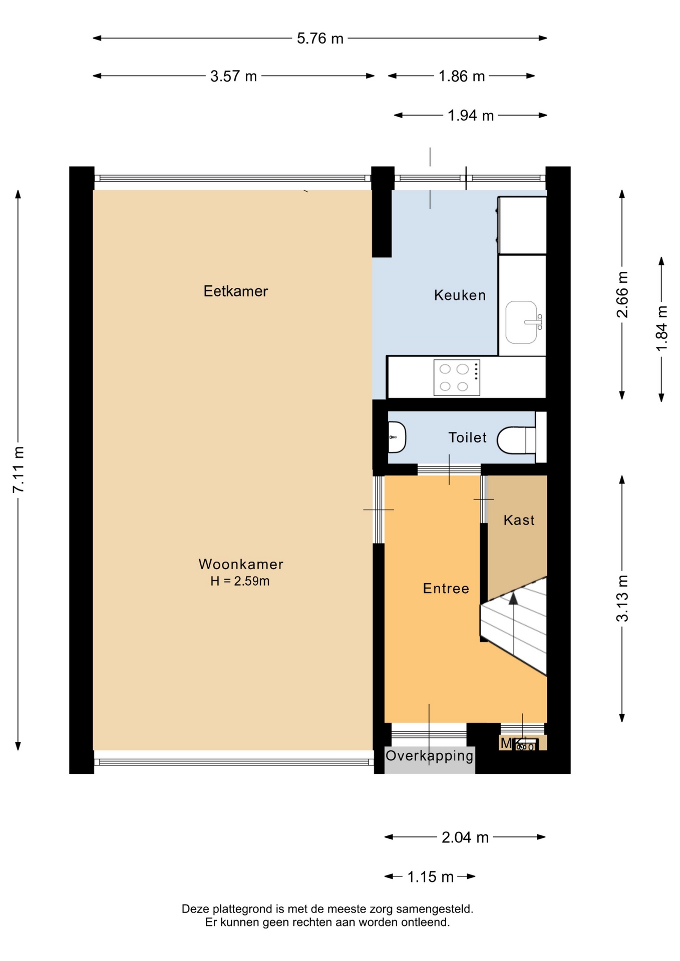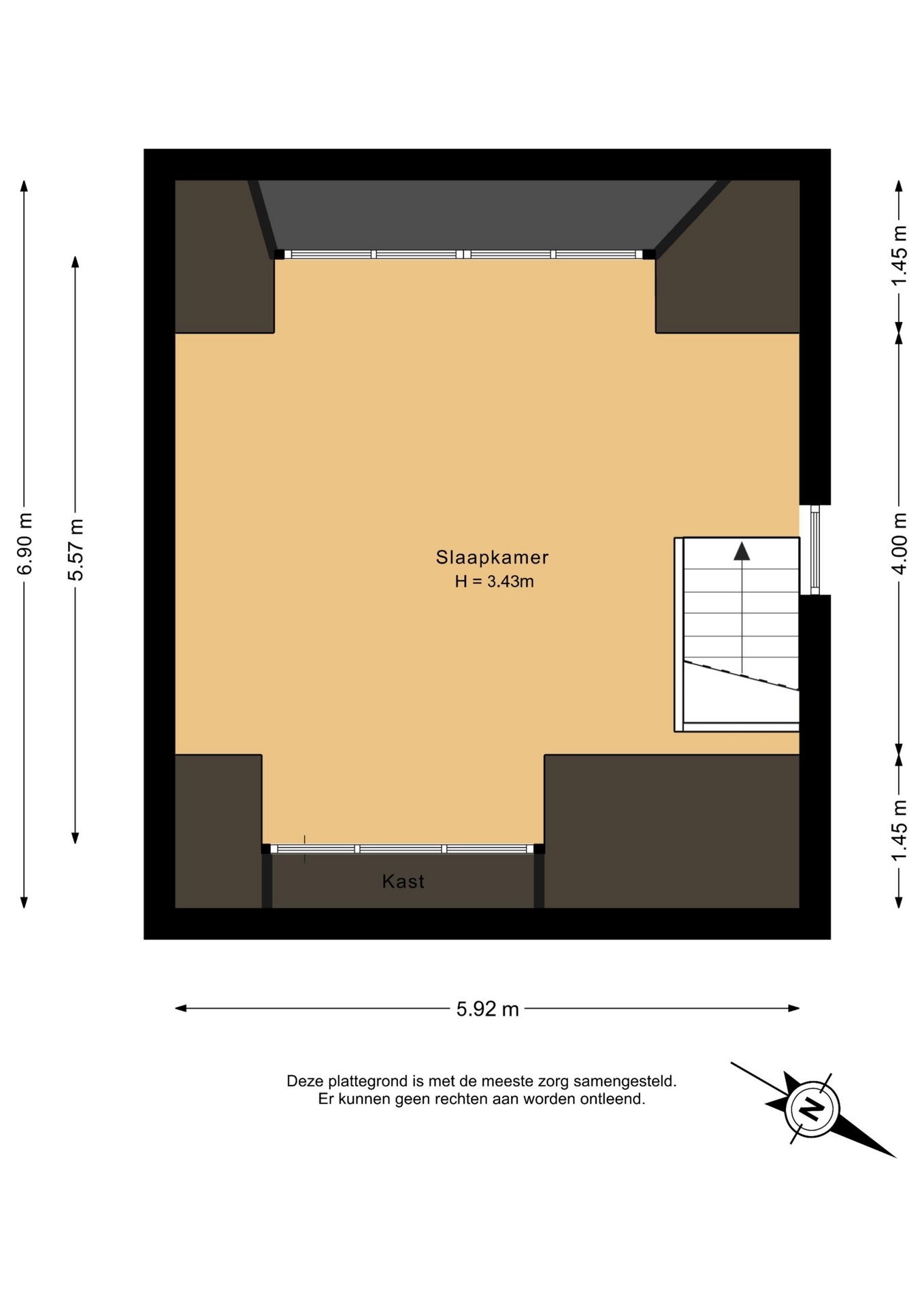 “Deze informatie is door ons met de nodige zorgvuldigheid samengesteld. Onzerzijds wordt echter geen enkele aansprakelijkheid aanvaard voor enige onvolledigheid, onjuistheid of anderszins, dan wel de gevolgen daarvan. Alle opgegeven maten en oppervlakten zijn indicatief.”