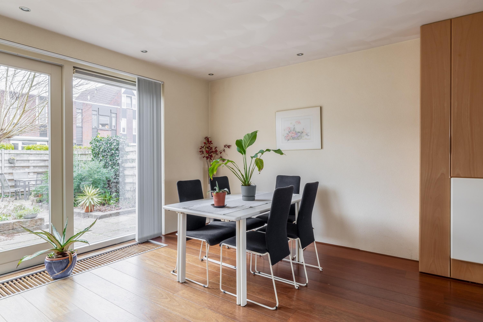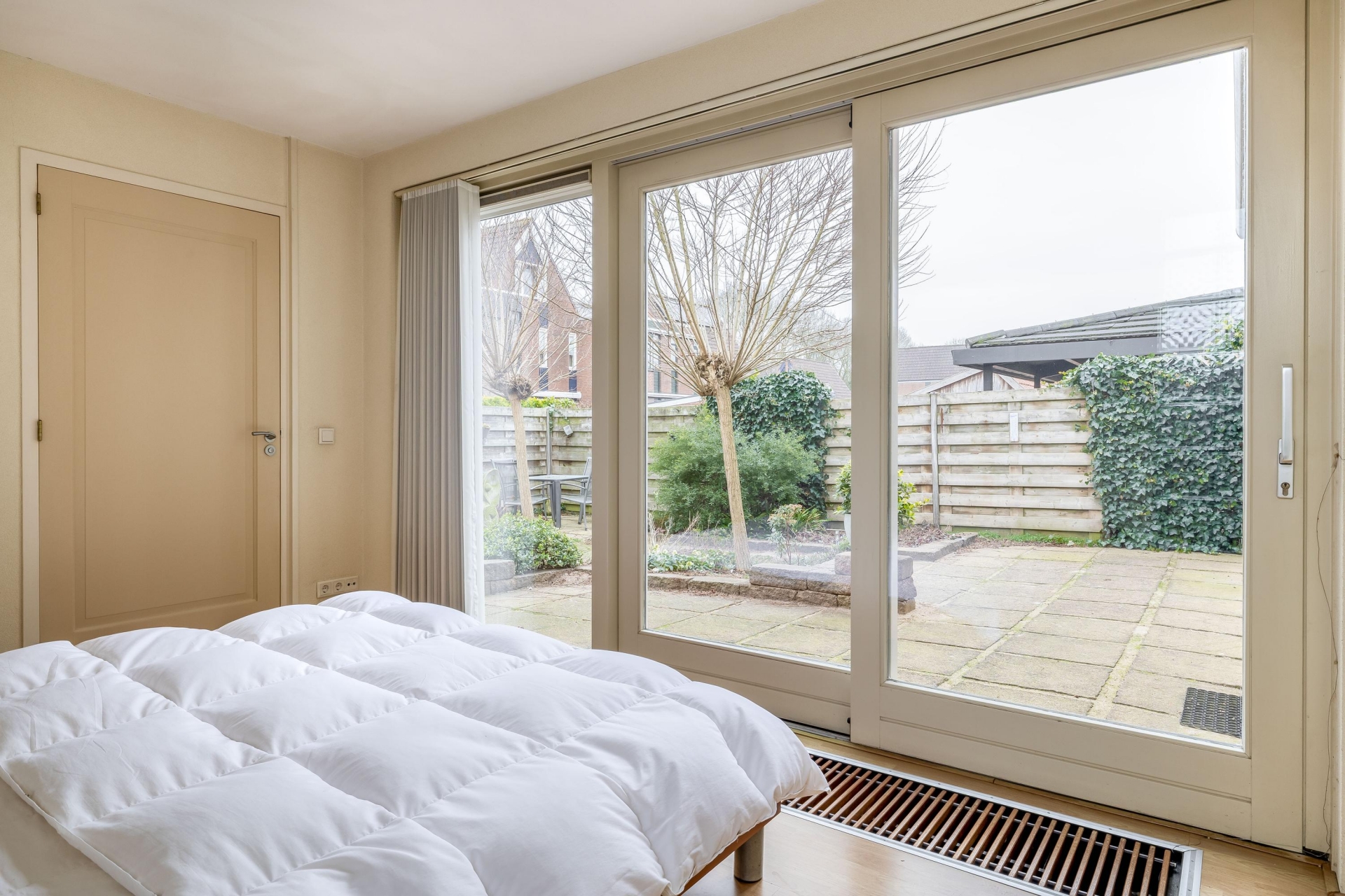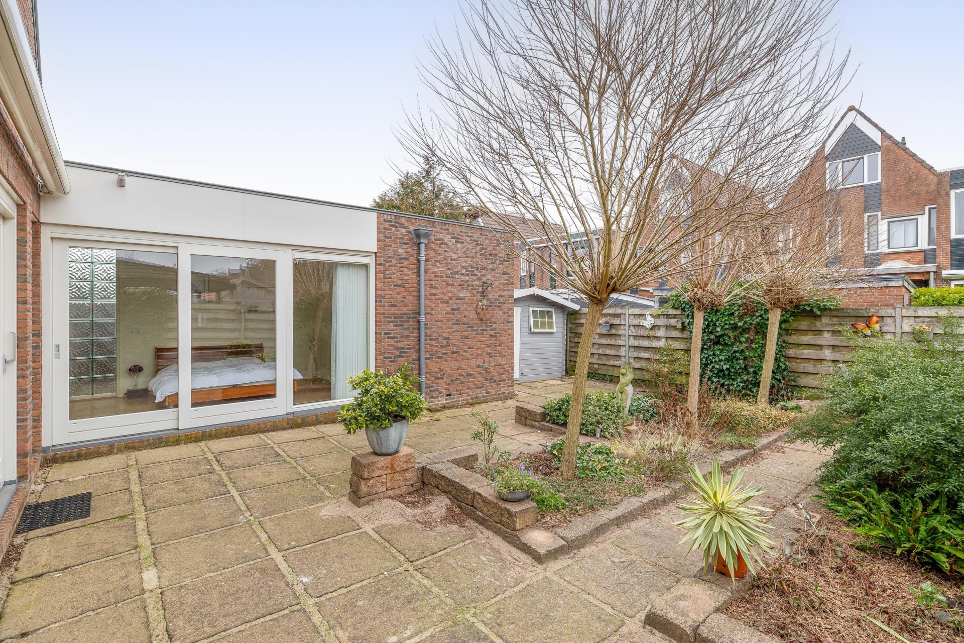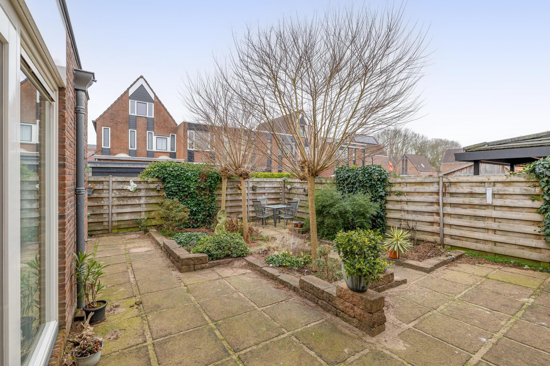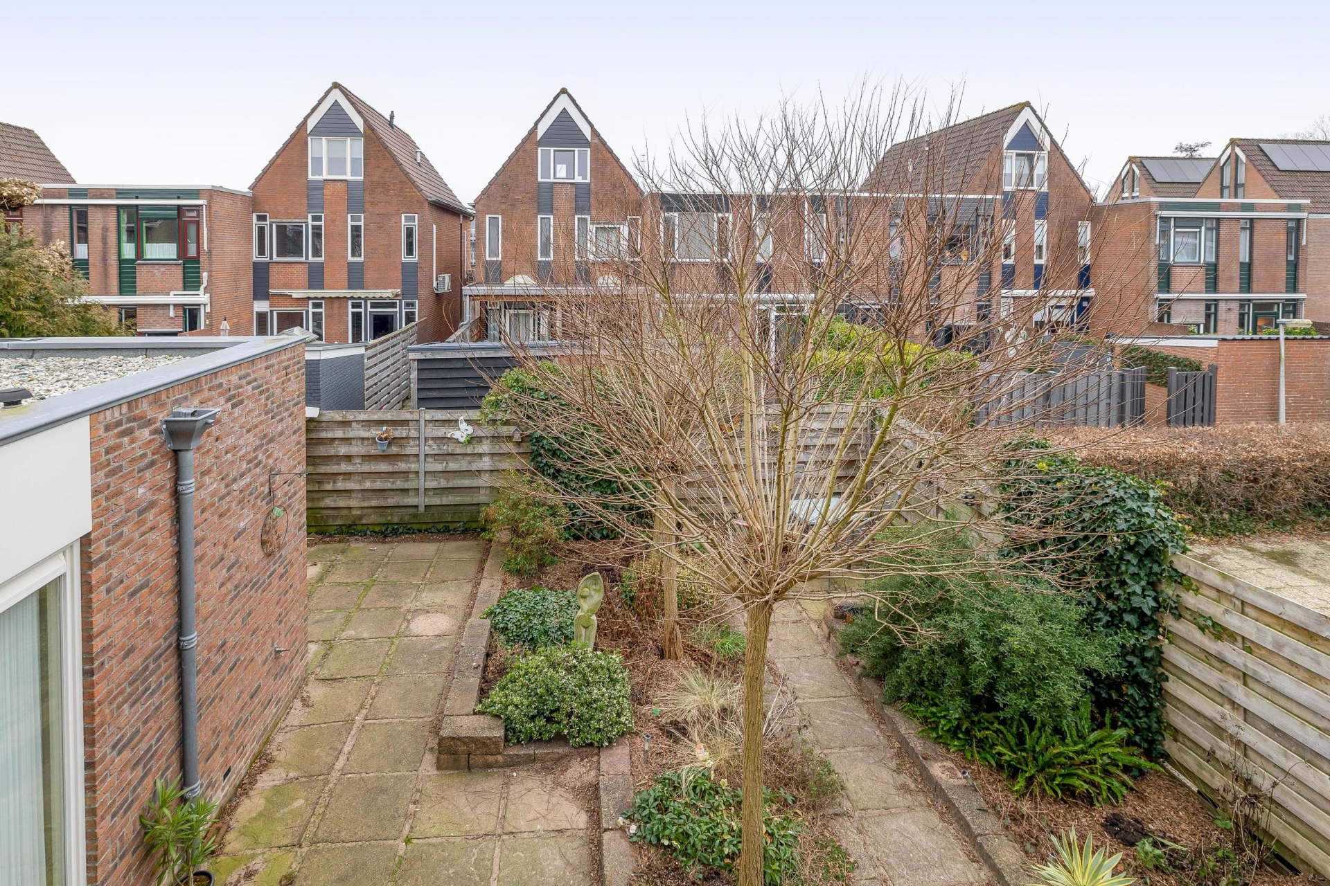 De achtertuin is verzorgd aangelegd en gelegen op het oosten. Hierdoor geniet je vanaf de ochtend al van de zon. De tuin biedt meerdere zitplekken, voldoende privacy en is overzichtelijk van formaat. Groot genoeg om fijn buiten te zitten, maar zonder dat het veel onderhoud vraagt. Een prettige plek om de dag te beginnen met een kop koffie of juist rustig af te sluiten.