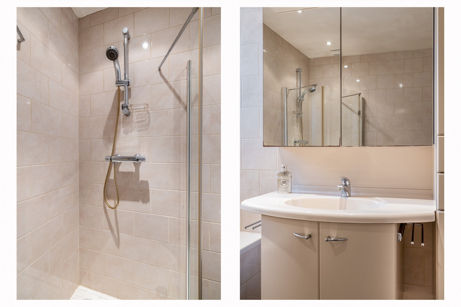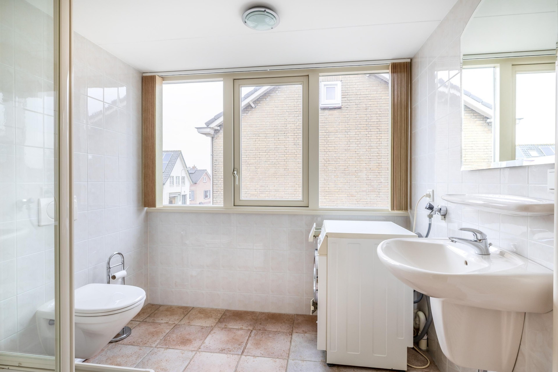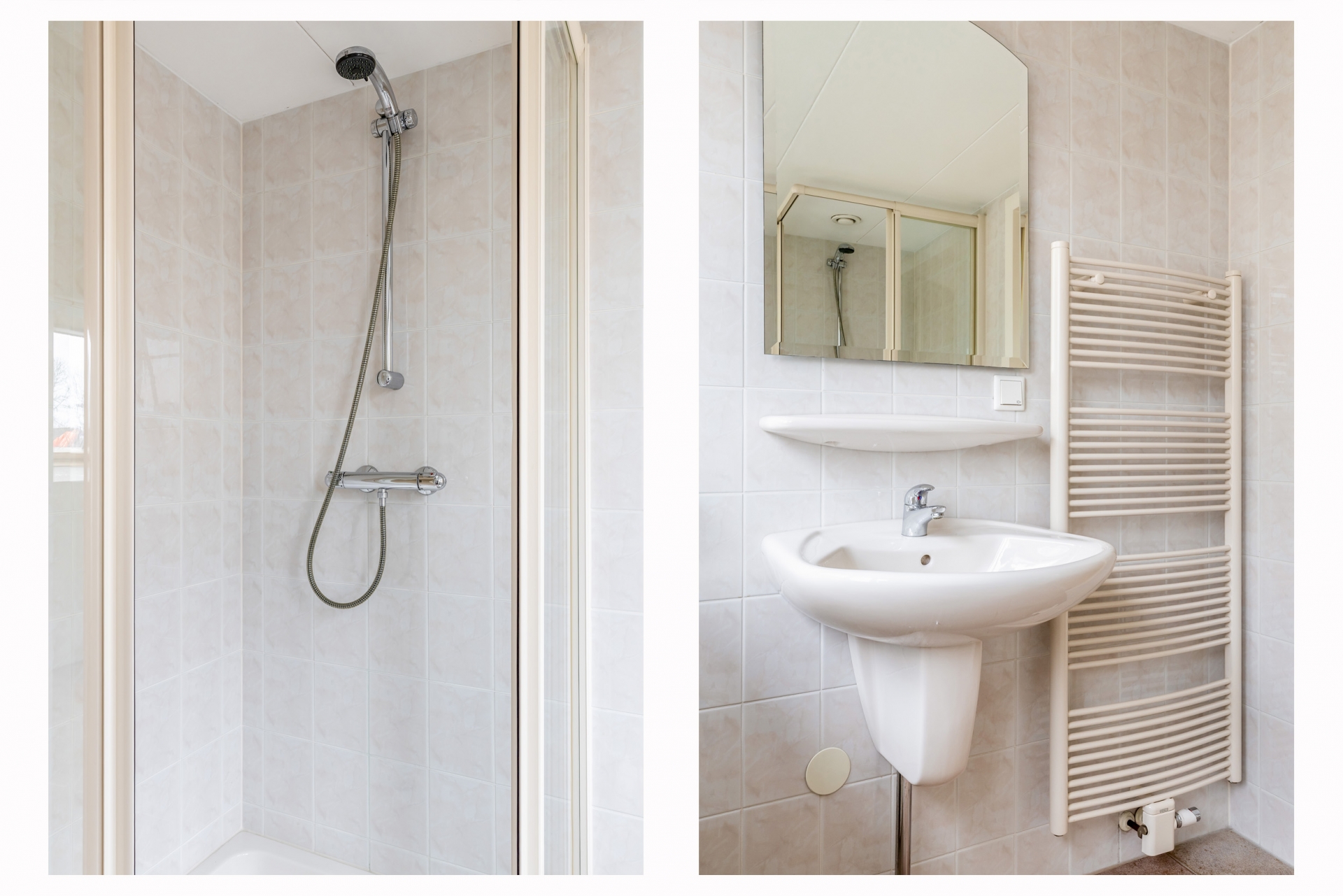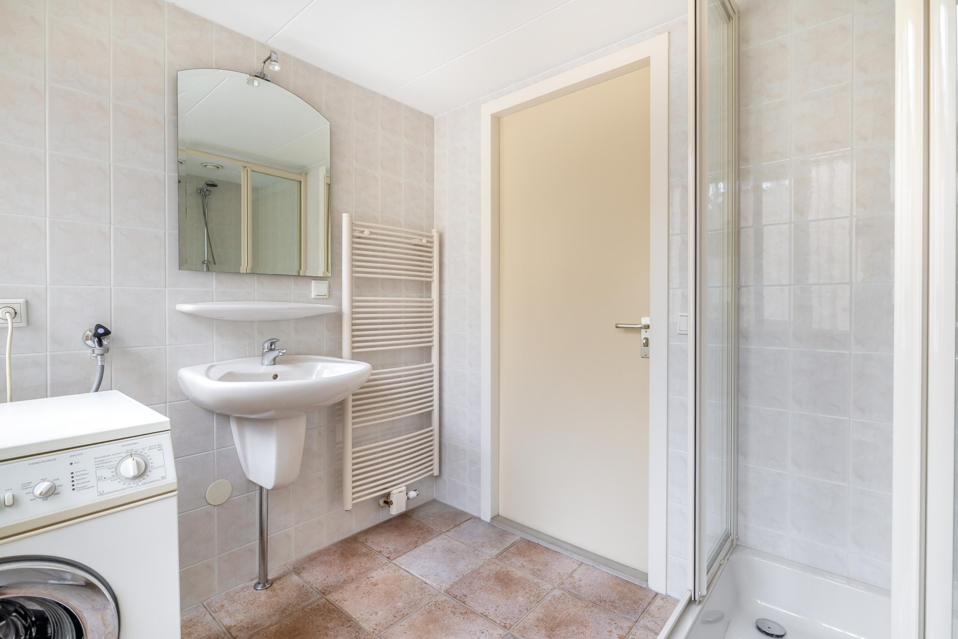 Ook vind je hier de 2e badkamer met douchecabine, wastafel, toilet en wasmachineaansluiting.