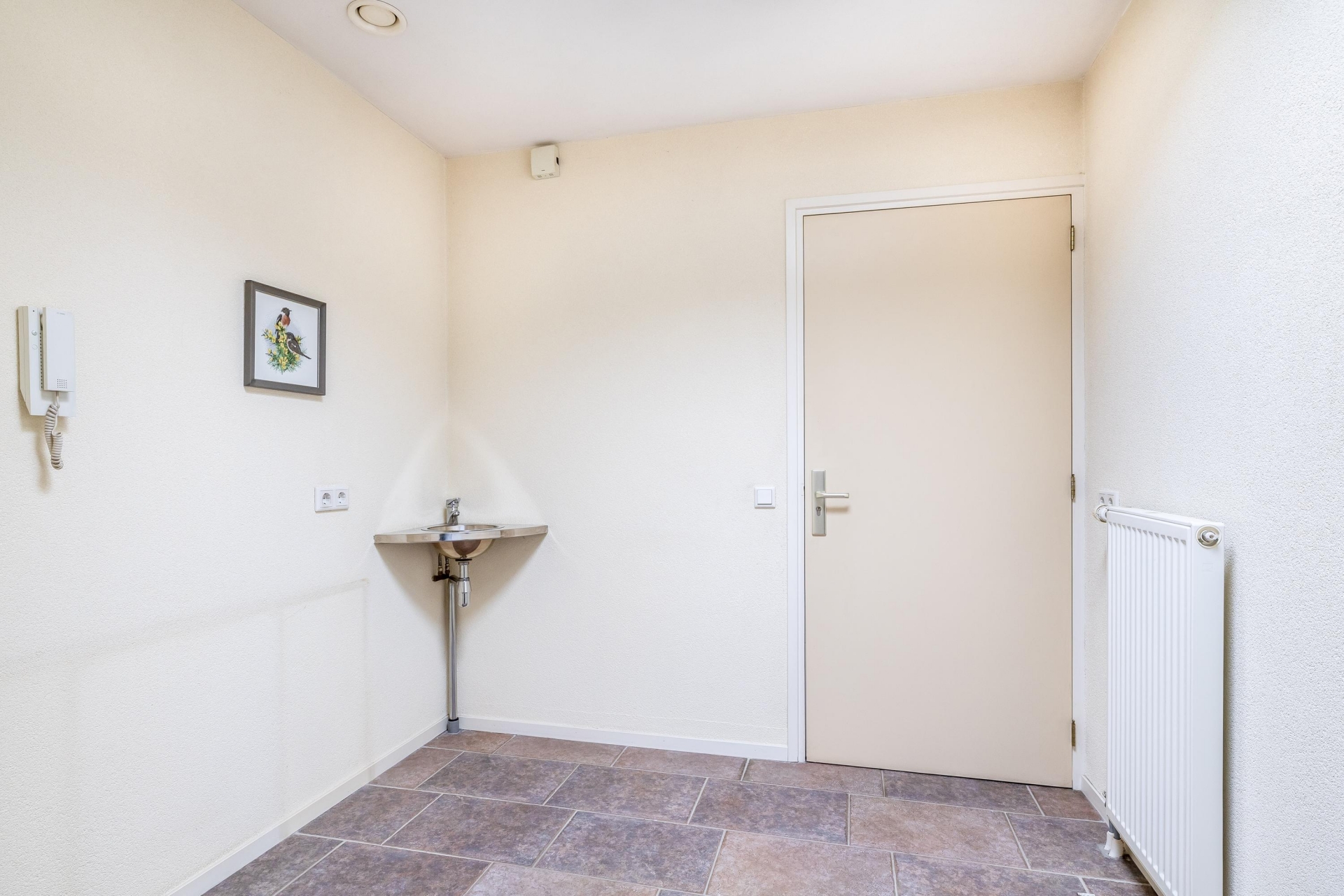 De ruimte die grenst aan de keuken en garage is multifunctioneel, te denken valt een bijkeuken, praktijkruimte, hobby- of kantoorruimte aan huis.