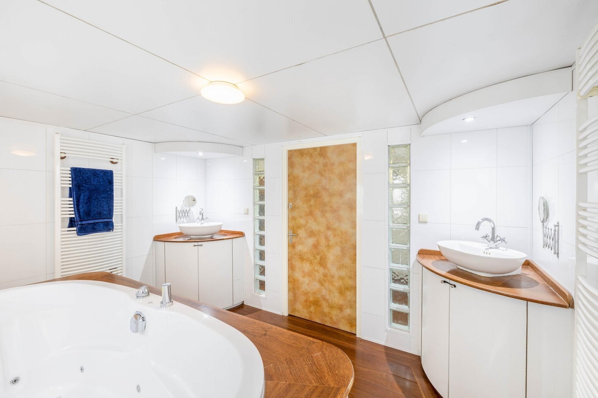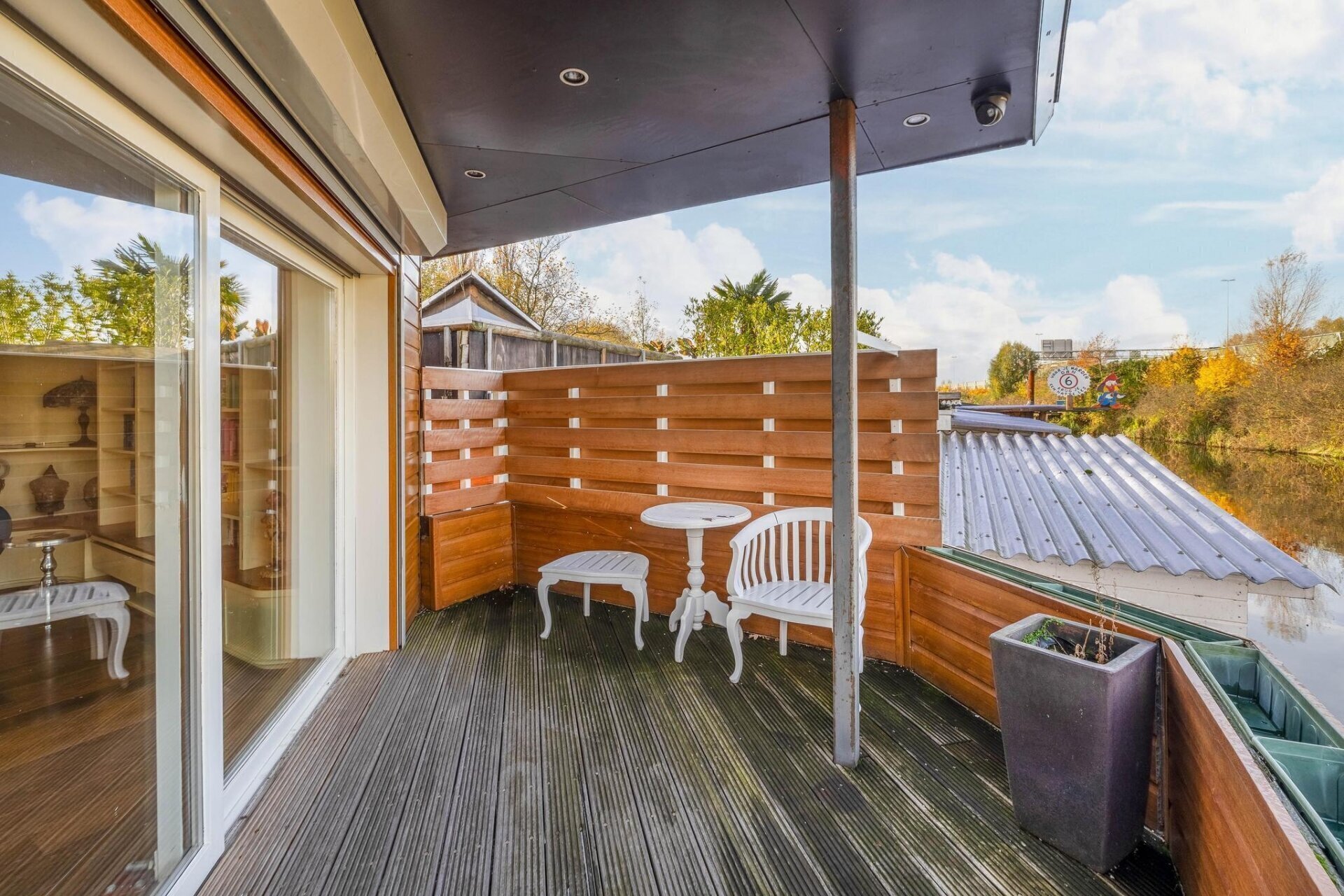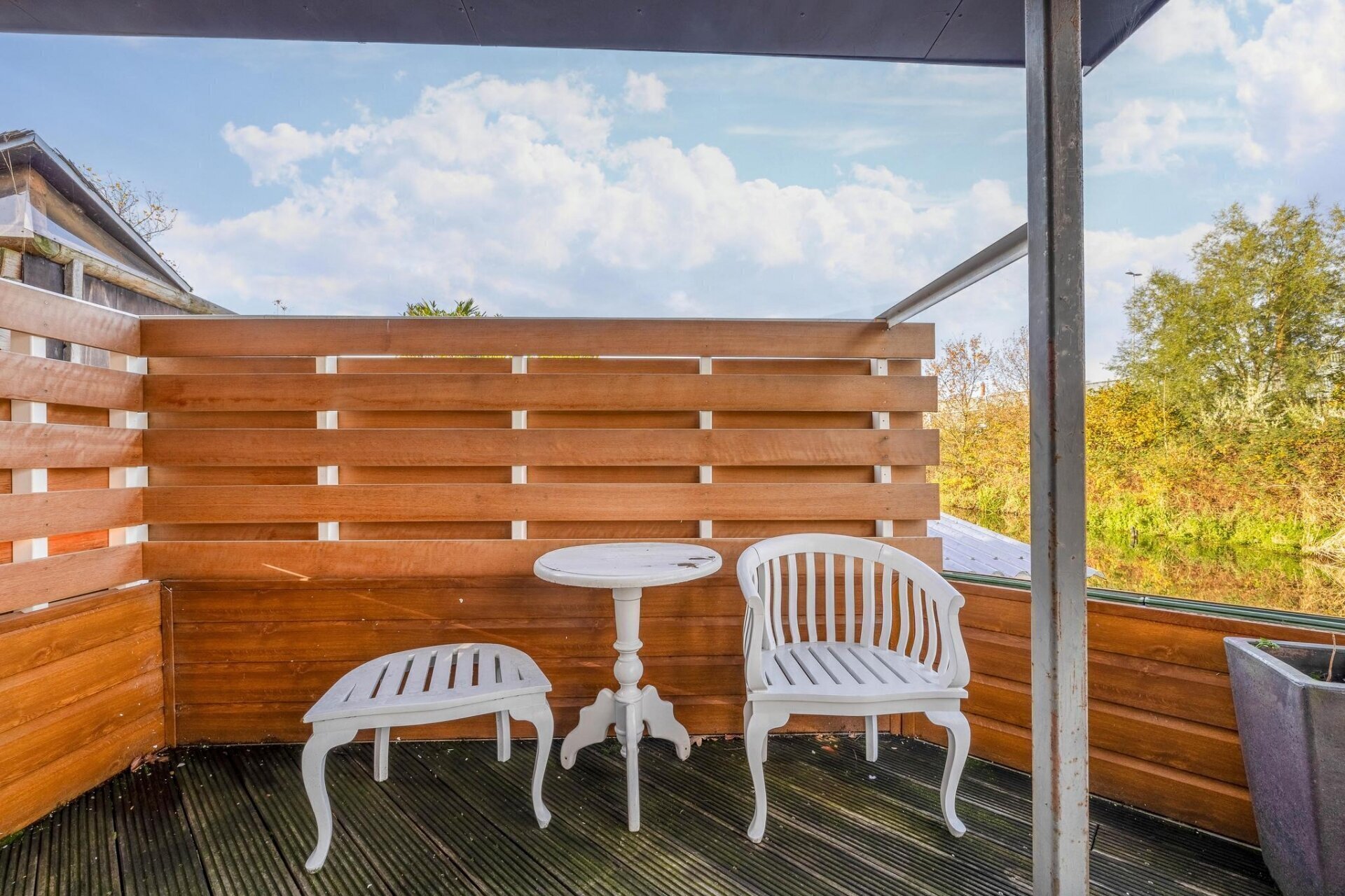 Deze woonark biedt een unieke extra: twee vrijstaande studio’s, volledig los van de hoofdwoning. Elke studio is voorzien van een eigen keuken, badkamer, toilet en schuifpui naar een terras. Of je ze nu gebruikt als gastenverblijf, thuiswerkplek, praktijkruimte of AirBnB-accommodatie, de mogelijkheden zijn eindeloos!
