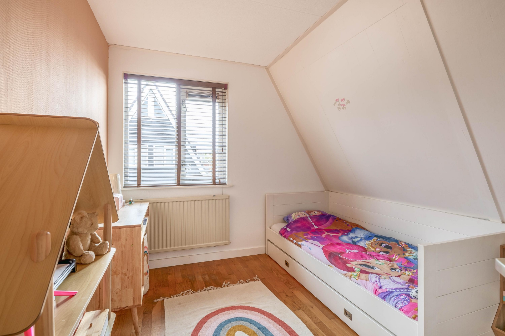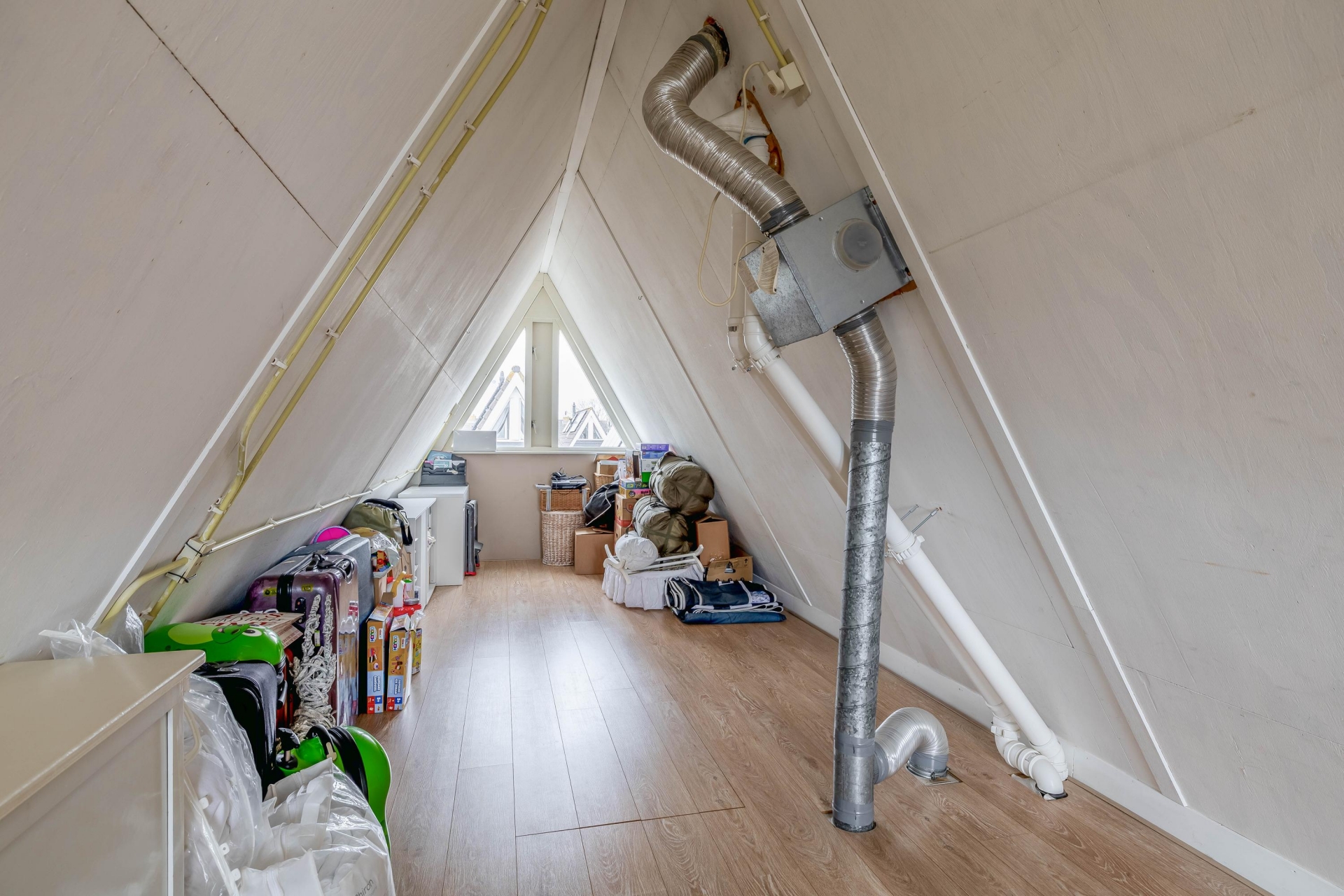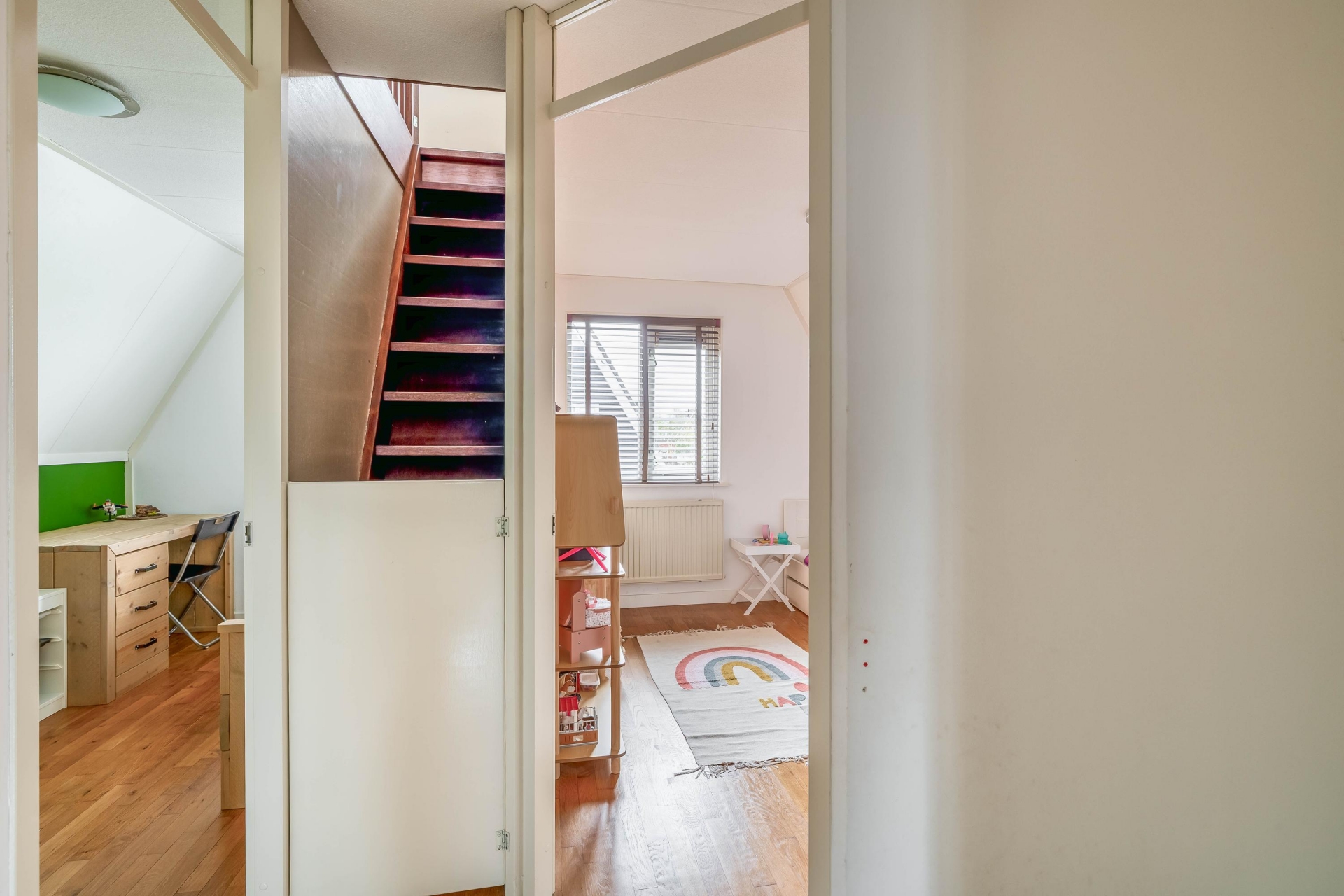 De tweede verdieping biedt extra mogelijkheden. Deze ruimte is groot genoeg om een extra slaapkamer te realiseren, wat dit huis extra interessant maakt voor gezinnen die behoefte hebben aan meer ruimte of een werkplek aan huis.