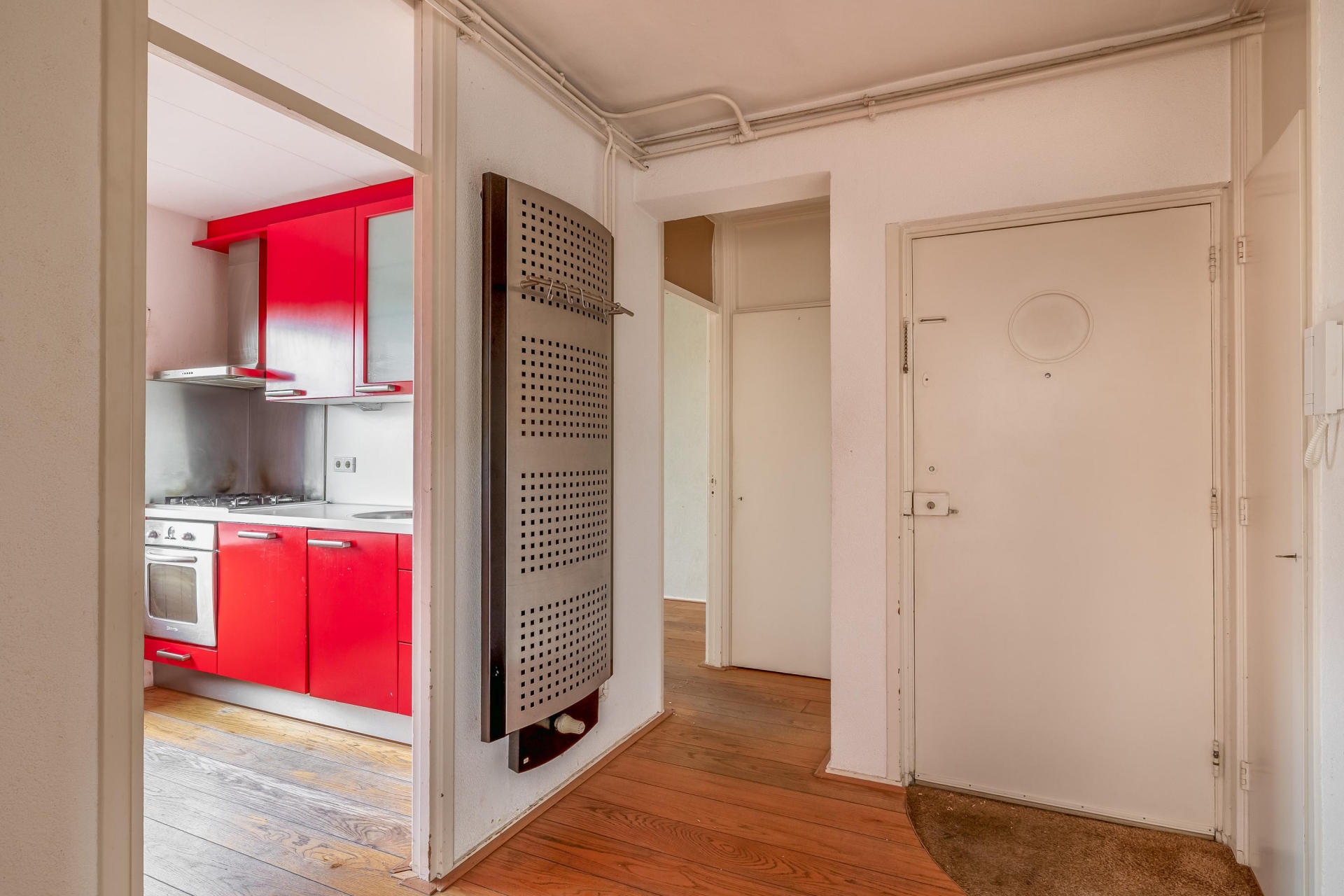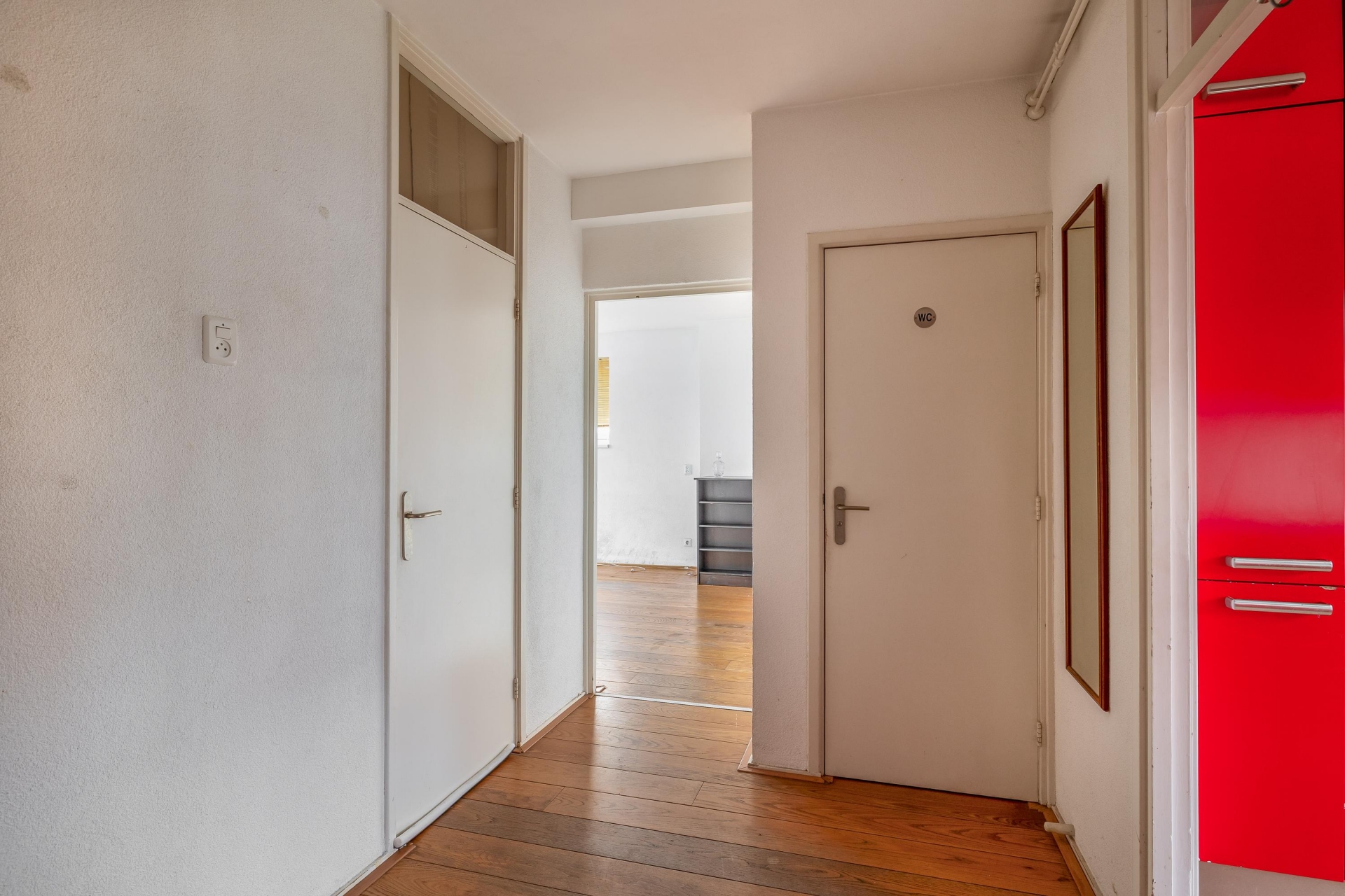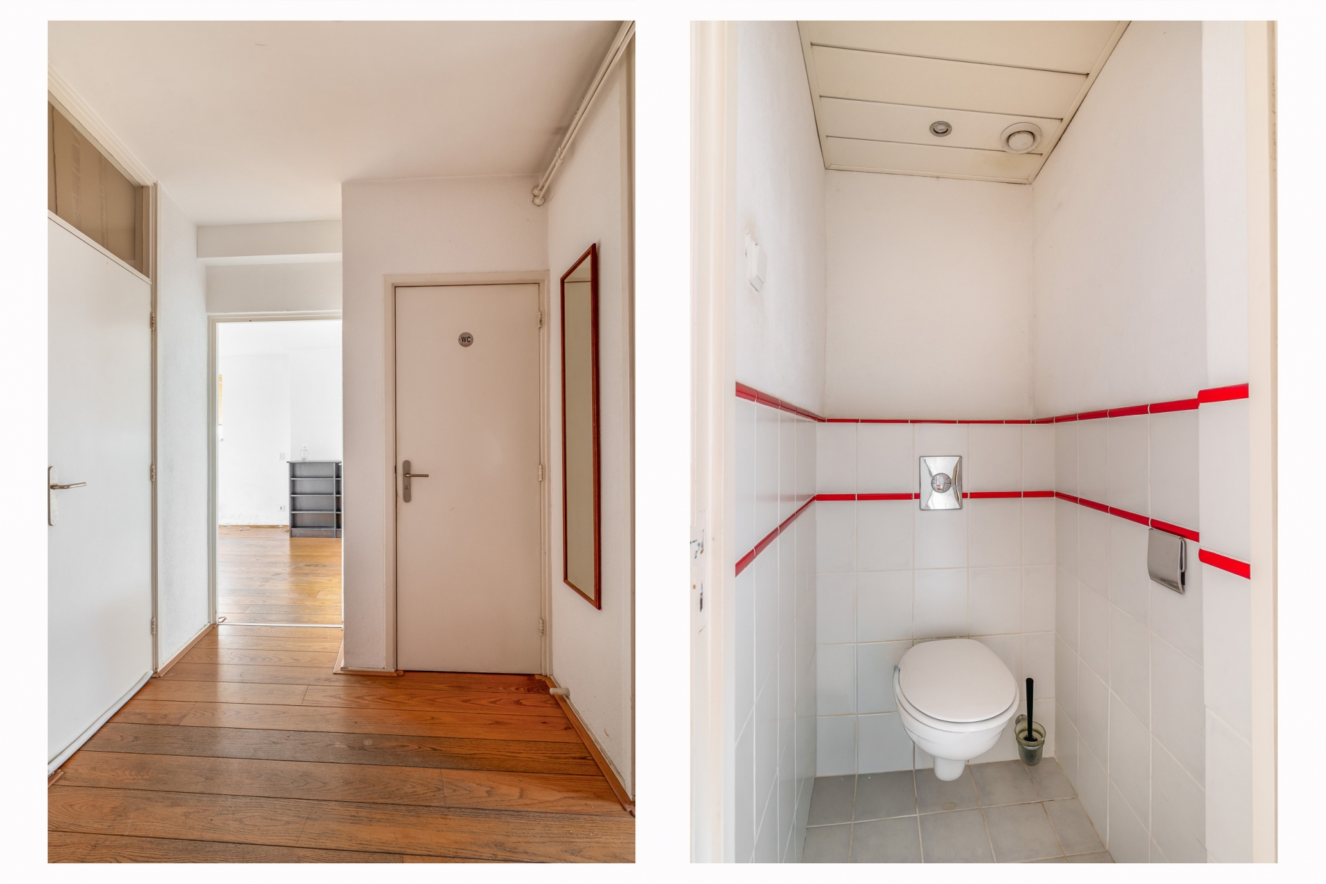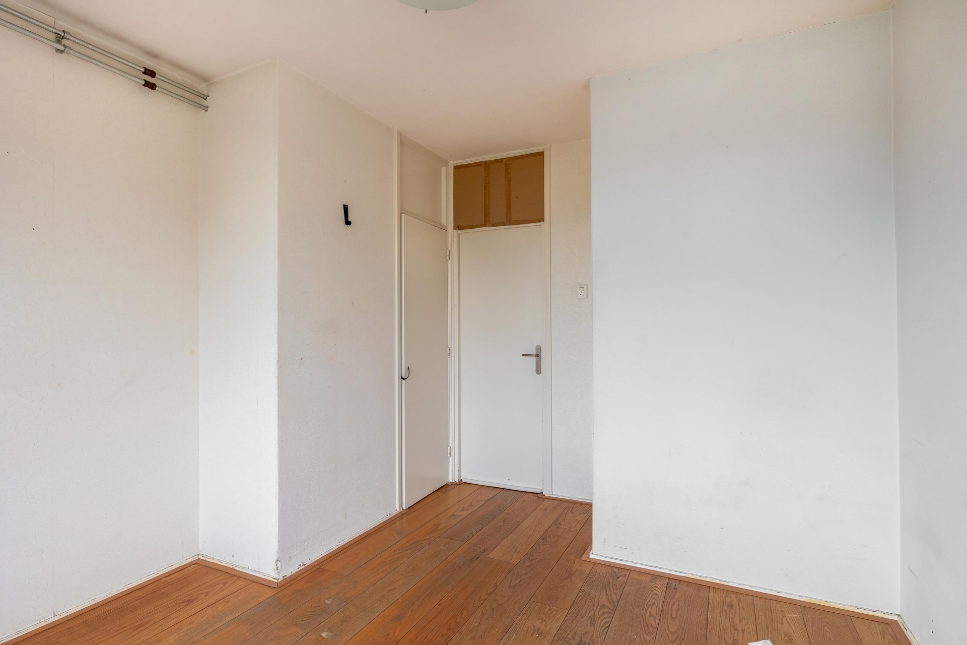 Het appartement beschikt over twee slaapkamers. De grootste kamer is geschikt als master bedroom en biedt voldoende ruimte voor een tweepersoonsbed en kledingkast. De tweede kamer is ideaal als logeerkamer, werkkamer of kinderkamer. Beide kamers zijn voorzien van de originele inbouwkasten, praktisch en ruimtebesparend.