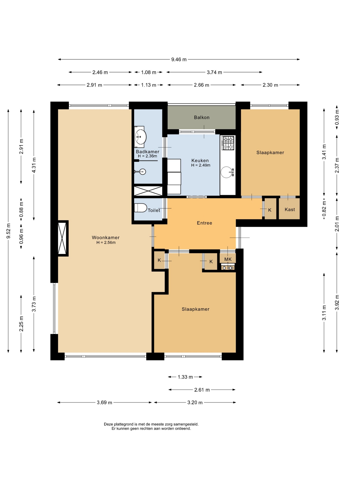 “Deze informatie is door ons met de nodige zorgvuldigheid samengesteld. Onzerzijds wordt echter geen enkele aansprakelijkheid aanvaard voor enige onvolledigheid, onjuistheid of anderszins, dan wel de gevolgen daarvan. Alle opgegeven maten en oppervlakten zijn indicatief.”