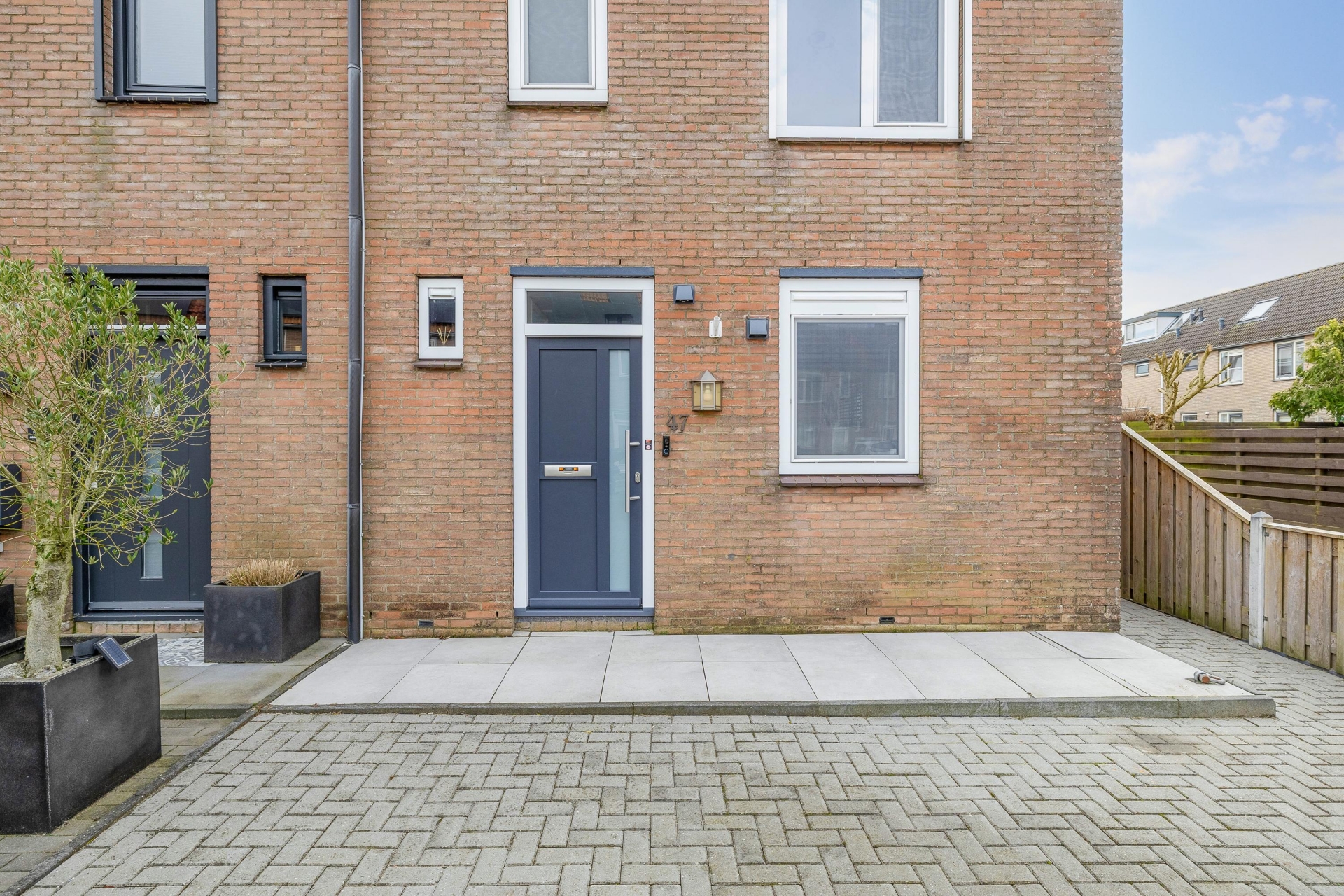 Een van de grote pluspunten van dit huis is de buitenruimte. Door de hoekligging beschik je over een voor-, zij- en achtertuin, waardoor je rondom het huis ruimte hebt. De achtertuin ligt op het zuidoosten en is verzorgd aangelegd met grote terrastegels. Hierdoor heb je meerdere plekken waar je van de zon kunt genieten.