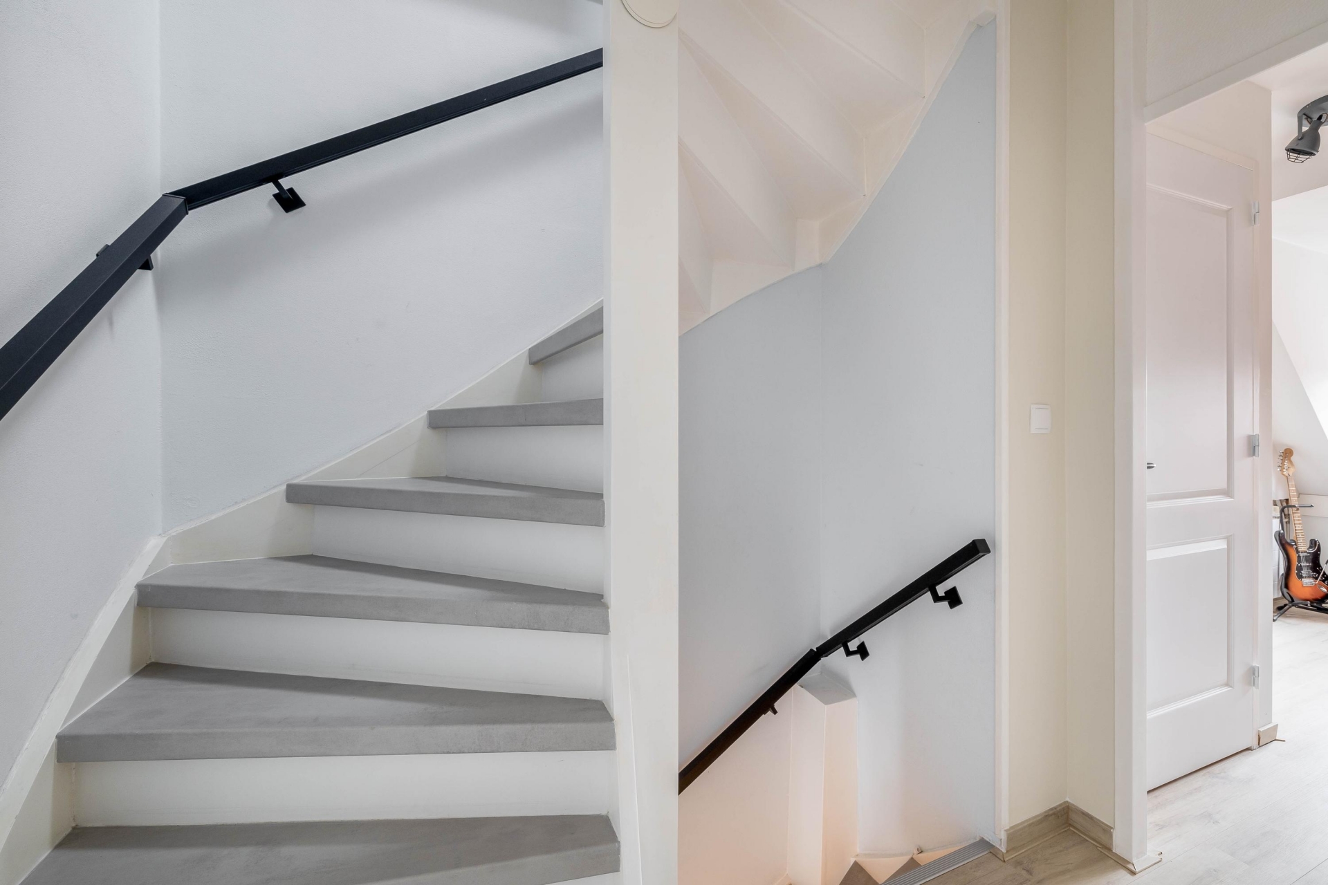 Via de entree kom je binnen in de hal met meterkast, toilet en trap naar de eerste verdieping. Vanuit hier stap je de woonkamer binnen. Dankzij de hoekligging en de grote ramen komt er veel daglicht naar binnen, wat zorgt voor een prettige en lichte sfeer.
