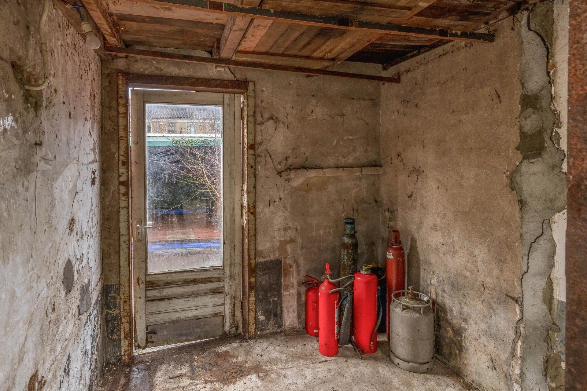 Wat direct opvalt, is de besloten ligging. De voortuin is omzoomd met groen waardoor de voordeur een beetje verscholen ligt – dat geeft meteen een knusse, bijna cottage-achtige sfeer. Aan de achterzijde ligt de tuin op het westen, met volop middag- en avondzon. Ideaal voor een drankje na het werk of een zomerse barbecue (na wat opknapwerk, natuurlijk). De tuin biedt mogelijkheden om bijvoorbeeld een veranda te bouwen, een schuurtje te plaatsen of gewoon lekker te tuinieren. Je kijkt bovendien vrij weg, dus privacy is zeker een pluspunt hier.