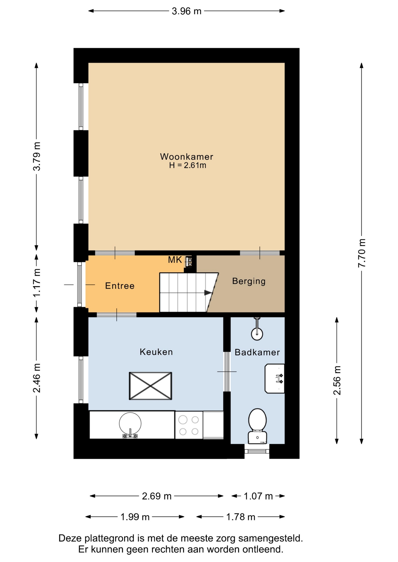 “Deze informatie is door ons met de nodige zorgvuldigheid samengesteld. Onzerzijds wordt echter geen enkele aansprakelijkheid aanvaard voor enige onvolledigheid, onjuistheid of anderszins, dan wel de gevolgen daarvan. Alle opgegeven maten en oppervlakten zijn indicatief.”