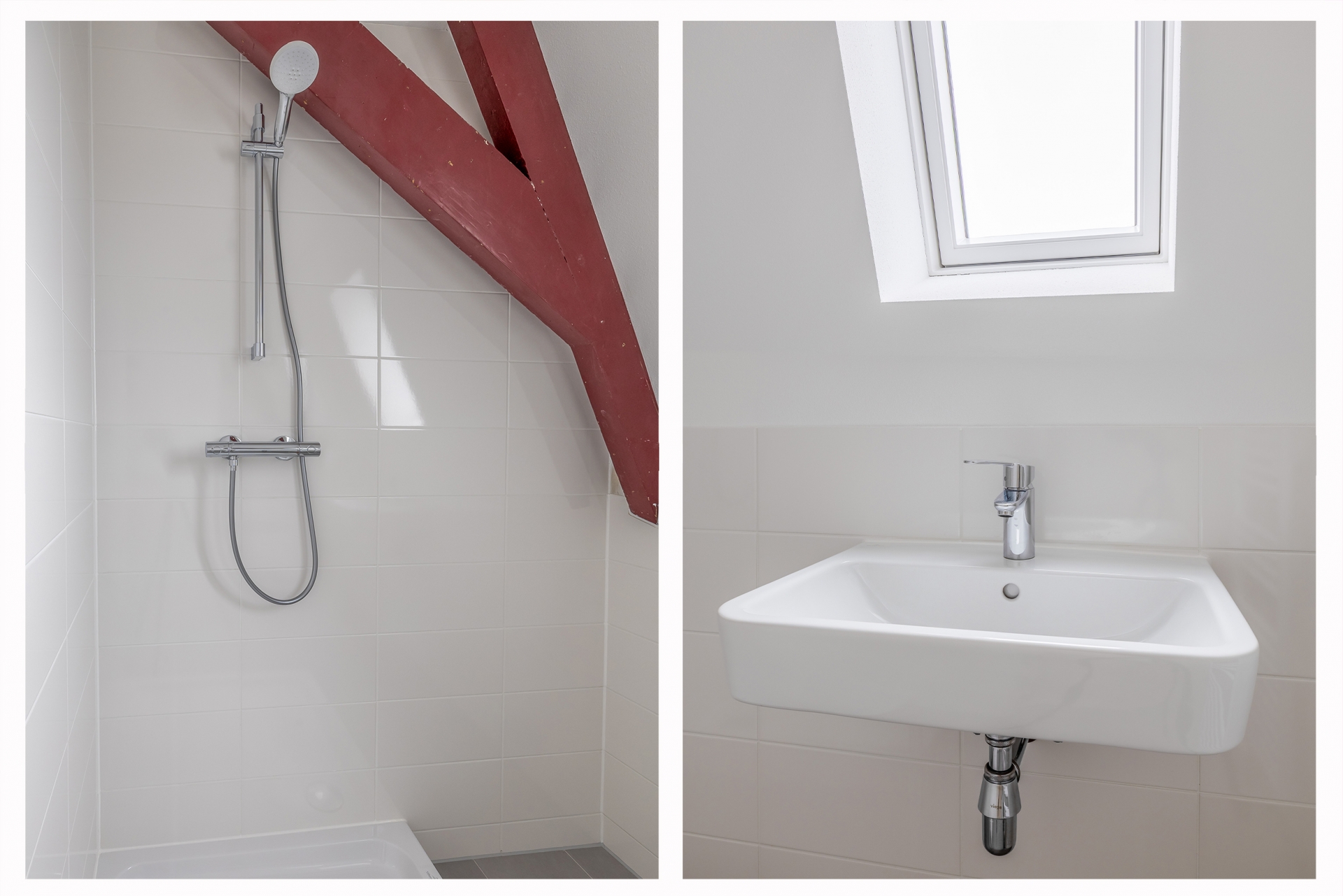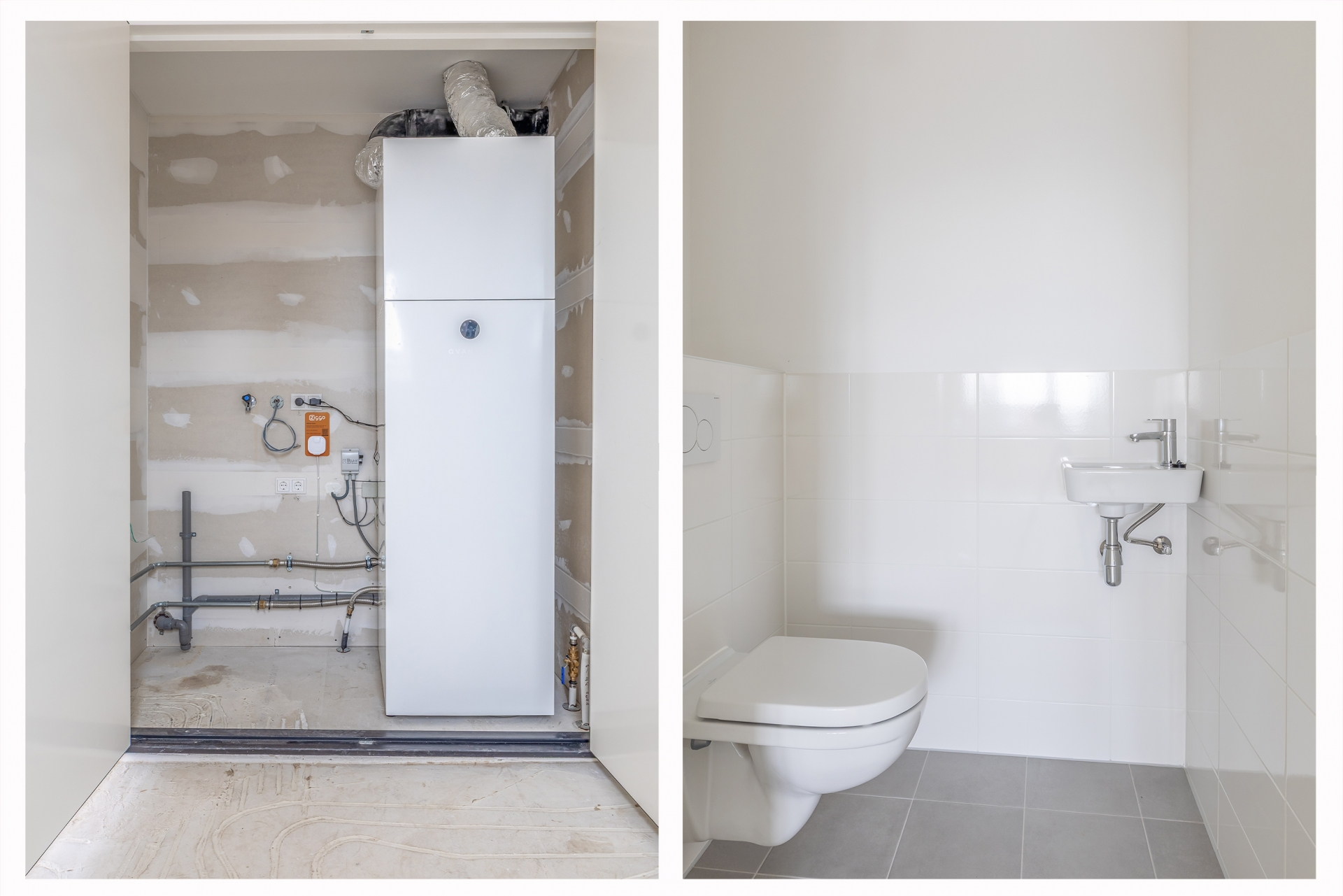 De badkamer is modern en strak afgewerkt met douche, wastafel en toilet. De keuken is nog niet geplaatst, maar de aansluitingen zijn al aanwezig. Je kunt dus zelf kiezen wat het beste bij je past. De wanden zijn behangklaar afgewerkt, waardoor je snel jouw eigen stijl kunt doorvoeren.