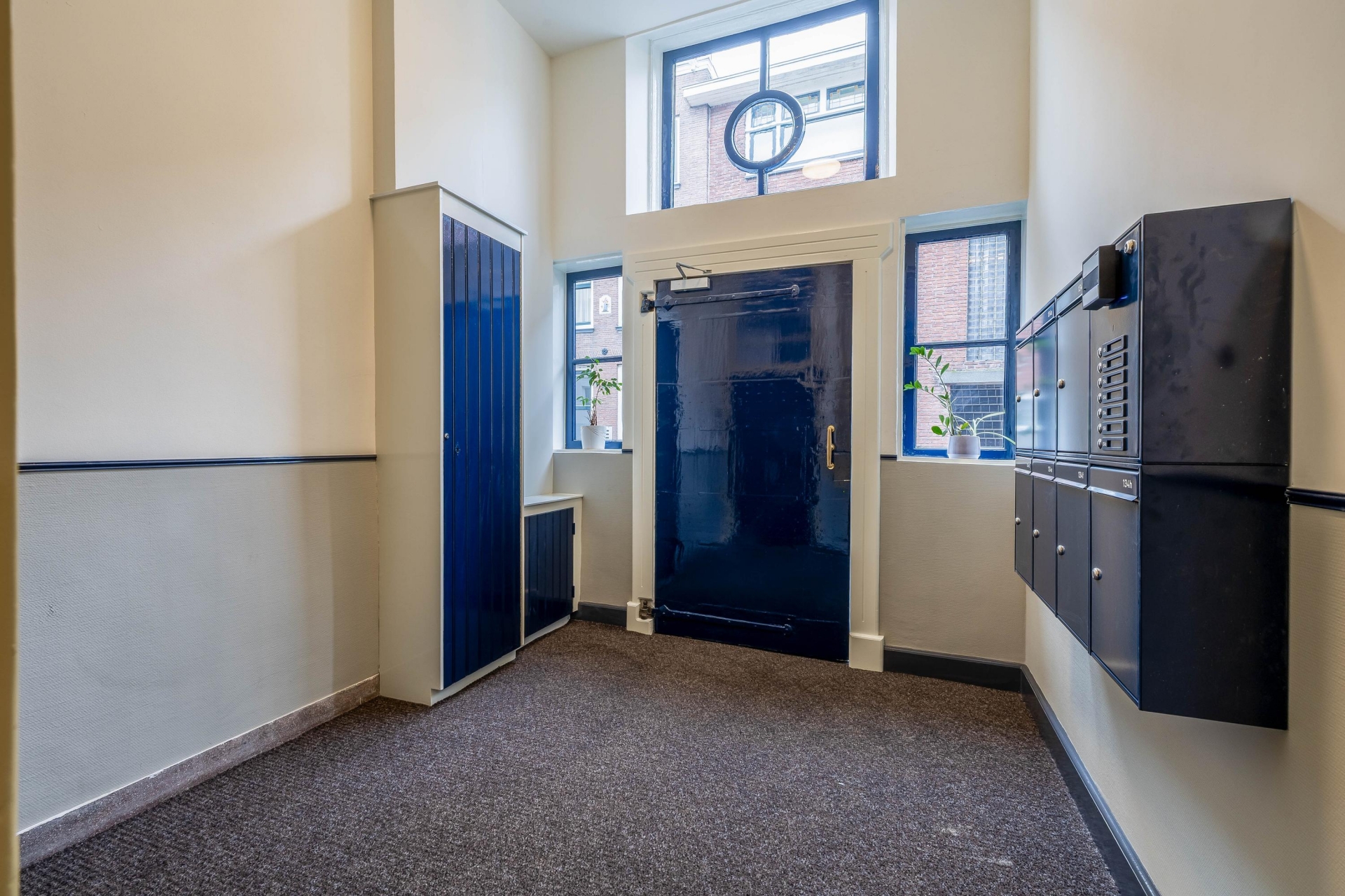 Wat deze studio bijzonder maakt, is de hoge plafondruimte met een entresol. Deze verhoogde slaapverdieping zorgt ervoor dat je de begane vloer volledig kunt gebruiken voor wonen en koken. De grote raampartijen zorgen voor een fijne lichtinval vanuit het westen, en geven de ruimte een open, loftachtige sfeer.