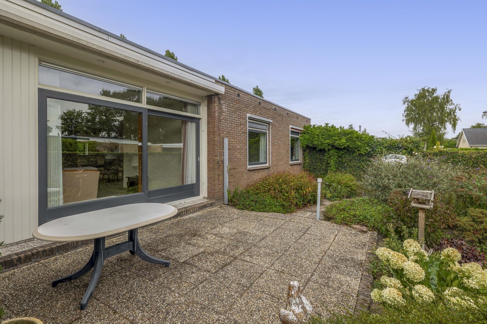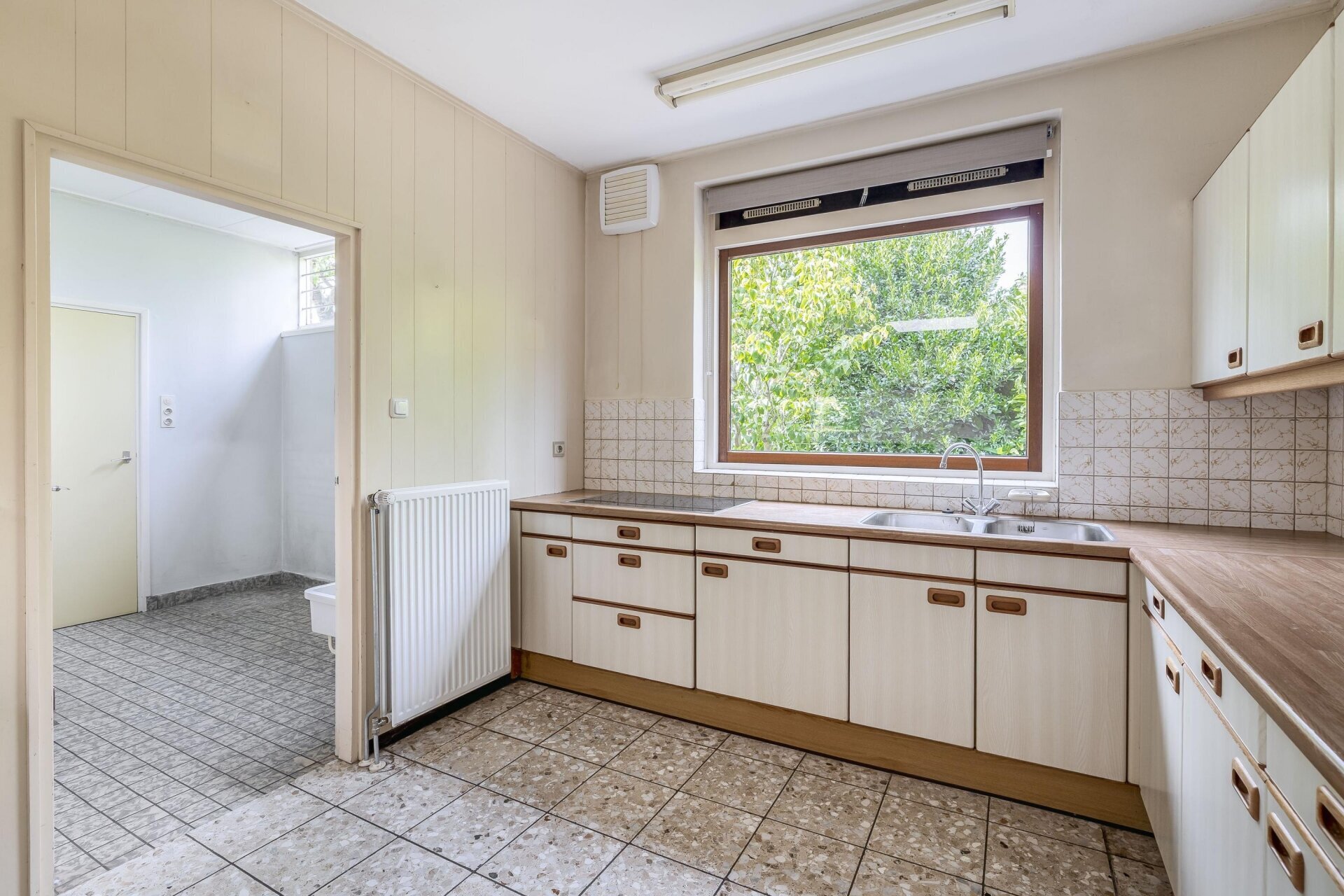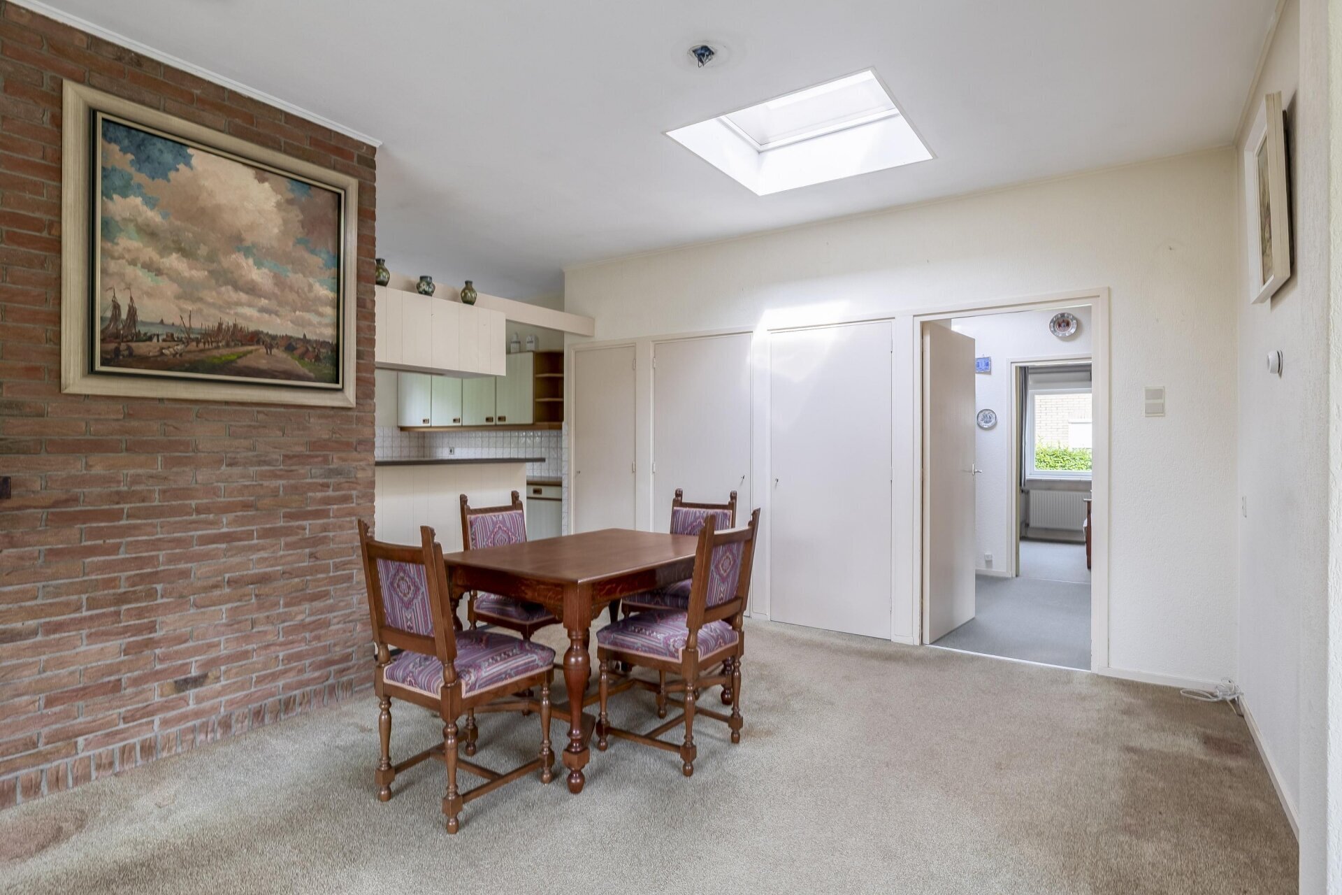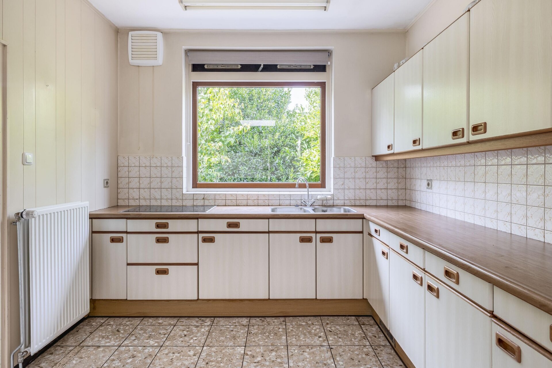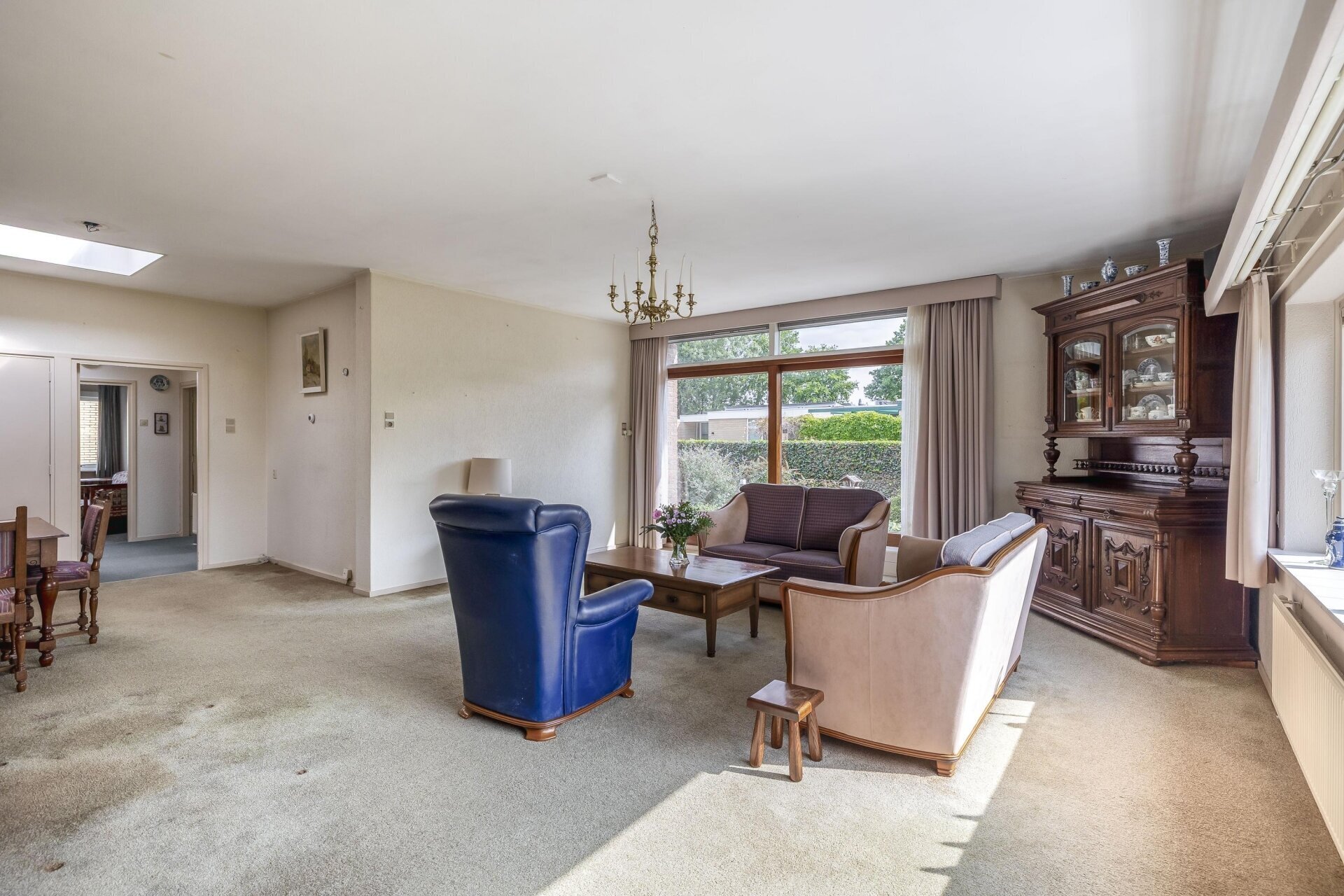 Voordeel van een bungalow is dat alles op begane grond niveau ligt, ideaal voor wie op zoek is naar gemak en toegankelijkheid. De royale woonkamer is het hart van het huis, met grote raampartijen die uitzicht bieden op de fraai aangelegde tuin. Door de hoekligging en grote ramen aan twee zijden komt het daglicht hier royaal binnen, wat de ruimte open en warm maakt. De woonkamer sluit aan op de open keuken. Er is daarnaast een praktische bijkeuken aanwezig met doorgang naar de tuin.