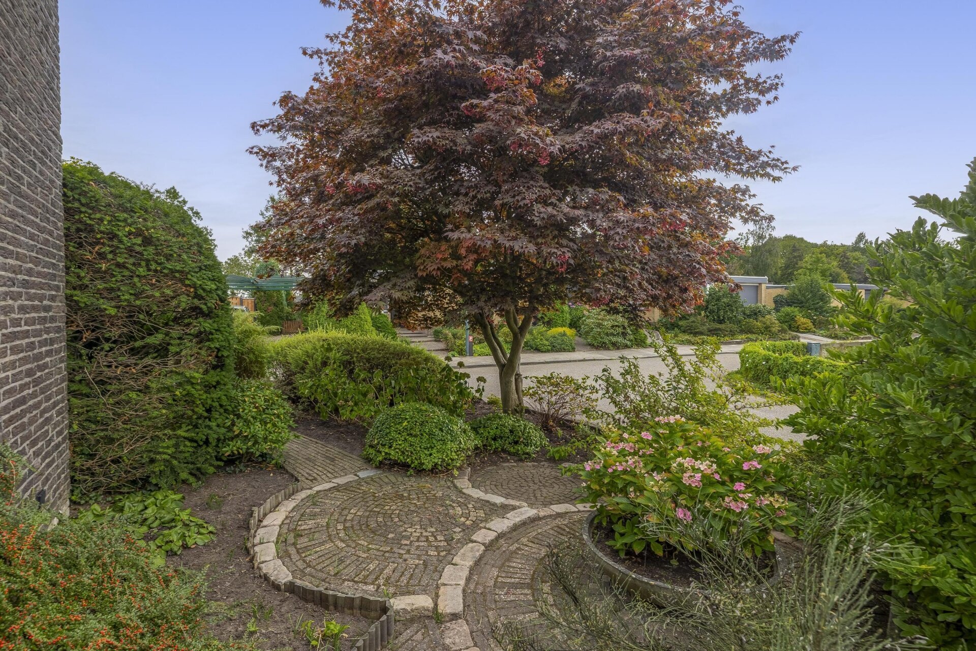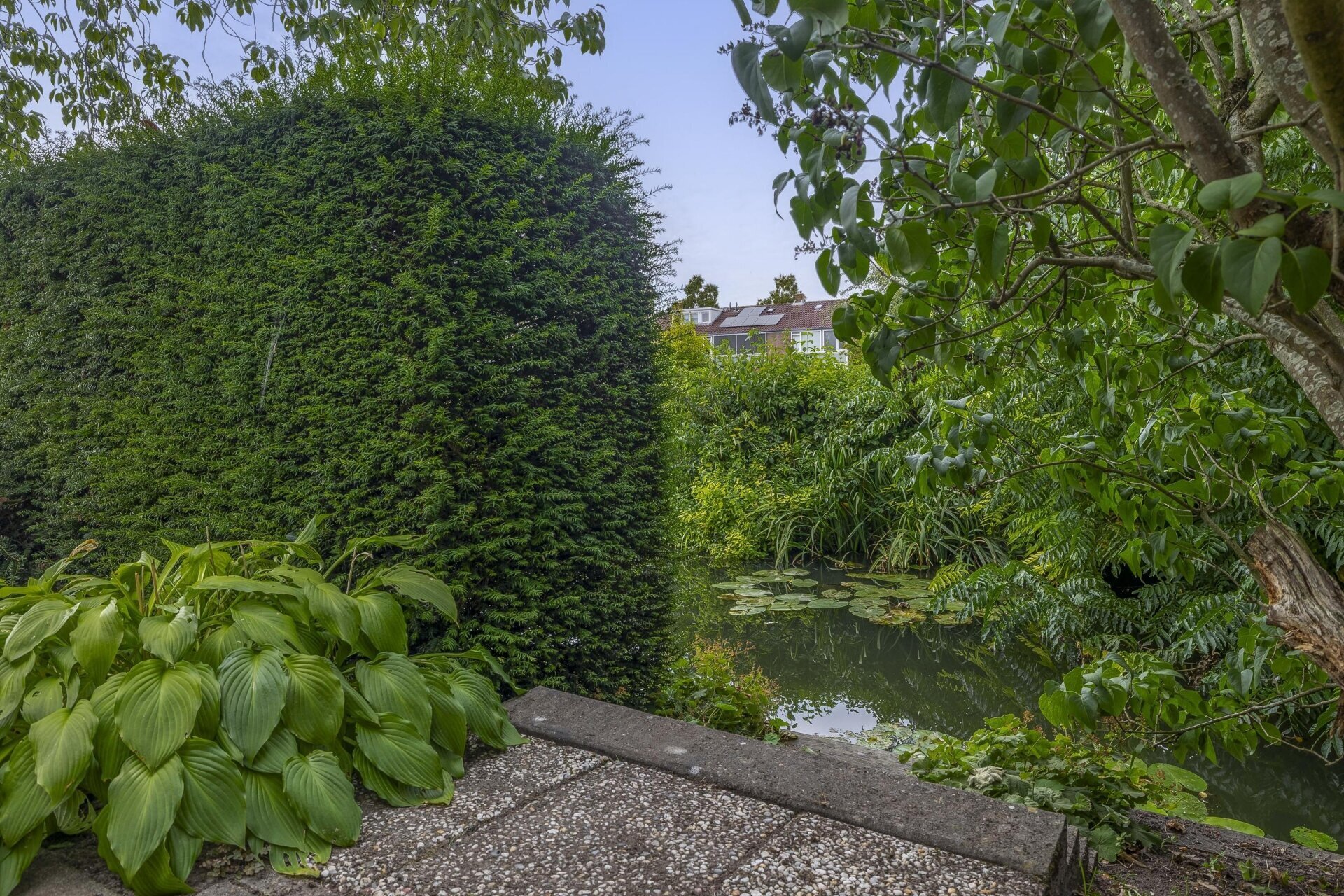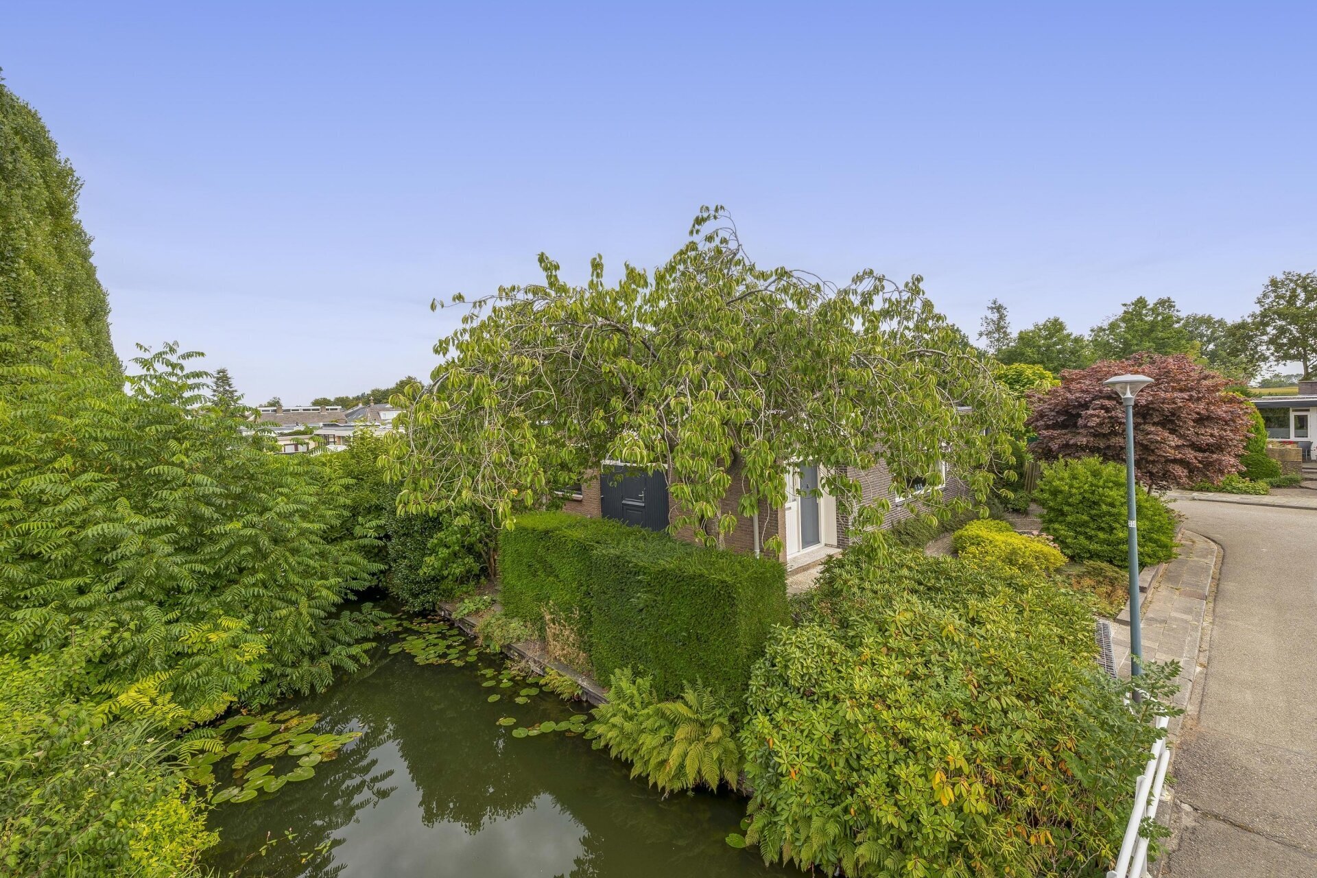 Aan de zijkant van het huis bevindt zich de aangebouwde garage, ideaal voor je auto, fietsen of als werkruimte. De tuin rondom is verzorgd, met verschillende groene borders, een terras aan het water, en veel privacy. De ligging aan een rustige weg zorgt voor weinig verkeer, terwijl je toch dichtbij voorzieningen zit. Doordat de tuin rondom loopt, is er altijd wel een plekje in de zon of juist in de schaduw te vinden – ideaal voor tuinliefhebbers.
