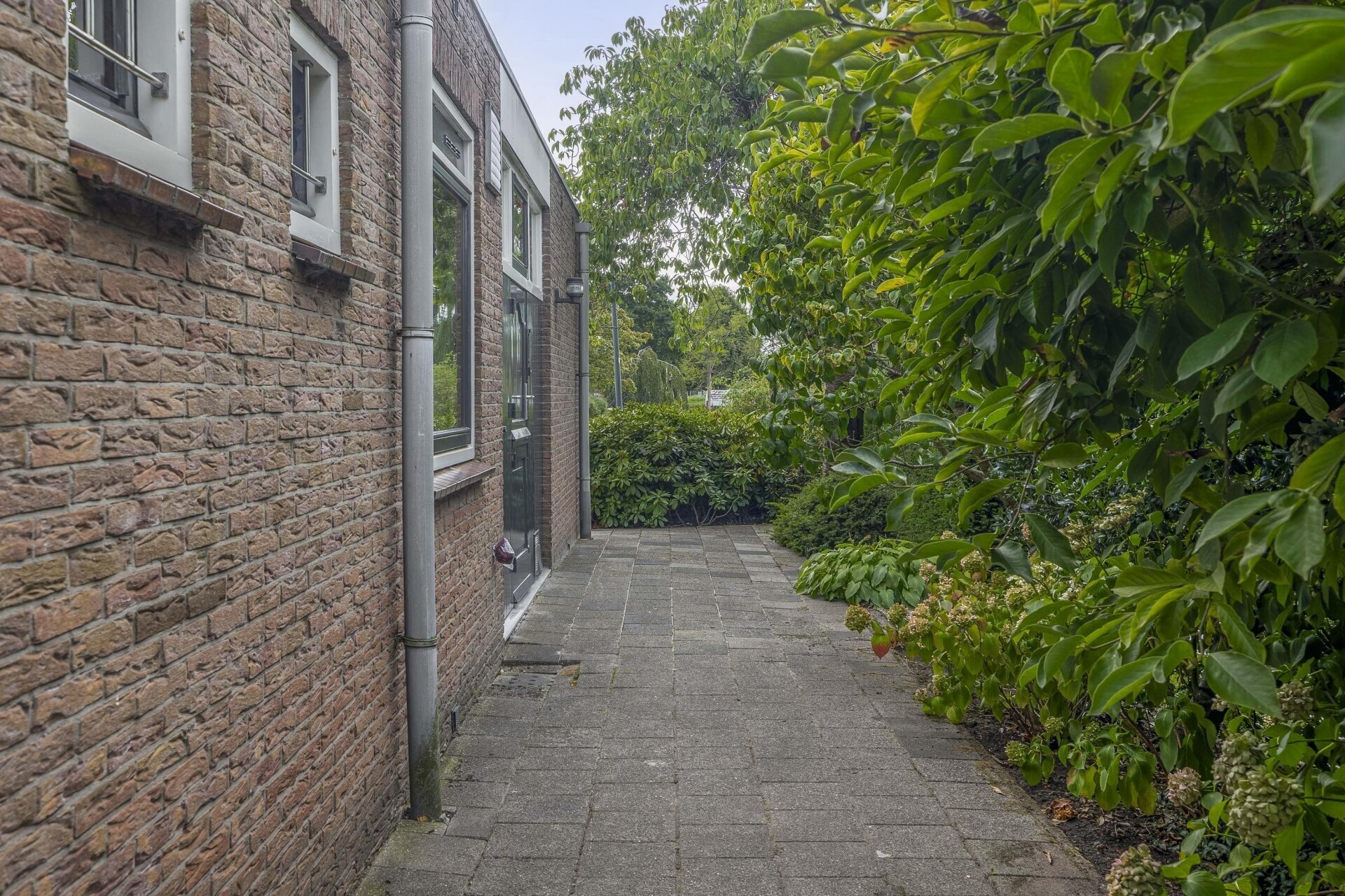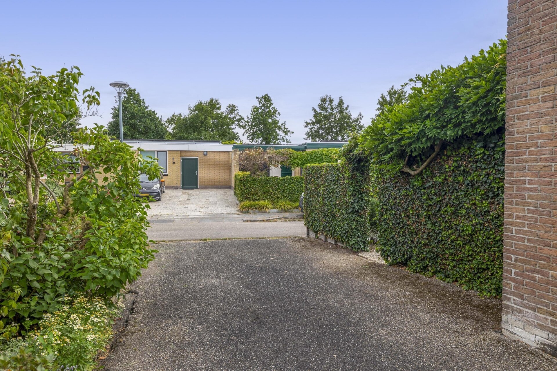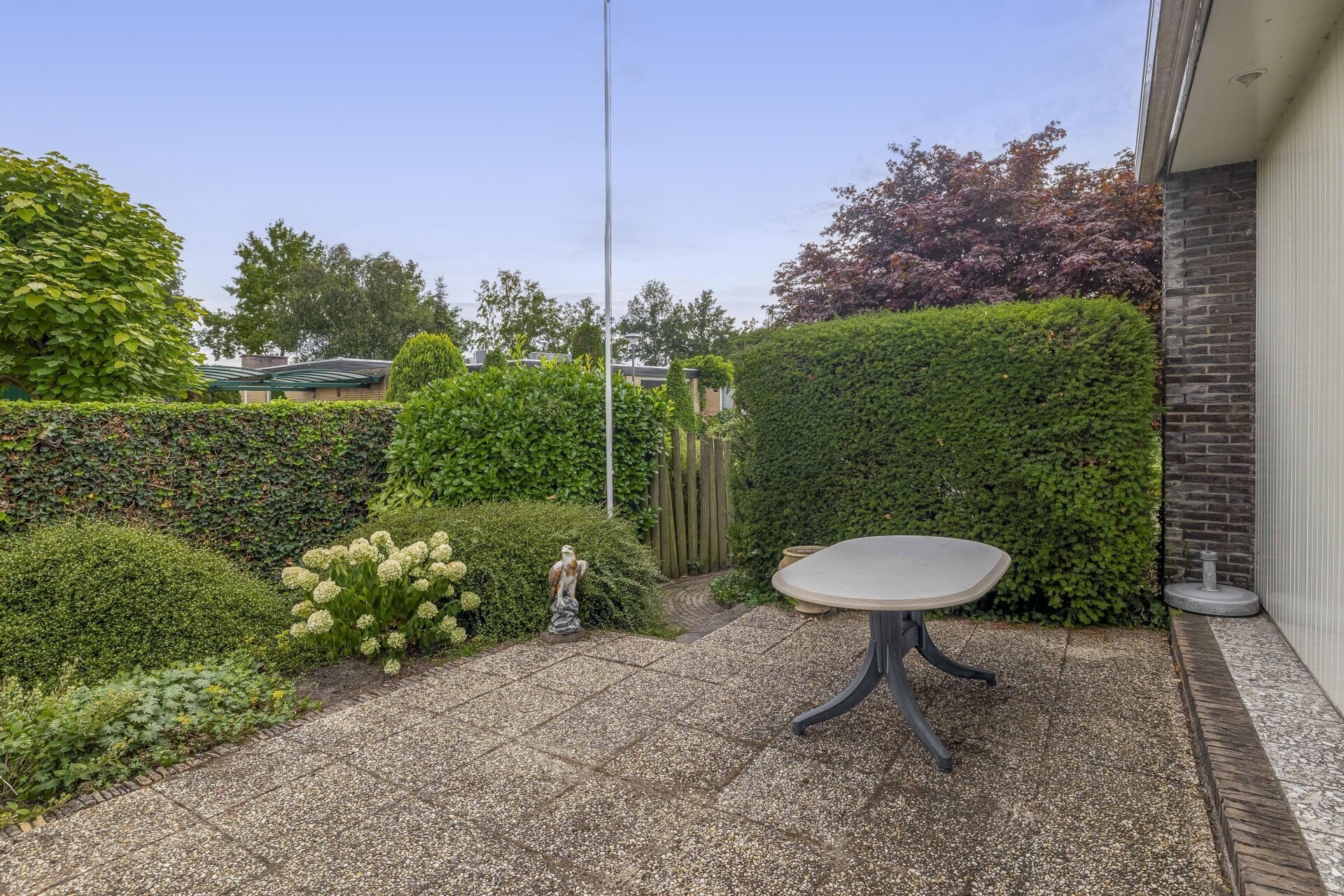 Aan de zijkant van het huis bevindt zich de aangebouwde garage, ideaal voor je auto, fietsen of als werkruimte. De tuin rondom is verzorgd, met verschillende groene borders, een terras aan het water, en veel privacy. De ligging aan een rustige weg zorgt voor weinig verkeer, terwijl je toch dichtbij voorzieningen zit. Doordat de tuin rondom loopt, is er altijd wel een plekje in de zon of juist in de schaduw te vinden – ideaal voor tuinliefhebbers.
