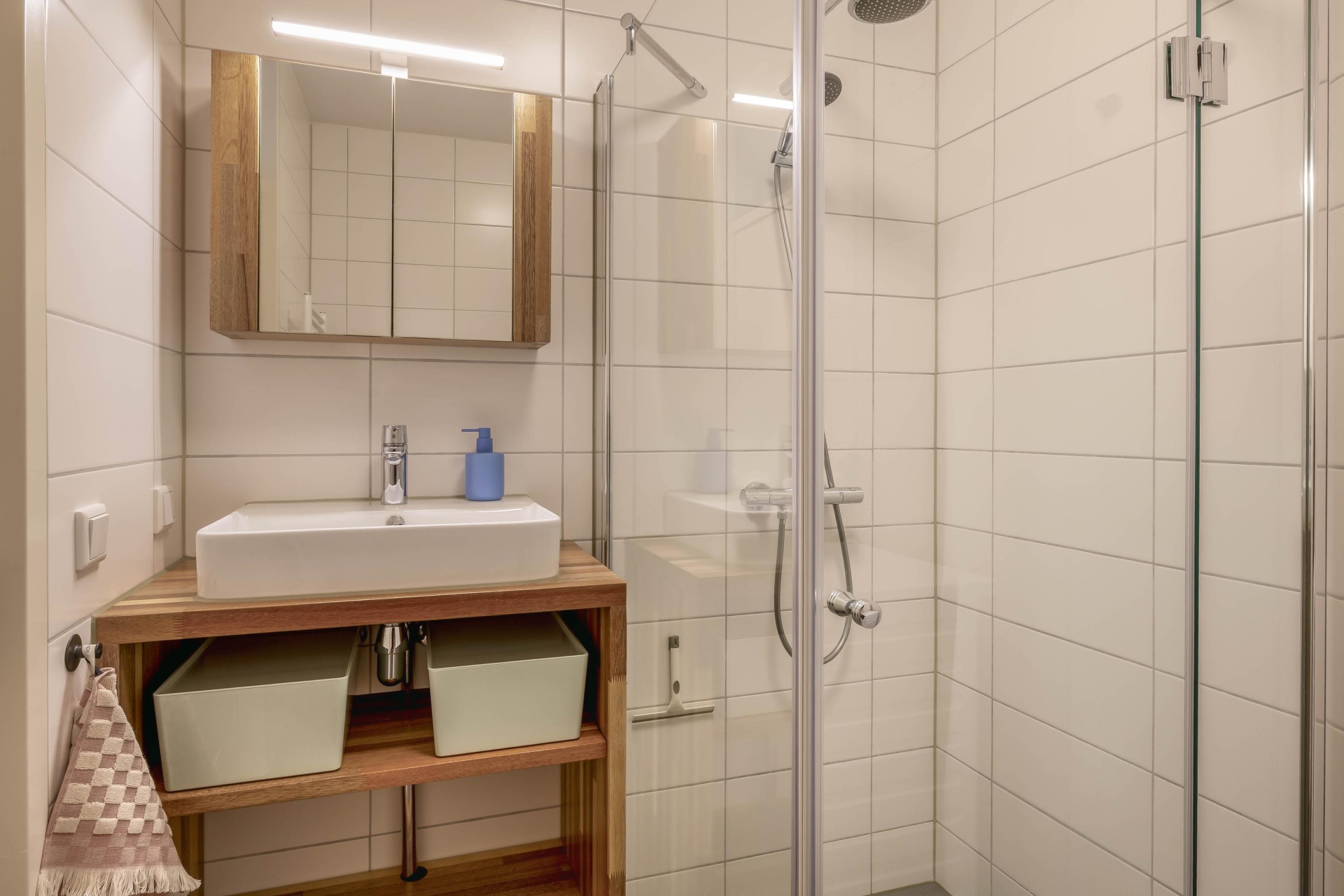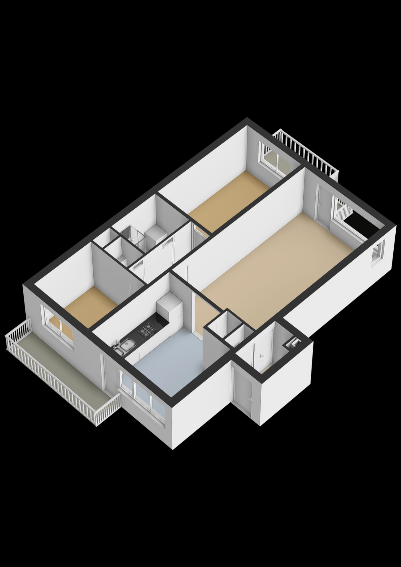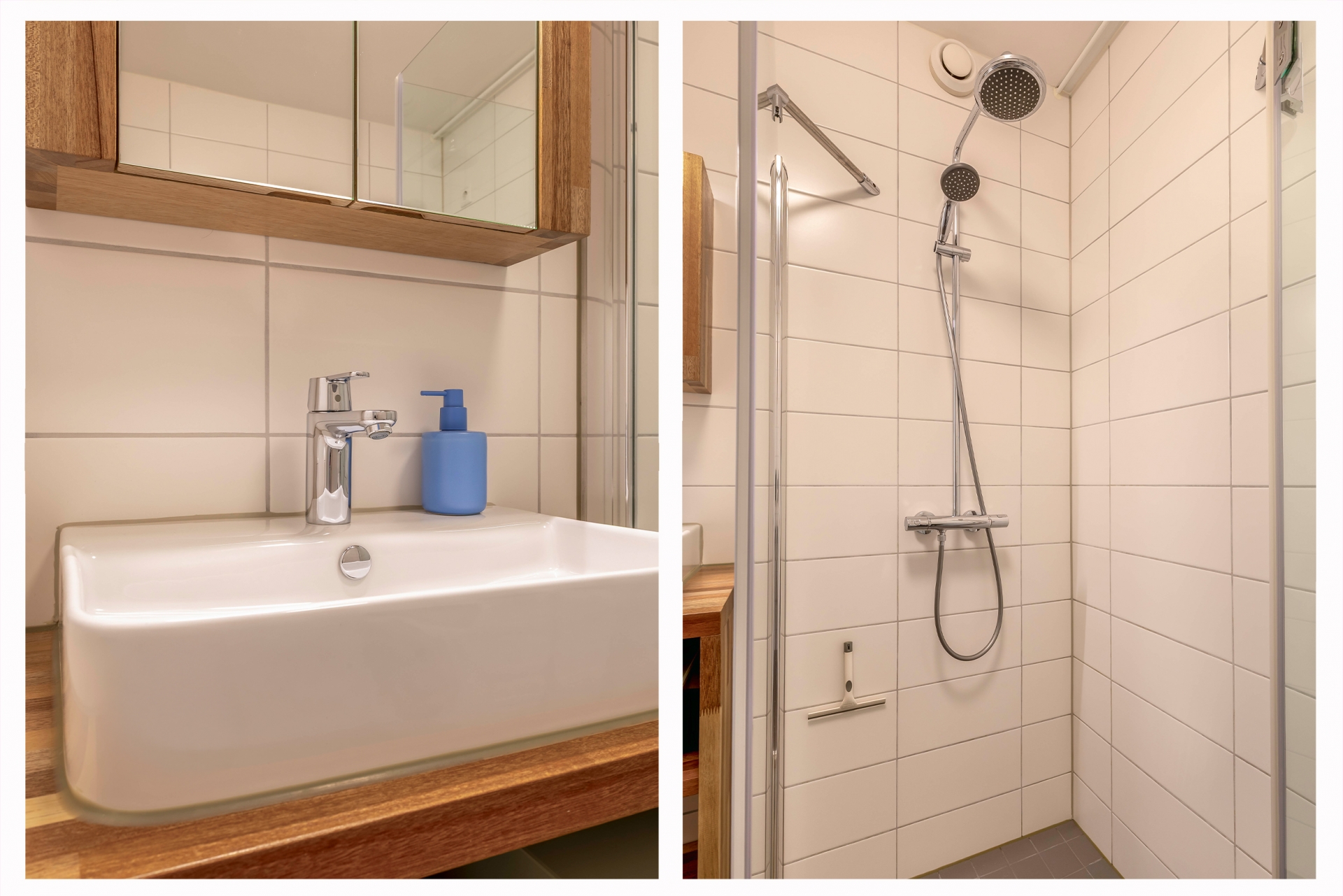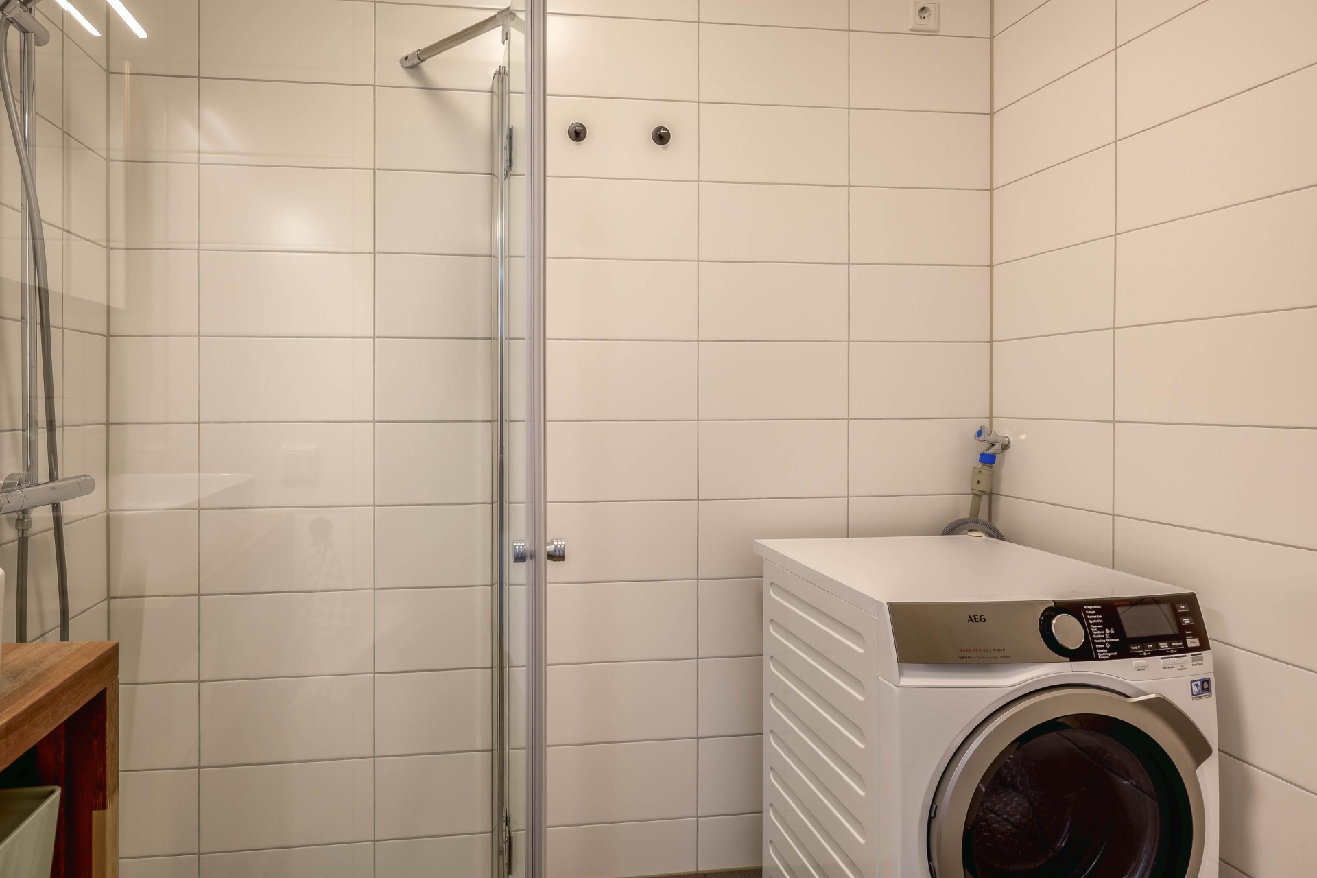 De grootste slaapkamer ligt aan de Maaszijde en biedt voldoende ruimte voor een tweepersoonsbed en een kast. De tweede kamer is veelzijdig te gebruiken als werkruimte, logeerkamer, kinderkamer of walk-in-closet. De badkamer is netjes afgewerkt en voorzien van een douche, wastafel en handdoekradiator. Daarnaast is er een separaat toilet aanwezig – een pluspunt voor een appartement van dit formaat. De vloer is afgewerkt met lamelparket en de wanden zijn licht gehouden, wat bijdraagt aan de frisse en instapklare uitstraling.