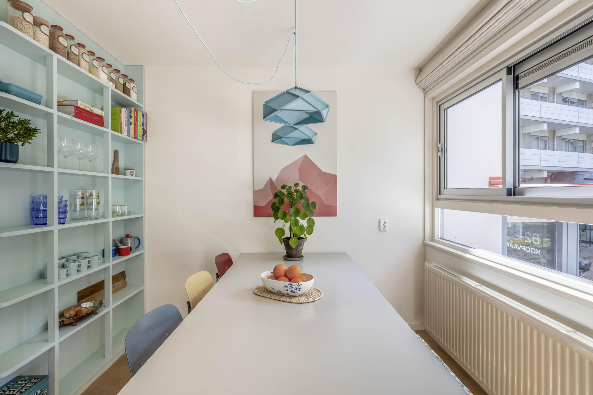 Aan de Koopvaardijhof 82 ligt dit verzorgde 3-kamerappartement op een rustige locatie, met alles wat je zoekt: licht, comfort, uitzicht en een gezonde VvE. Met twee slaapkamers, twee ruime balkons, een open keuken met inbouwapparatuur, een eigen berging en een weids uitzicht over de Maas is dit een plek waar je zó je meubels kunt neerzetten.