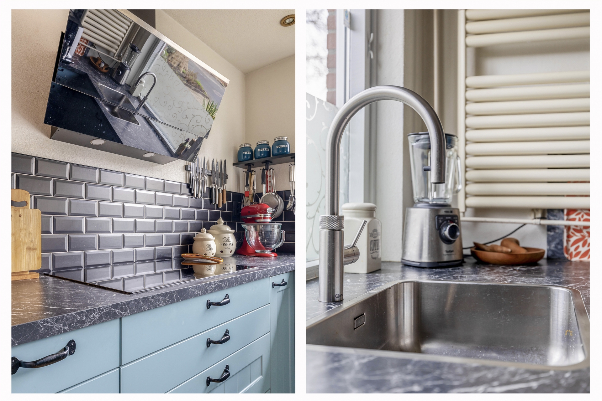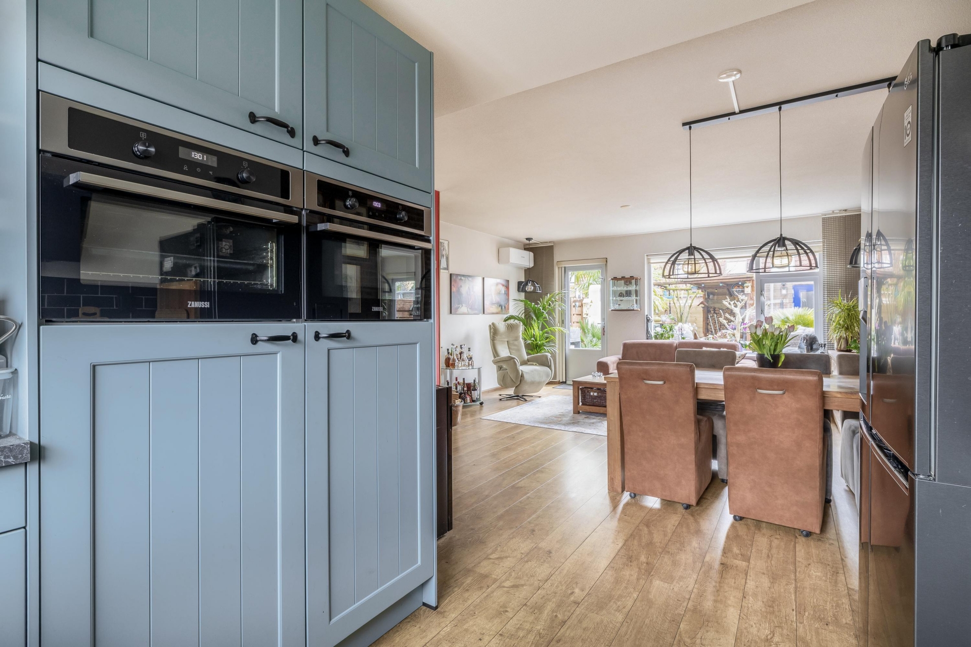 Bij binnenkomst voelt het meteen goed. De woonkamer heeft een fijne rechthoekige indeling en biedt ruimte voor een royale zithoek én een eettafel. De halfopen keuken is gesitueerd aan de voorzijde van het huis en kijkt uit op de straat. Ideaal om tijdens het koken toch een oogje in het zeil te houden.