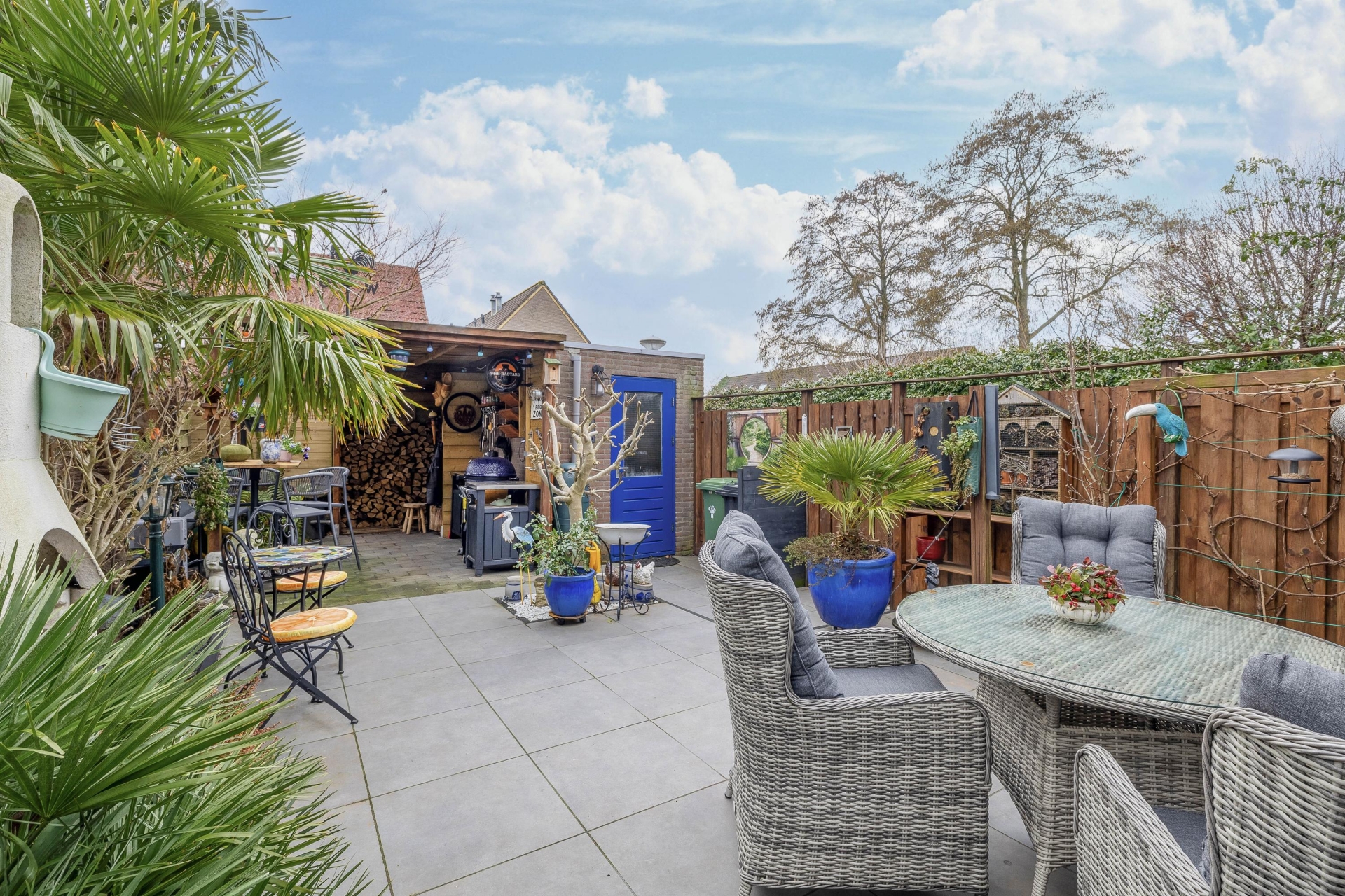 In de tuin is voldoende ruimte voor een loungeset en eventueel een berging voor fietsen of tuingereedschap. Via een zij entree is de tuin ook goed bereikbaar, handig voor het stallen van je fiets of het buitenzetten van de containers.