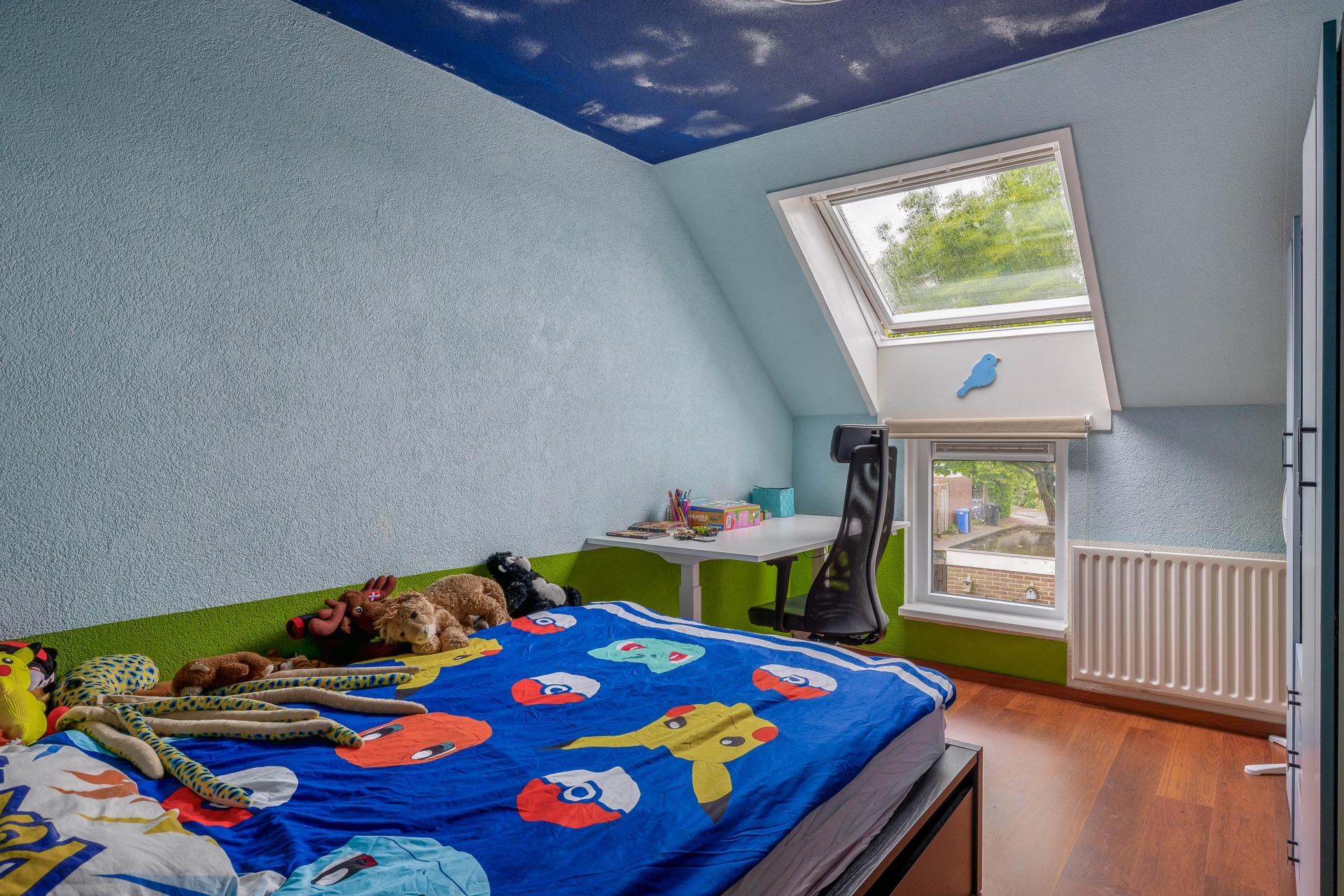Dit huis biedt volop ruimte voor een groeiend gezin of thuiswerkers. Op de eerste verdieping bevinden zich drie slaapkamers, waarvan één ideaal als master bedroom en twee geschikt als kinder-, logeer- of werkkamer. De ruime, vernieuwde badkamer, die aanvoelt als een privé-spa, is voorzien van een inloopdouche, ligbad, breed wastafelmeubel, strak tegelwerk en zelfs een ingebouwde tv; een heerlijke plek om tot rust te komen. De zolderverdieping is ideaal als vierde slaapkamer. De aanwezige dakkapel zorgt voor extra licht en ruimte.