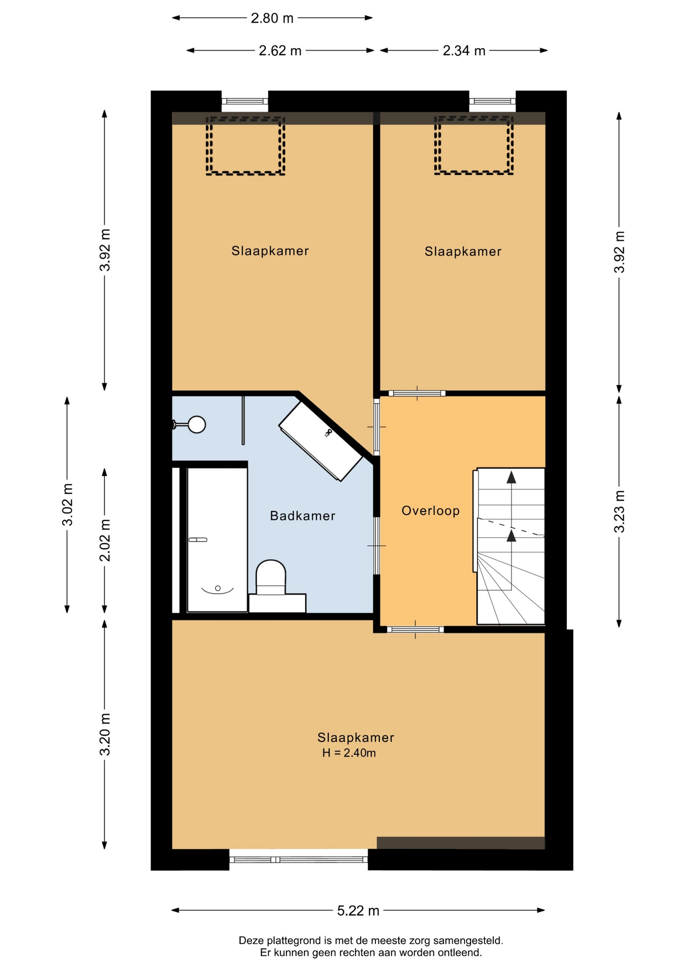 “Deze informatie is door ons met de nodige zorgvuldigheid samengesteld. Onzerzijds wordt echter geen enkele aansprakelijkheid aanvaard voor enige onvolledigheid, onjuistheid of anderszins, dan wel de gevolgen daarvan. Alle opgegeven maten en oppervlakten zijn indicatief.”