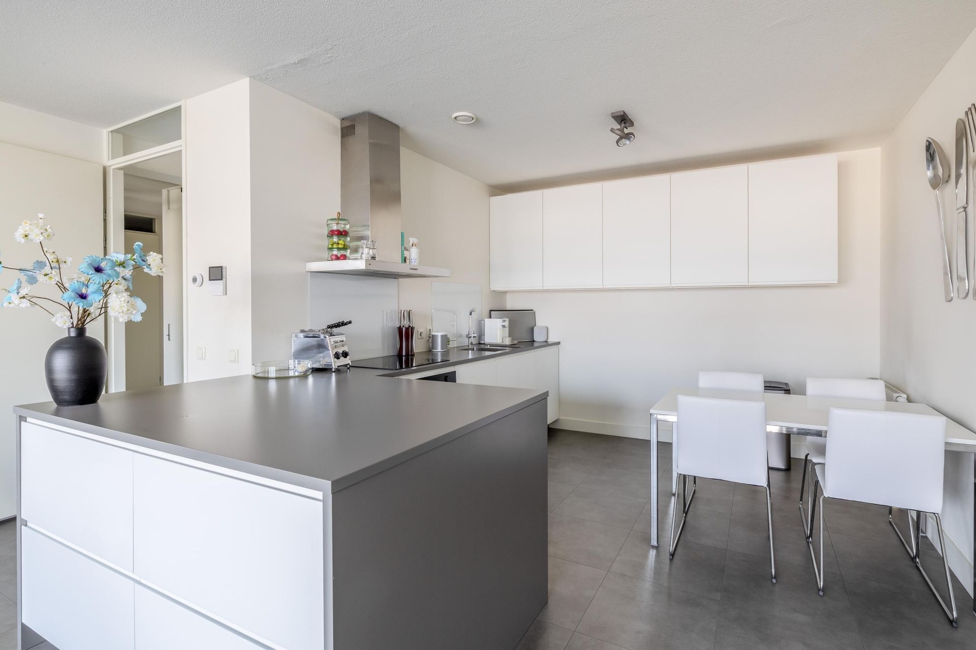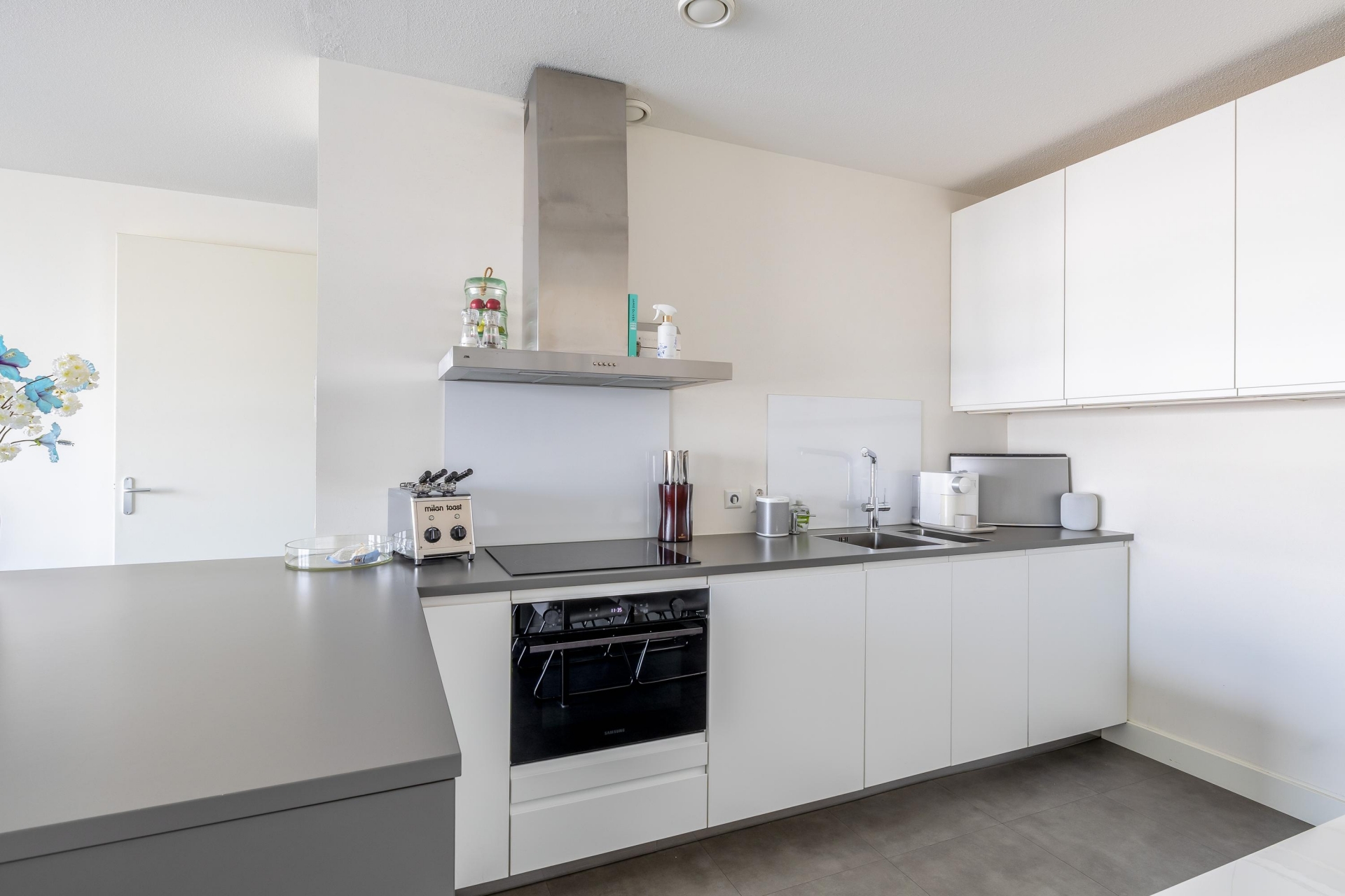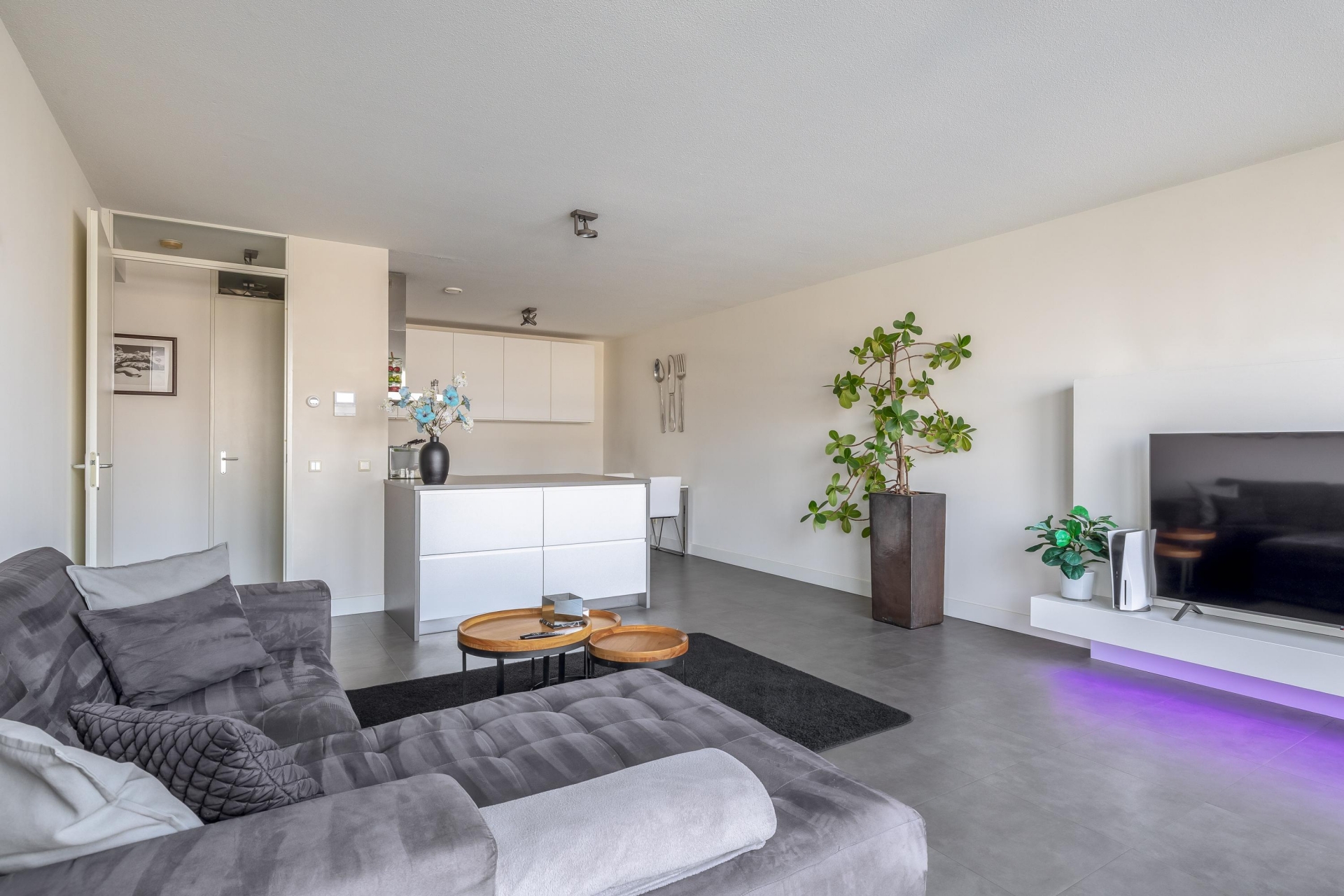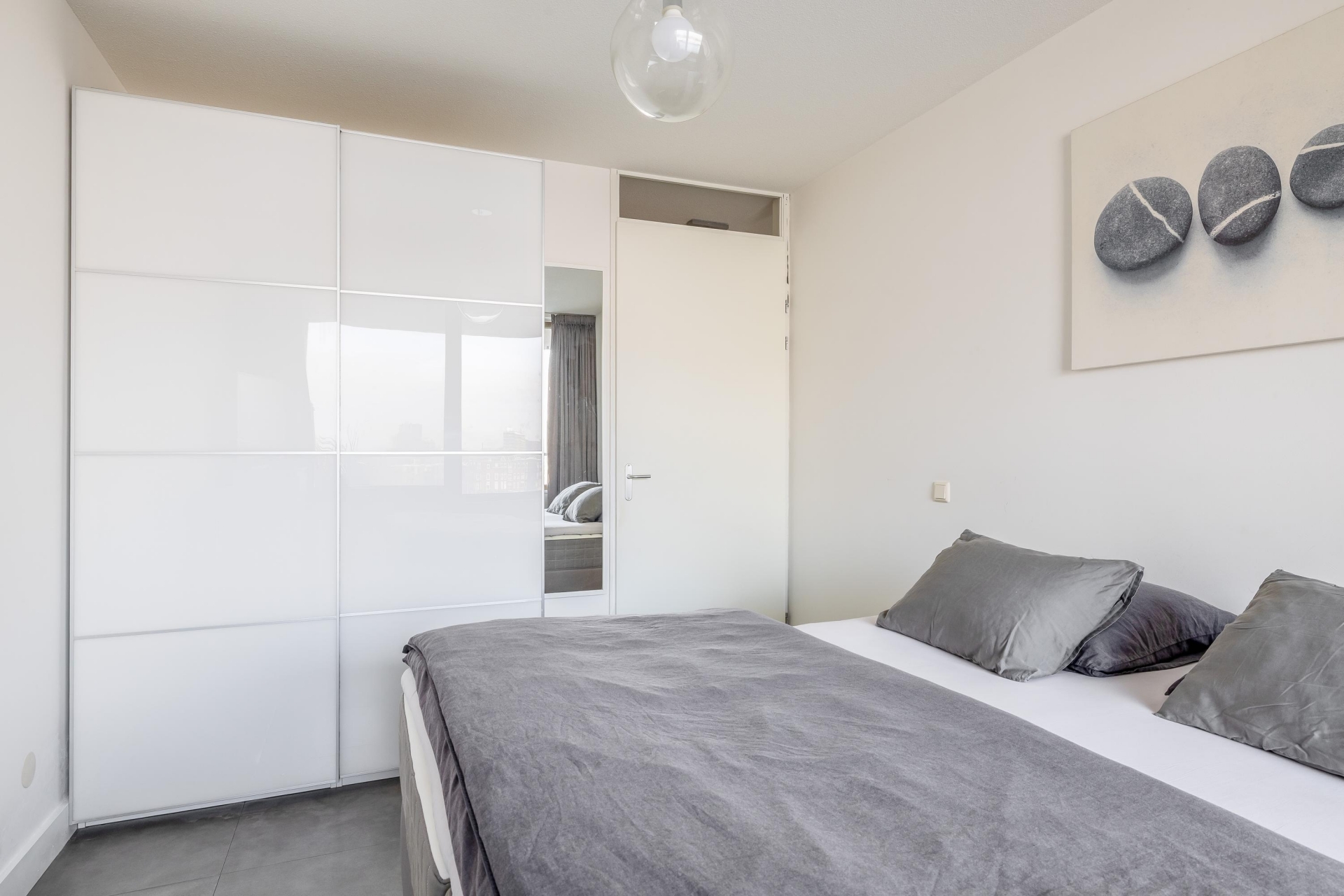 De woning is van top tot teen verzorgd. De ruime woonkamer is licht en sfeervol en biedt door de grote raampartijen een prachtig panoramisch uitzicht over het water. Hier kan je elke dag kunt genieten van de skyline, voorbijvarende schepen en een zeldzaam gevoel van ruimte. En dat midden in de stad.