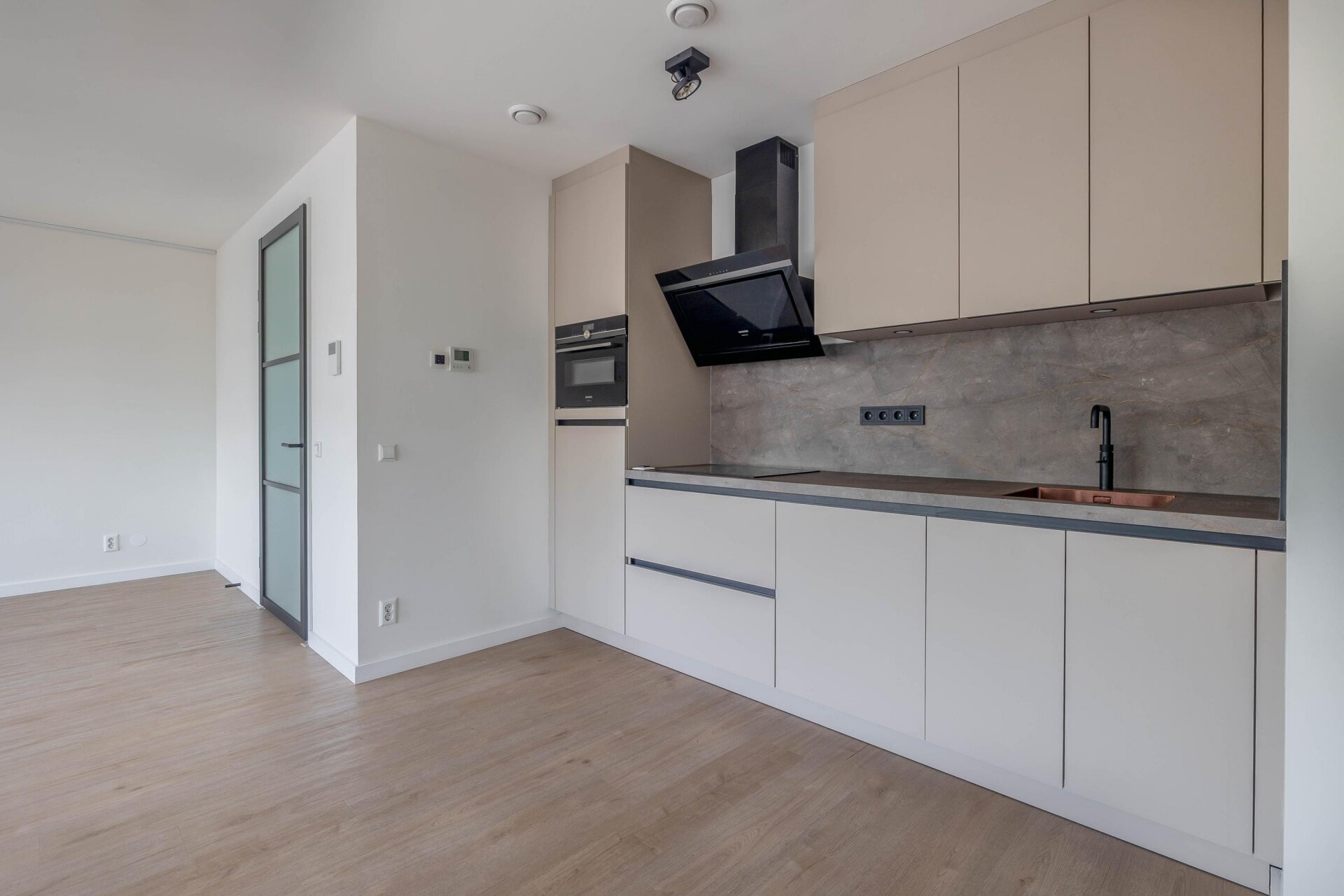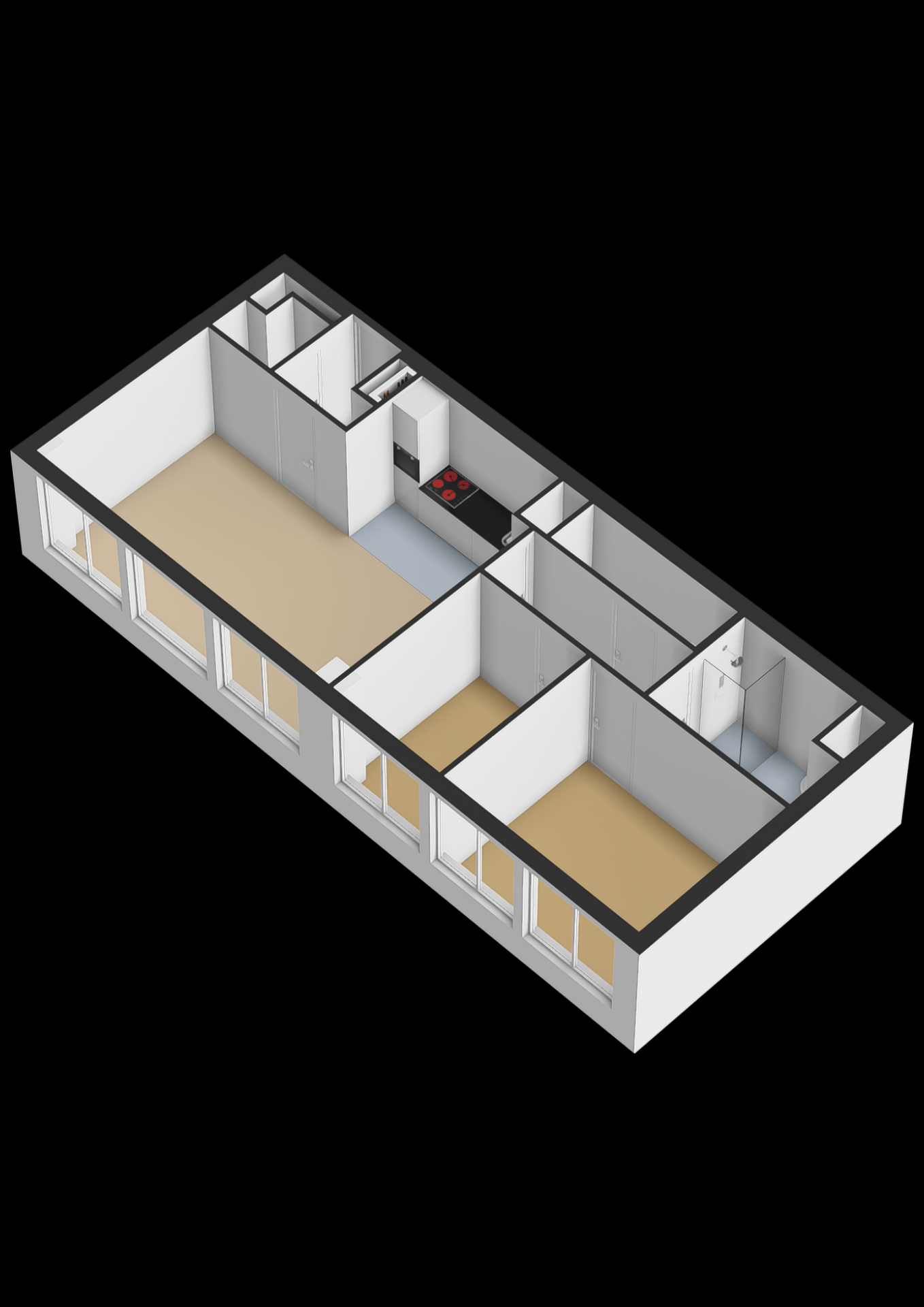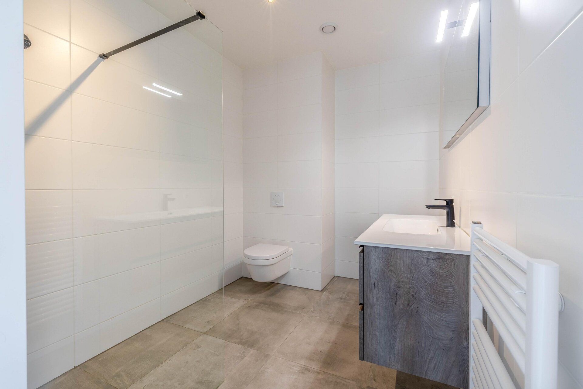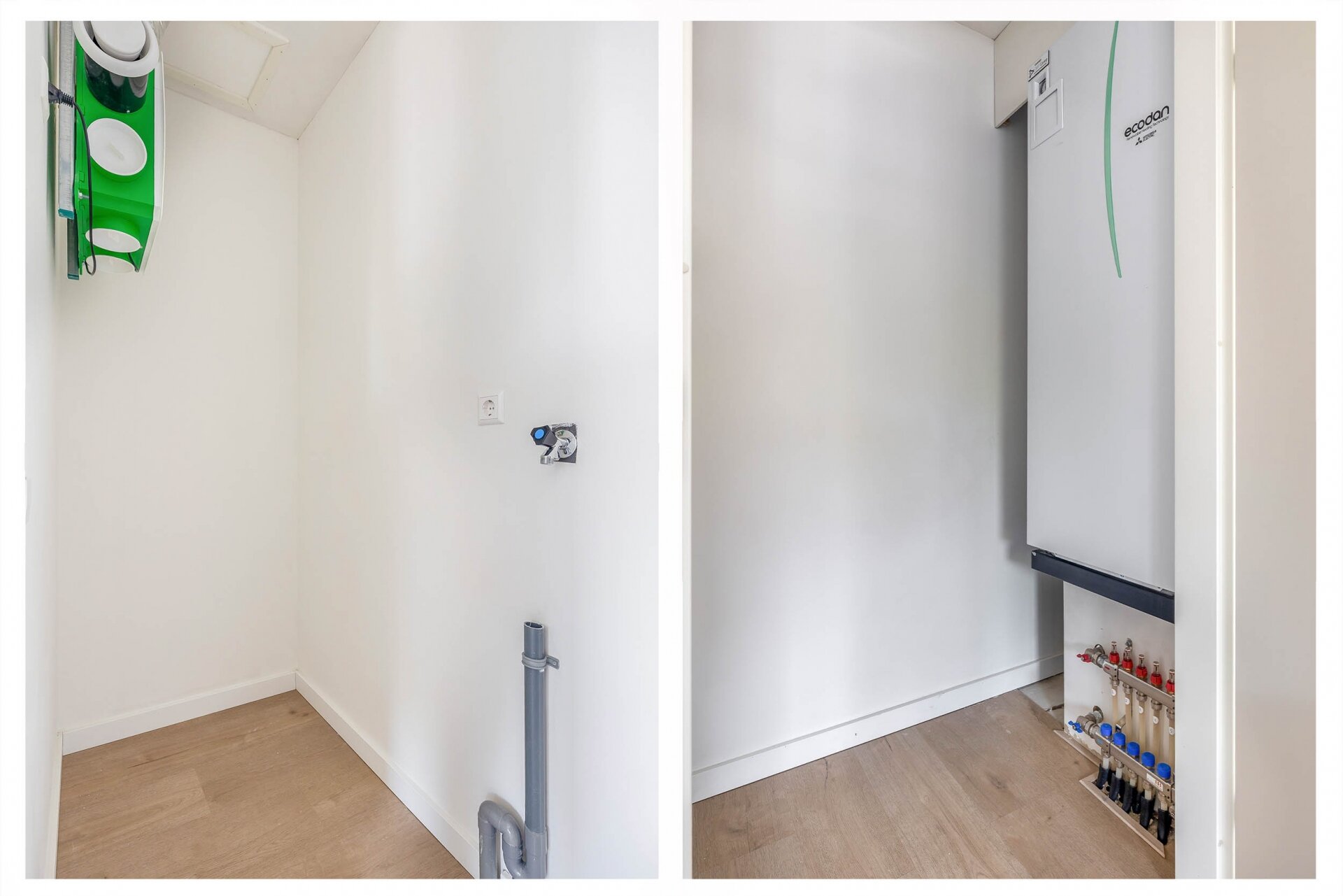 Vanuit de entree heeft u toegang tot alle vertrekken in het appartement. Direct aan uw rechterhand vindt u de toiletruimte welke is voorzien van een hangend closet en fonteintje. Vanuit hier loopt u door naar de bijzonder ruime woonkamer welke is voorzien vloerverwarming, een keurige pvc vloer en grote raampartijen met een heerlijke lichtinval. Tevens vindt u in deze heerlijke ruimte de moderne, open keuken welke is uitgevoerd met een beige kleurstelling en beschikt over diverse inbouwapparatuur te weten; Quooker kraan, vaatwasser, combi oven, RvS spoelbak, inductie kookplaat, afzuigschouw en koel/vries combinatie. Vanuit de woonkamer loop u door naar een tweede hal waar zich de toegang bevindt tot een handige berging met daarin de warmtepomp. Grenzend hieraan treft u de badkamer. Deze meer dan ruime badkamer is voorzien van een tweede toilet, douchecabine en wastafelmeubel. Tegenover deze badkamer treft u de een tweetal slaapkamers welke beschikken over keurige afmetingen en wederom grote rampartijen met veel lichtinval.