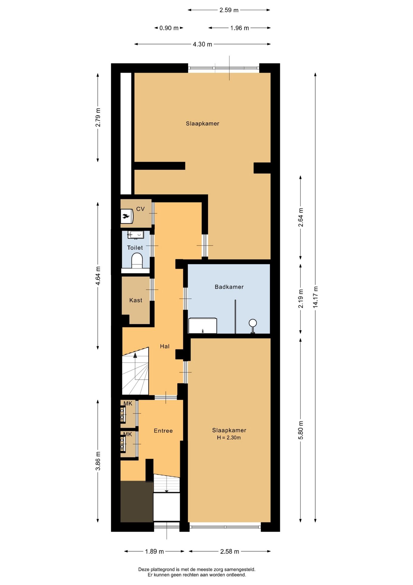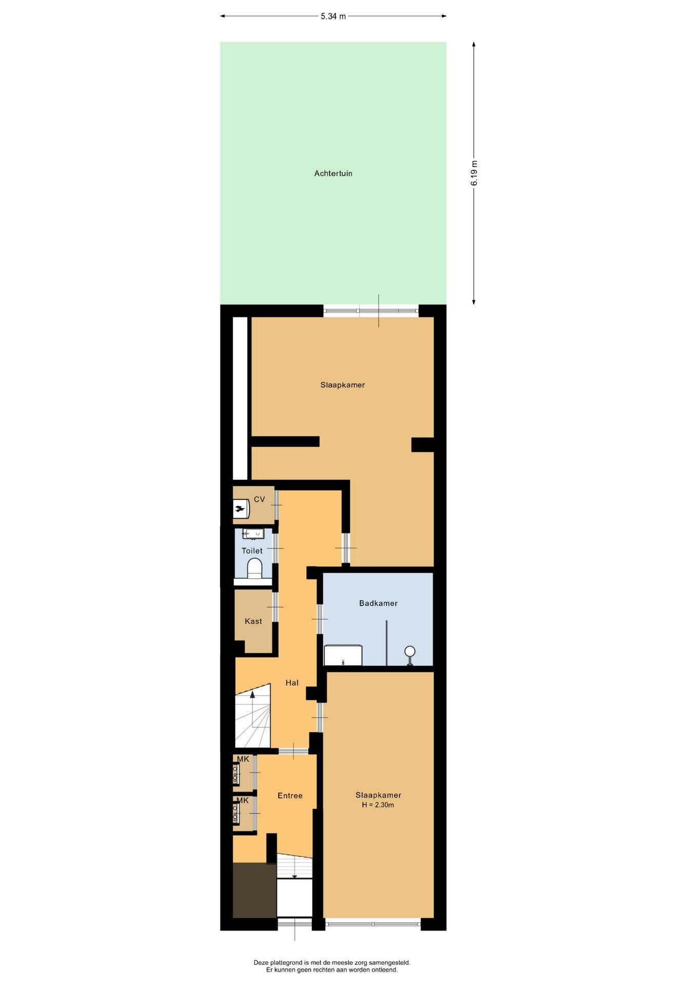 “Deze informatie is door ons met de nodige zorgvuldigheid samengesteld. Onzerzijds wordt echter geen enkele aansprakelijkheid aanvaard voor enige onvolledigheid, onjuistheid of anderszins, dan wel de gevolgen daarvan. Alle opgegeven maten en oppervlakten zijn indicatief.”