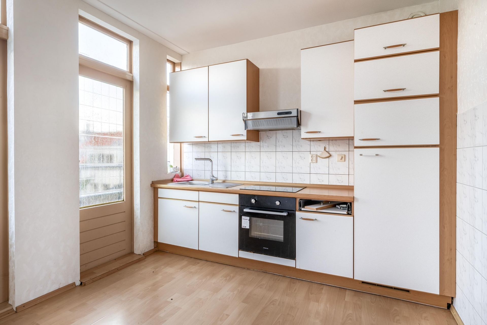 De aparte keuken is praktisch ingedeeld, met veel bergruimte en alles wat je nodig hebt binnen handbereik, waaronder een inductiekookplaat. Vanuit de keuken loop je zo het royale balkon op, een fijne plek om te genieten van de middag- of avondzon en rustig even buiten te zitten. Zo vormt de keuken een praktische en aangename ruimte, met een mooie verbinding naar het buitenleven.