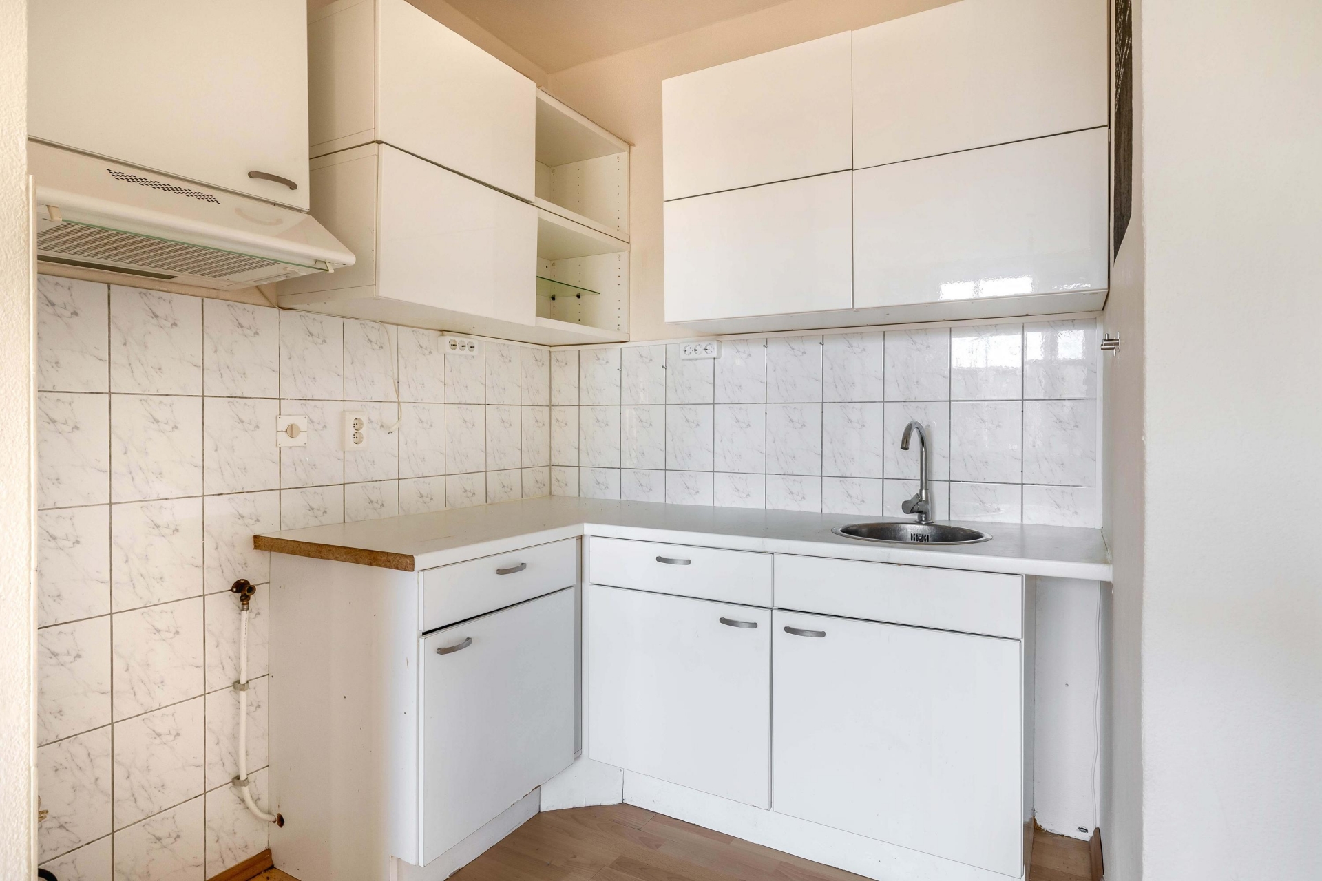 Zodra je binnenkomt, valt de frisse, lichte woonkamer op. De laminaatvloer geeft het geheel een verzorgde uitstraling en zorgt voor een prettige basis in elke woonstijl. De halfopen keuken sluit er soepel op aan: open genoeg voor gezelligheid, maar net beschut genoeg om het kookdeel een eigen hoek te geven. Hier kook je ontspannen, met ruimte voor een bakkie of een borrel terwijl je staat te roeren in de pan.