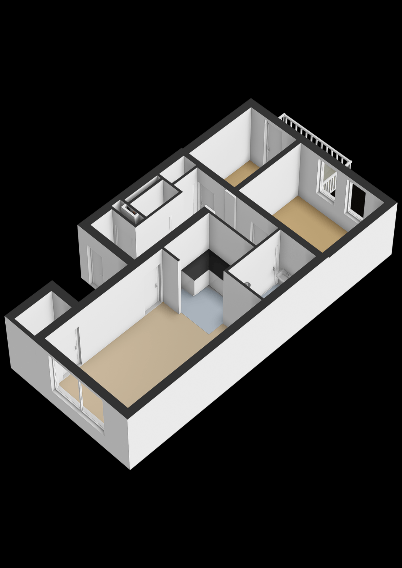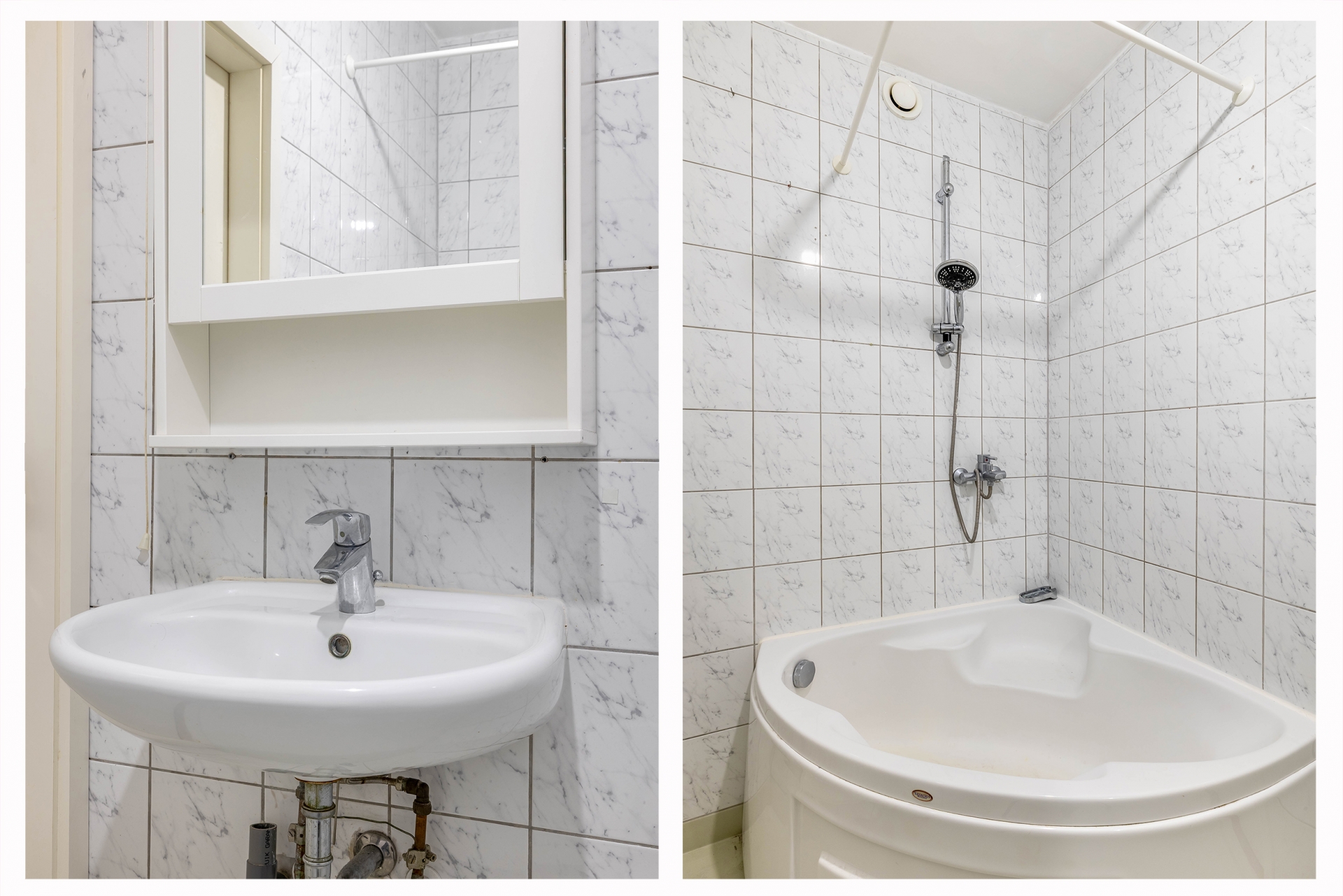 De badkamer is praktisch ingericht met een ligbad voor wie graag ontspant, een wastafel en een kastje erboven voor al je dagelijkse spullen. Hier begin of sluit je je dag rustig en zonder gedoe. Daarnaast is er een prettig apart toilet bij de entree, hygiënisch en slim geplaatst. Aan de achterzijde van het huis vind je het balkon op het noordwesten, jouw plek om ’s avonds van de zon te genieten, een kop koffie te drinken of gewoon even de frisse lucht op te snuiven.